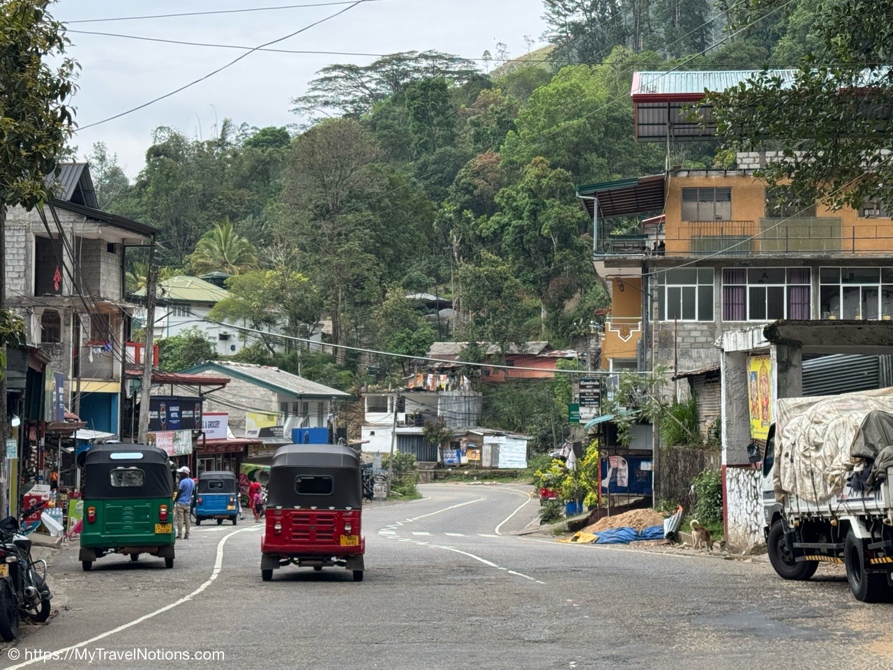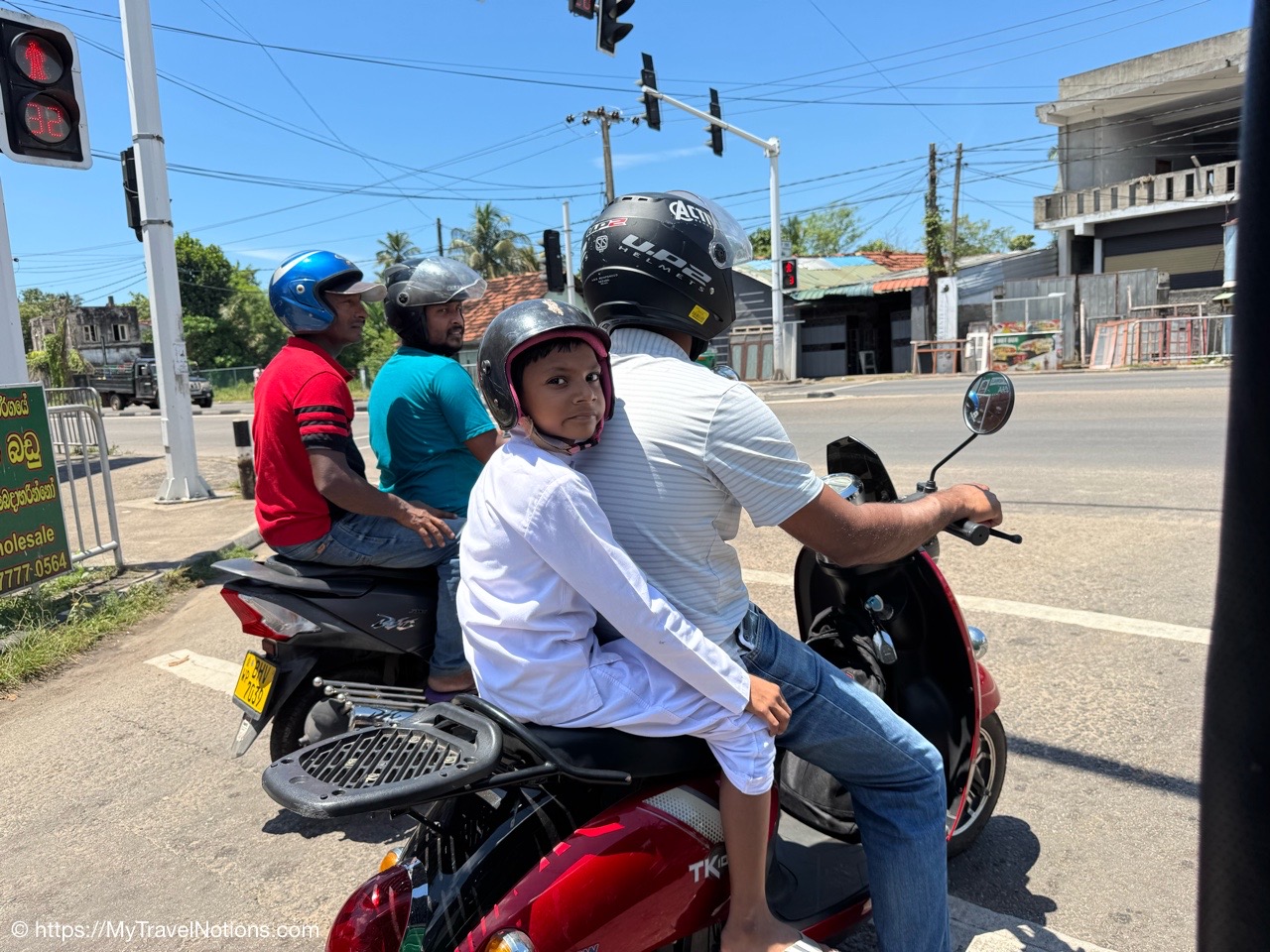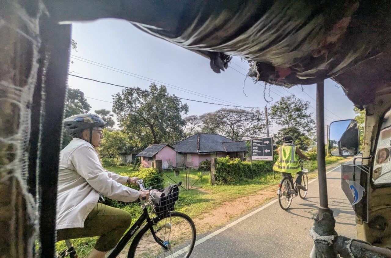 Tuk Tuks, mortorcyles, bicycles, people walking and a few cars are the modes of transportation Sri Lankans use. And as a former British colony, they drive on the left side of the road.