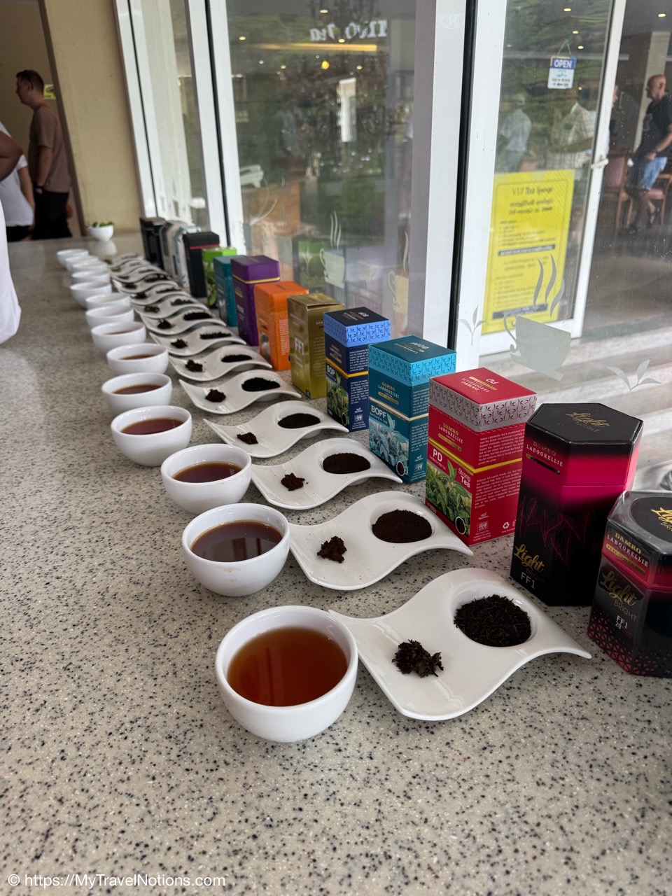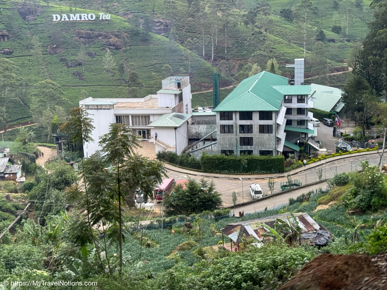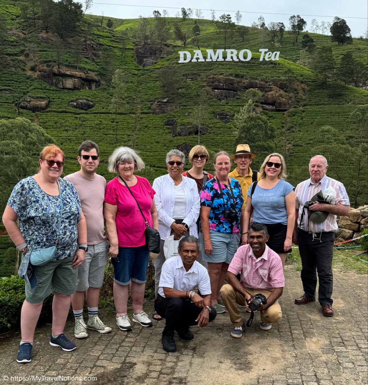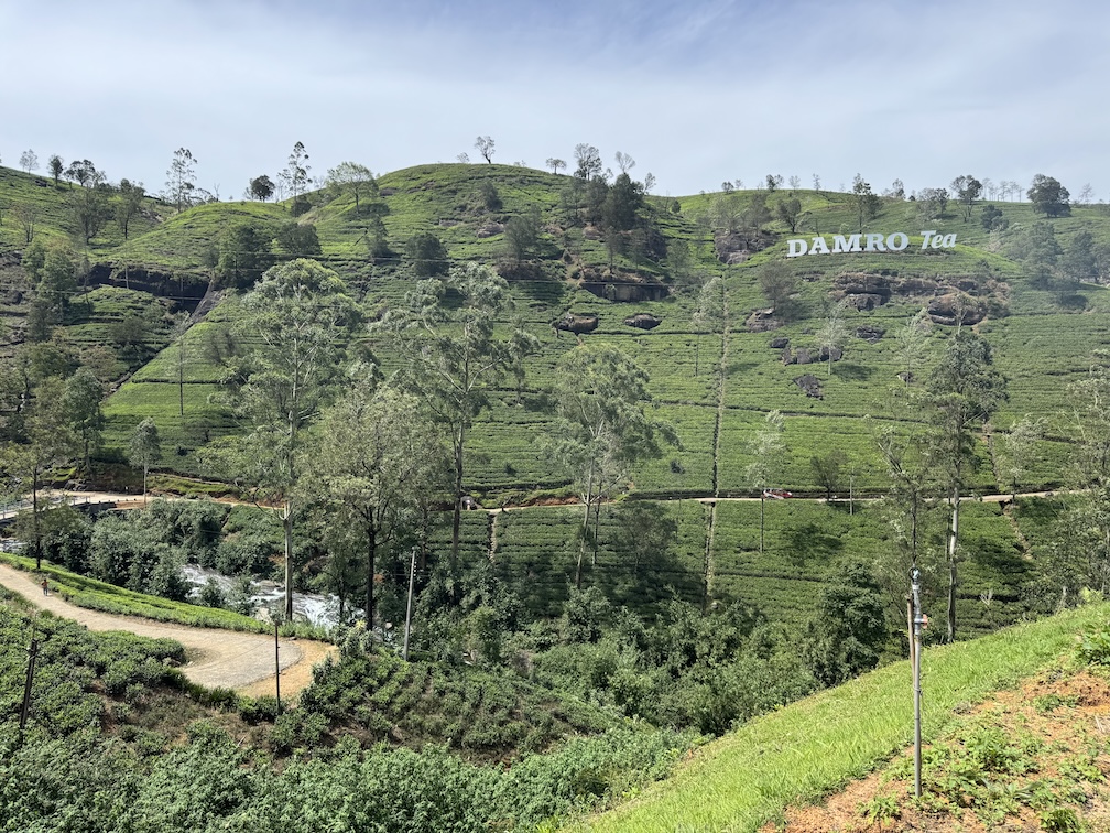 Me doing my best to bring that pinkie up as I’m drinking the delicious black tea at the Damro Labookellie Tea Lounge in Nuwara Eliya the hill country area of Sri Lanka where the tea plantations and industry is most prevalent. We also stopped here to tour their tea factory to see how the tea leaves are processed, after being picked in the fields, and taste the three different teas of black, green and white. I don’t buy much but I loved this and bought some loose tea to bring home. (March 4, 2025)On our 16-passenger van making our way out of the busy Tuesday morning traffic in Kandy to the tea harvesting area of the Central Province in Sri Lanka. There are 10 of us on the tour, plus our tour leader, driver and driver’s assistance. (March 4, 2025)Leaving Kandy for the day as we head to the high tea and hill country area of Nuwara Eliya. It is considered the highest tea-growing region in the country and produces a high-quality tea known for its floral aroma and refreshing taste, often referred to as the “Champagne of Ceylon Tea”. Under British rule from 1796 until 1948, Sri Lanka was known as British Ceylon. (March 4, 2025)The murals along the roadway as we are leaving Kandy for the day to travel to the high tea region of Nuwara Eliya. (March 4, 2025)The murals along the roadway as we are leaving Kandy for the day to travel to the high tea region of Nuwara Eliya. (March 4, 2025)Tea trees grown along the Kandy-Nuwara Eliya Road on terraces in the Nuwara Eliya region of Sri Lanka primarily because of the steep mountainous terrain, which necessitates creating flat, leveled areas to efficiently cultivate tea plants while managing water flow and preventing soil erosion on the hillsides. This method allows for optimal growing conditions for the tea plants in the region’s cool, misty climate. (March 4, 2025)Tea trees grown along the Kandy-Nuwara Eliya Road on terraces in the Nuwara Eliya region of Sri Lanka primarily because of the steep mountainous terrain, which necessitates creating flat, leveled areas to efficiently cultivate tea plants while managing water flow and preventing soil erosion on the hillsides. This method allows for optimal growing conditions for the tea plants in the region’s cool, misty climate. (March 4, 2025)Women working picking, just two tea leaves and a bud from each tree branch, along the Kandy-Nuwara Eliya Road and tossing them into bags slung on their backs. Sri Lanka is one of only a few countries where tea is still plucked by hand, from bushes planted along the contours of the slopes. The British introduced tea to the island in the late 19th century, which was vital to the economy. Some of the finest tea in the world is produced in this high tea area of Nuwara Eliya. (March 4, 2025)Women working picking, just two tea leaves and a bud from each tree branch, along the Kandy-Nuwara Eliya Road in Sri Lanka and tossing them into bags slung on their backs. (March 4, 2025)Women working picking, just two tea leaves and a bud from each tree branch, along the Kandy-Nuwara Eliya Road in Sri Lanka and tossing them into bags slung on their backs. (March 4, 2025)Women working picking, just two tea leaves and a bud from each tree branch, along the Kandy-Nuwara Eliya Road in Sri Lanka and tossing them into bags slung on their backs. (March 4, 2025)Views of the beautiful landscape along the Kandy-Nuwara Eliya Road in the tea plantation area of Nuwara Eliya in Sri Lanka. (March 4, 2025)Views of the beautiful landscape along the Kandy-Nuwara Eliya Road in the tea plantation area of Nuwara Eliya in Sri Lanka. (March 4, 2025)Views of the beautiful landscape along the Kandy-Nuwara Eliya Road in the tea plantation area of Nuwara Eliya in Sri Lanka. (March 4, 2025)Views of the beautiful landscape along the Kandy-Nuwara Eliya Road in the tea plantation area of Nuwara Eliya in Sri Lanka. (March 4, 2025)Driving up the hillside country of Sri Lanka along the along the Kandy-Nuwara Eliya Road. (March 4, 2025)The Damro Labookellie Tea Center and Tea Garden in Nuwara Eliya, a tea factory we visited to see how the tea leaves, after being picked, are produced into a delicious tea drink. (March 4, 2025)The Damro Labookellie Tea Center and Tea Garden in Nuwara Eliya, a tea factory we visited to see how the tea leaves, after being picked, are produced into a delicious tea drink. (March 4, 2025)The Damro Labookellie Tea Center and Tea Garden in Nuwara Eliya, a tea factory we visited to see how the tea leaves, after being picked, are produced into a delicious tea drink. (March 4, 2025)The beautiful terraced area surrounding the Damro Labookellie Tea Center and Tea Garden in Nuwara Eliya, a tea factory we visited to see how the tea leaves, after being picked, are produced into a delicious tea drink. (March 4, 2025)The beautiful terraced area surrounding the Damro Labookellie Tea Center and Tea Garden in Nuwara Eliya, a tea factory we visited to see how the tea leaves, after being picked, are produced into a delicious tea drink. (March 4, 2025)The beautiful terraced area surrounding the Damro Labookellie Tea Center and Tea Garden in Nuwara Eliya, a tea factory we visited to see how the tea leaves, after being picked, are produced into a delicious tea drink. (March 4, 2025)The beautiful terraced area surrounding the Damro Labookellie Tea Center and Tea Garden in Nuwara Eliya, a tea factory we visited to see how the tea leaves, after being picked, are produced into a delicious tea drink. (March 4, 2025)The tea production factory at the Damro Labookellie Tea Center and Tea Garden in Nuwara Eliya began with steaming the tea leaves dry by this machine. This is just for black tea. (March 4, 2025)Walking through the tea production process at the tea-making factory of Damro Labookellie Tea Center and Tea Garden in Nuwara Eliya beginning with spreading out the leaves on these troughs, steaming the leaves and tossing them. (March 4, 2025)Walking through the tea production process at the tea-making factor