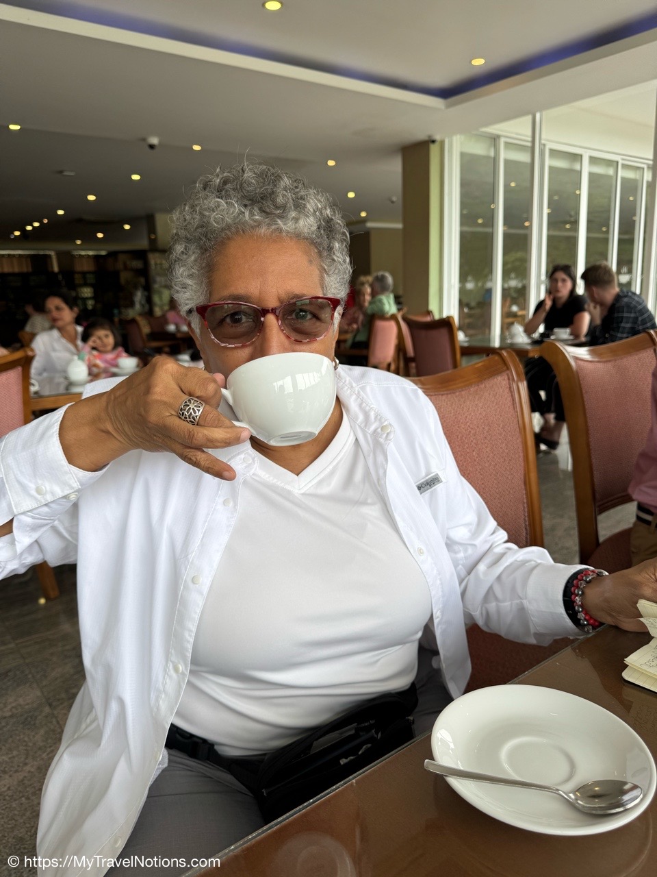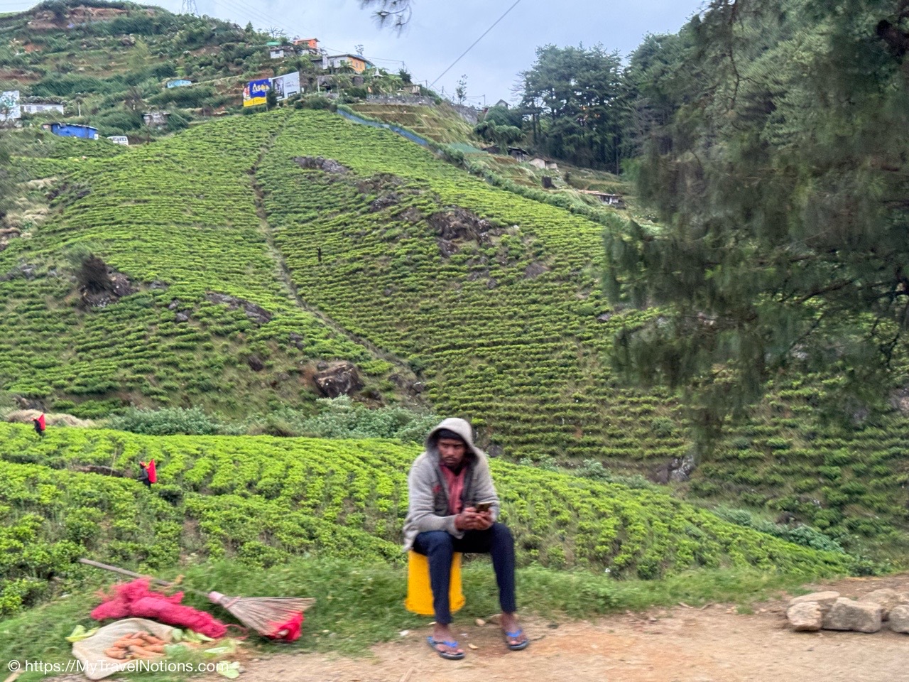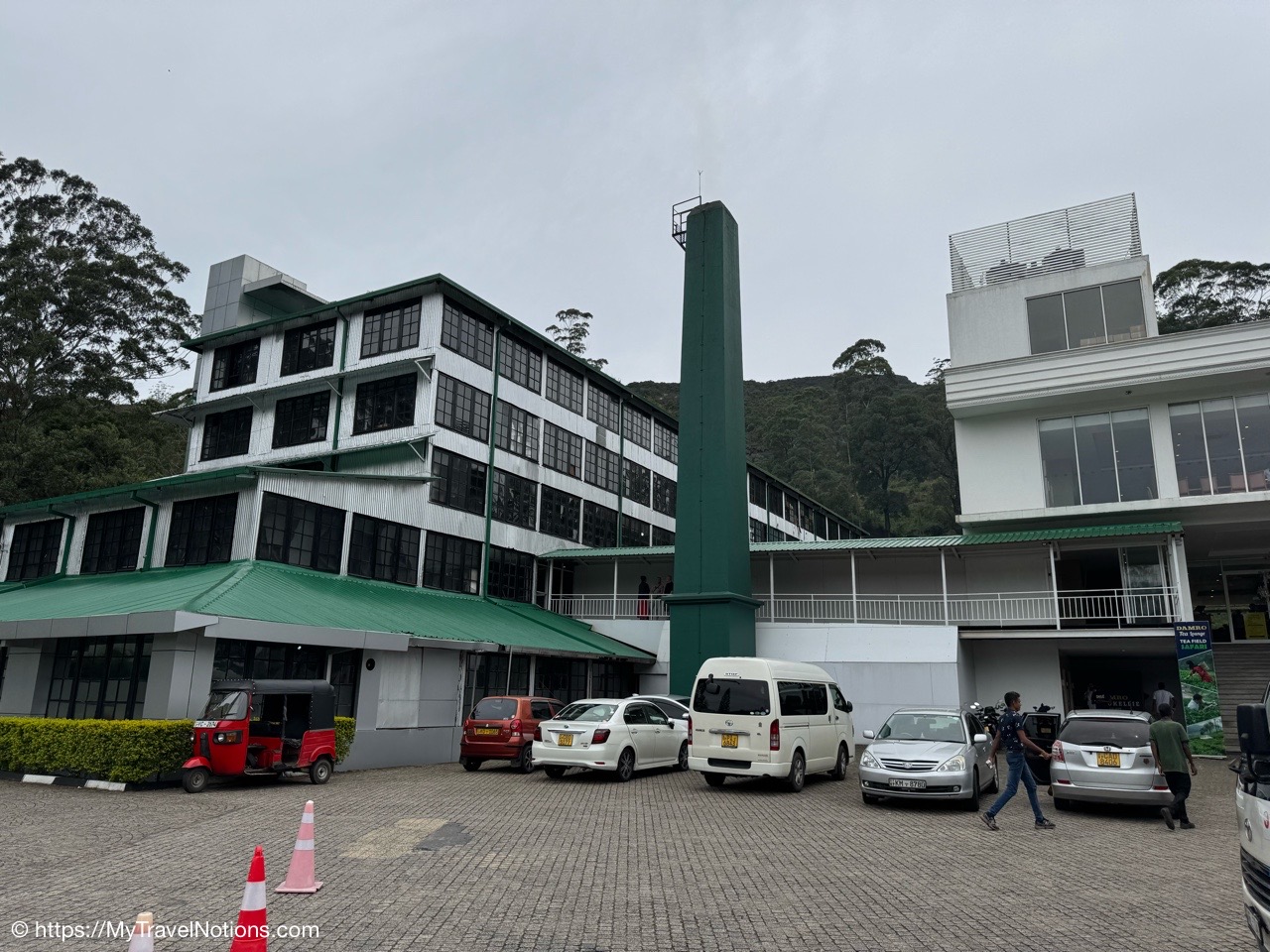 Me doing my best to bring that pinkie up as I’m drinking the delicious black tea at the Damro Labookellie Tea Lounge in Nuwara Eliya the hill country area of Sri Lanka where the tea plantations and industry is most prevalent. We also stopped here to tour their tea factory to see how the tea leaves are processed, after being picked in the fields, and taste the three different teas of black, green and white. I don’t buy much but I loved this and bought some loose tea to bring home. (March 4, 2025)On our 16-passenger van making our way out of the busy Tuesday morning traffic in Kandy to the tea harvesting area of the Central Province in Sri Lanka. There are 10 of us on the tour, plus our tour leader, driver and driver’s assistance. (March 4, 2025)Leaving Kandy for the day as we head to the high tea and hill country area of Nuwara Eliya. It is considered the highest tea-growing region in the country and produces a high-quality tea known for its floral aroma and refreshing taste, often referred to as the “Champagne of Ceylon Tea”. Under British rule from 1796 until 1948, Sri Lanka was known as British Ceylon. (March 4, 2025)The murals along the roadway as we are leaving Kandy for the day to travel to the high tea region of Nuwara Eliya. (March 4, 2025)The murals along the roadway as we are leaving Kandy for the day to travel to the high tea region of Nuwara Eliya. (March 4, 2025)Tea trees grown along the Kandy-Nuwara Eliya Road on terraces in the Nuwara Eliya region of Sri Lanka primarily because of the steep mountainous terrain, which necessitates creating flat, leveled areas to efficiently cultivate tea plants while managing water flow and preventing soil erosion on the hillsides. This method allows for optimal growing conditions for the tea plants in the region’s cool, misty climate. (March 4, 2025)Tea trees grown along the Kandy-Nuwara Eliya Road on terraces in the Nuwara Eliya region of Sri Lanka primarily because of the steep mountainous terrain, which necessitates creating flat, leveled areas to efficiently cultivate tea plants while managing water flow and preventing soil erosion on the hillsides. This method allows for optimal growing conditions for the tea plants in the region’s cool, misty climate. (March 4, 2025)Women working picking, just two tea leaves and a bud from each tree branch, along the Kandy-Nuwara Eliya Road and tossing them into bags slung on their backs. Sri Lanka is one of only a few countries where tea is still plucked by hand, from bushes planted along the contours of the slopes. The British introduced tea to the island in the late 19th century, which was vital to the economy. Some of the finest tea in the world is produced in this high tea area of Nuwara Eliya. (March 4, 2025)Women working picking, just two tea leaves and a bud from each tree branch, along the Kandy-Nuwara Eliya Road in Sri Lanka and tossing them into bags slung on their backs. (March 4, 2025)Women working picking, just two tea leaves and a bud from each tree branch, along the Kandy-Nuwara Eliya Road in Sri Lanka and tossing them into bags slung on their backs. (March 4, 2025)Women working picking, just two tea leaves and a bud from each tree branch, along the Kandy-Nuwara Eliya Road in Sri Lanka and tossing them into bags slung on their backs. (March 4, 2025)Views of the beautiful landscape along the Kandy-Nuwara Eliya Road in the tea plantation area of Nuwara Eliya in Sri Lanka. (March 4, 2025)Views of the beautiful landscape along the Kandy-Nuwara Eliya Road in the tea plantation area of Nuwara Eliya in Sri Lanka. (March 4, 2025)Views of the beautiful landscape along the Kandy-Nuwara Eliya Road in the tea plantation area of Nuwara Eliya in Sri Lanka. (March 4, 2025)Views of the beautiful landscape along the Kandy-Nuwara Eliya Road in the tea plantation area of Nuwara Eliya in Sri Lanka. (March 4, 2025)Driving up the hillside country of Sri Lanka along the along the Kandy-Nuwara Eliya Road. (March 4, 2025)The Damro Labookellie Tea Center and Tea Garden in Nuwara Eliya, a tea factory we visited to see how the tea leaves, after being picked, are produced into a delicious tea drink. (March 4, 2025)The Damro Labookellie Tea Center and Tea Garden in Nuwara Eliya, a tea factory we visited to see how the tea leaves, after being picked, are produced into a delicious tea drink. (March 4, 2025)The Damro Labookellie Tea Center and Tea Garden in Nuwara Eliya, a tea factory we visited to see how the tea leaves, after being picked, are produced into a delicious tea drink. (March 4, 2025)The beautiful terraced area surrounding the Damro Labookellie Tea Center and Tea Garden in Nuwara Eliya, a tea factory we visited to see how the tea leaves, after being picked, are produced into a delicious tea drink. (March 4, 2025)The beautiful terraced area surrounding the Damro Labookellie Tea Center and Tea Garden in Nuwara Eliya, a tea factory we visited to see how the tea leaves, after being picked, are produced into a delicious tea drink. (March 4, 2025)The beautiful terraced area surrounding the Damro Labookellie Tea Center and Tea Garden in Nuwara Eliya, a tea factory we visited to see how the tea leaves, after being picked, are produced into a delicious tea drink. (March 4, 2025)The beautiful terraced area surrounding the Damro Labookellie Tea Center and Tea Garden in Nuwara Eliya, a tea factory we visited to see how the tea leaves, after being picked, are produced into a delicious tea drink. (March 4, 2025)The tea production factory at the Damro Labookellie Tea Center and Tea Garden in Nuwara Eliya began with steaming the tea leaves dry by this machine. This is just for black tea. (March 4, 2025)Walking through the tea production process at the tea-making factory of Damro Labookellie Tea Center and Tea Garden in Nuwara Eliya beginning with spreading out the leaves on these troughs, steaming the leaves and tossing them. (March 4, 2025)Walking through the tea production process at the tea-making factor