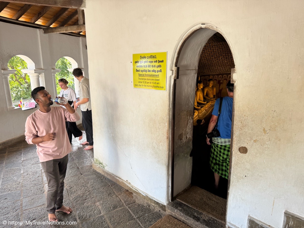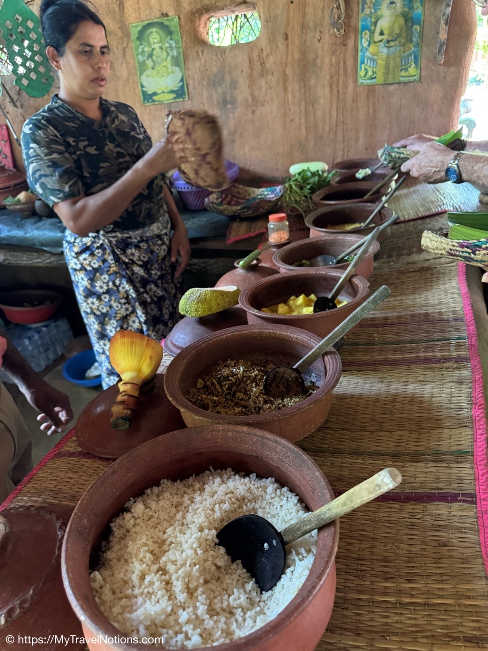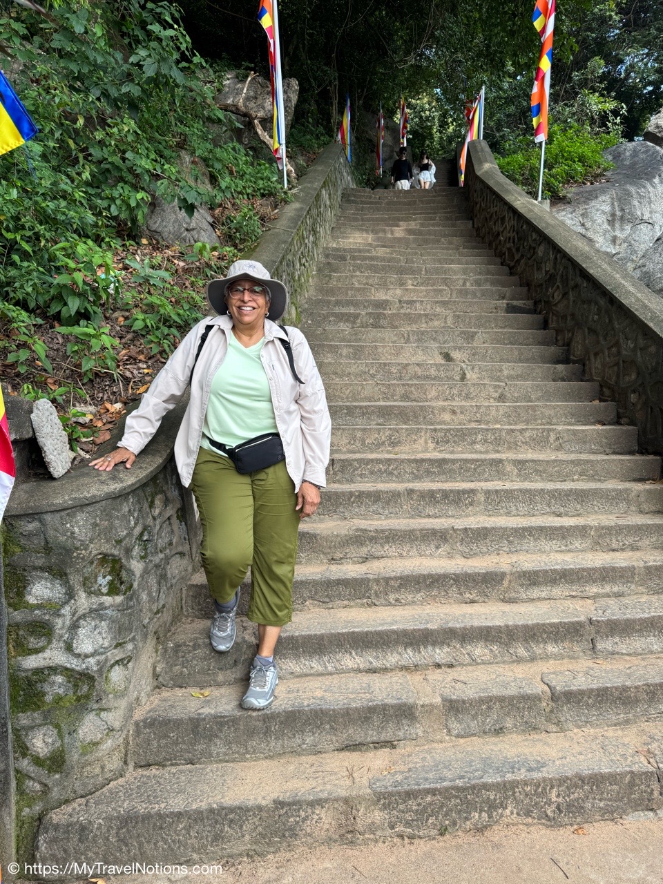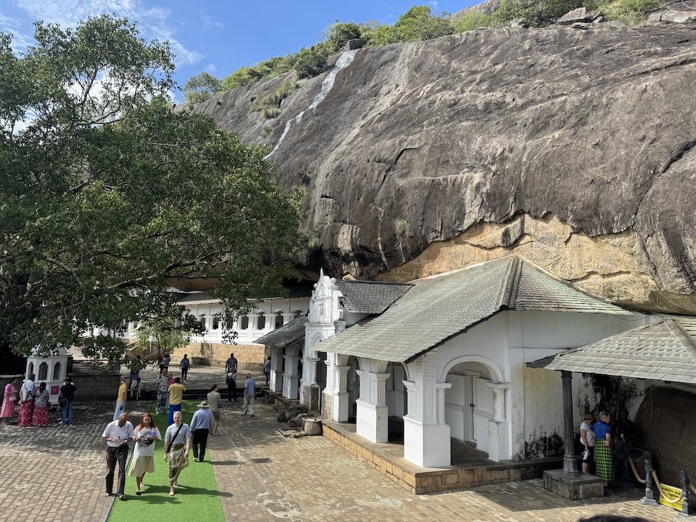 Getting ready to climb the more than 200 steps up to the temple cave known as the Golden Temple of Dambulla, a UNESCO World Heritage Site located in the Matale District within the town of Dambulla. (March 5, 2025)Before climbing to the Dambulla cave temple, we began our morning with a visit to the Spice Garden in Matale, Sri Lanka on our drive to the small city of Habarana in the Anuradhapura District of Sri Lanka. When I was in Zanzibar last year in October, I did a magnificent Spice Tour. Although this Spice Garden was lacking in variety, I did learn a thing or two about the medicinal purposes of spices and herbs. (March 5, 2025)Our Spice Garden guide in Matale is holding a cinnamon stick that comes from the tree barks in Sri Lanka. Cinnamon sticks known as “Ceylon cinnamon,” are traditionally used for their potential to help with blood sugar regulation (particularly for diabetes), digestion issues like gas and bloating and inflammation. (March 5, 2025)The ‘King of Spices’ at the Spice Garden in Matale is the peppercorn. When harvested while still unripe the peppercorns are then dried through a process that causes the outer layer of the to darken and shrivel. (March 5, 2025)Cacao are the beans that come from the fruit pods of the Theobroma cacao tree at the Spice Garden in Matale. The cacao is the primary ingredient in chocolate and is used to make products like cocoa powder, cocoa butter and of course delicious chocolate. Besides tasting good, it has magnesium and it is good for the heart. (March 5, 2025)Cacao are the beans that come from the fruit pods of the Theobroma cacao tree at the Spice Garden in Matale, Sri Lanka. (March 5, 2025)The Arabica coffee flowering plant at the Spice Garden in Matale, Sri Lanka. The first written record of coffee made from roasted coffee beans (botanical seeds) comes from Arab scholars, who wrote that it was useful in prolonging their working hours. (March 5, 2025)We stopped for lunch along the side of the road at this little eatery, Athula Restaurant on our way to Habarana in the Anuradhapura District of Sri Lanka. (March 5, 2025)It’s a buffet style lunch, which we seem to have a lot of, at the Athula Restaurant along Kandy Road on our way to Habarana in the Anuradhapura District of Sri Lanka. Buffet meals, always includes rice, is heavy on variety (and sometimes little visitors looking for food). For me, it provides an opportunity to pick and choose while getting small amounts to taste and if I like it, go back for more. (March 5, 2025)Sitting down to eat in this quite humble establishment, the Athula Restaurant, along Kandy Road, on our way to Habarana in the Anuradhapura District of Sri Lanka. (March 5, 2025)My plate of food at the Athula Restaurant along Kandy Road on our way to Habarana in the Anuradhapura District of Sri Lanka. These meals can cost around 2500 Sri Lankan Rupees which is about $8.50 USD. The food is also well seasoned and can be a bit spicy, but I love it. (March 5, 2025)After lunch, we made a quick stop to this bustling hub of commerce, the Dambulla Dedicated Economic Center (DEC), a wholesale marketplace attracting traders and farmers from various parts of Sri Lanka. The DEC was supposedly a method to help farmers sell their agricultural goods to wholesalers, but detractors claim the middleman still exerts significant influence leading to price fluctuations that neither bully benefit the farmer nor the consumer. Out for a buck on someone else’s hard work. (March 5, 2025)Inside the commerce hub of the Dambulla Dedicated Economic Center (DEC), a wholesale marketplace attracting traders and fruits and vegetable farmers from various parts of Sri Lanka. (March 5, 2025)Inside the commerce hub of the Dambulla Dedicated Economic Center (DEC), a wholesale marketplace attracting traders and fruits and vegetable farmers from various parts of Sri Lanka. (March 5, 2025)Inside the commerce hub of the Dambulla Dedicated Economic Center (DEC), a wholesale marketplace attracting traders and fruits and vegetable farmers from various parts of Sri Lanka. (March 5, 2025)Inside the commerce hub of the Dambulla Dedicated Economic Center (DEC), a wholesale marketplace attracting traders and fruits and vegetable farmers from various parts of Sri Lanka. (March 5, 2025)The colorful buses parked at the Dambulla Dedicated Economic Center (DEC), a wholesale marketplace attracting traders and fruits and vegetable farmers from various parts of Sri Lanka. (March 5, 2025)The entrance to the Golden Temple of Dambulla, a World Heritage Site located in the Matale District within the town of Dambulla and up along the slope of the Dambulla Rock. (March 5, 2025)I had prepared myself for the 200 steps, just not the heat, up to the Golden Temple of Dambulla, a World Heritage Site located in the Matale District within the town of Dambulla and up along the slope of the Dambulla Rock. (March 5, 2025)Still climbing the stairs up to the Golden Temple of Dambulla.(March 5, 2025)Views on the way up to the Golden Temple of Dambulla along the gentle slope of the Dambulla Rock. (March 5, 2025)Made it up the 200 plus steps but before entering the Golden Temple of Dambulla, everyone has to remove their shoes. Also legs, below the knees, and shoulders need to be covered. So glad I had on socks because the ground was hot. (March 5, 2025)Walking to the main entryway of the Golden Temple of Dambulla. It is the largest and best-preserved cave temple complex in Sri Lanka. The rock towers about 524 feet or 160 meters over the surrounding plains. There are more than 80 documented caves in the surrounding area. (March 5, 2025)The Golden Temple of Dambulla, also known as the Dambulla Cave Temple, is a sacred Buddhist site carved into caves as early as the 3rd century BC and features five distinct cave shrines of varying sizes, each containing a unique collection of statues, paintings, and religious art, showcasing various epochs or eras of Sinhala sculpture and art. The caves a