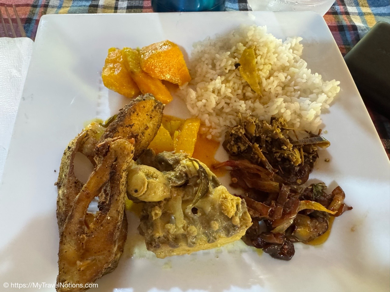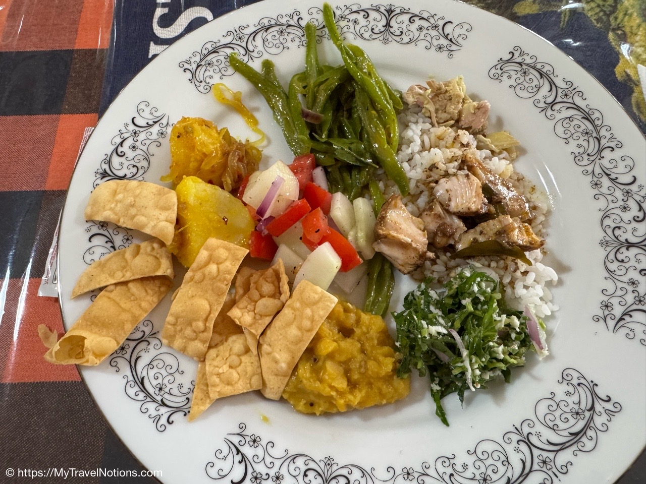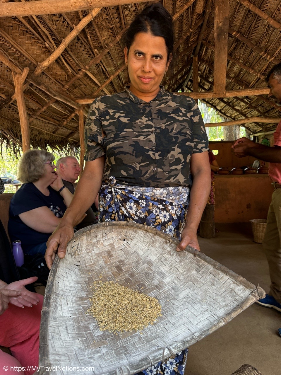 Getting ready to climb the more than 200 steps up to the temple cave known as the Golden Temple of Dambulla, a UNESCO World Heritage Site located in the Matale District within the town of Dambulla. (March 5, 2025)Before climbing to the Dambulla cave temple, we began our morning with a visit to the Spice Garden in Matale, Sri Lanka on our drive to the small city of Habarana in the Anuradhapura District of Sri Lanka. When I was in Zanzibar last year in October, I did a magnificent Spice Tour. Although this Spice Garden was lacking in variety, I did learn a thing or two about the medicinal purposes of spices and herbs. (March 5, 2025)Our Spice Garden guide in Matale is holding a cinnamon stick that comes from the tree barks in Sri Lanka. Cinnamon sticks known as “Ceylon cinnamon,” are traditionally used for their potential to help with blood sugar regulation (particularly for diabetes), digestion issues like gas and bloating and inflammation. (March 5, 2025)The ‘King of Spices’ at the Spice Garden in Matale is the peppercorn. When harvested while still unripe the peppercorns are then dried through a process that causes the outer layer of the to darken and shrivel. (March 5, 2025)Cacao are the beans that come from the fruit pods of the Theobroma cacao tree at the Spice Garden in Matale. The cacao is the primary ingredient in chocolate and is used to make products like cocoa powder, cocoa butter and of course delicious chocolate. Besides tasting good, it has magnesium and it is good for the heart. (March 5, 2025)Cacao are the beans that come from the fruit pods of the Theobroma cacao tree at the Spice Garden in Matale, Sri Lanka. (March 5, 2025)The Arabica coffee flowering plant at the Spice Garden in Matale, Sri Lanka. The first written record of coffee made from roasted coffee beans (botanical seeds) comes from Arab scholars, who wrote that it was useful in prolonging their working hours. (March 5, 2025)We stopped for lunch along the side of the road at this little eatery, Athula Restaurant on our way to Habarana in the Anuradhapura District of Sri Lanka. (March 5, 2025)It’s a buffet style lunch, which we seem to have a lot of, at the Athula Restaurant along Kandy Road on our way to Habarana in the Anuradhapura District of Sri Lanka. Buffet meals, always includes rice, is heavy on variety (and sometimes little visitors looking for food). For me, it provides an opportunity to pick and choose while getting small amounts to taste and if I like it, go back for more. (March 5, 2025)Sitting down to eat in this quite humble establishment, the Athula Restaurant, along Kandy Road, on our way to Habarana in the Anuradhapura District of Sri Lanka. (March 5, 2025)My plate of food at the Athula Restaurant along Kandy Road on our way to Habarana in the Anuradhapura District of Sri Lanka. These meals can cost around 2500 Sri Lankan Rupees which is about $8.50 USD. The food is also well seasoned and can be a bit spicy, but I love it. (March 5, 2025)After lunch, we made a quick stop to this bustling hub of commerce, the Dambulla Dedicated Economic Center (DEC), a wholesale marketplace attracting traders and farmers from various parts of Sri Lanka. The DEC was supposedly a method to help farmers sell their agricultural goods to wholesalers, but detractors claim the middleman still exerts significant influence leading to price fluctuations that neither bully benefit the farmer nor the consumer. Out for a buck on someone else’s hard work. (March 5, 2025)Inside the commerce hub of the Dambulla Dedicated Economic Center (DEC), a wholesale marketplace attracting traders and fruits and vegetable farmers from various parts of Sri Lanka. (March 5, 2025)Inside the commerce hub of the Dambulla Dedicated Economic Center (DEC), a wholesale marketplace attracting traders and fruits and vegetable farmers from various parts of Sri Lanka. (March 5, 2025)Inside the commerce hub of the Dambulla Dedicated Economic Center (DEC), a wholesale marketplace attracting traders and fruits and vegetable farmers from various parts of Sri Lanka. (March 5, 2025)Inside the commerce hub of the Dambulla Dedicated Economic Center (DEC), a wholesale marketplace attracting traders and fruits and vegetable farmers from various parts of Sri Lanka. (March 5, 2025)The colorful buses parked at the Dambulla Dedicated Economic Center (DEC), a wholesale marketplace attracting traders and fruits and vegetable farmers from various parts of Sri Lanka. (March 5, 2025)The entrance to the Golden Temple of Dambulla, a World Heritage Site located in the Matale District within the town of Dambulla and up along the slope of the Dambulla Rock. (March 5, 2025)I had prepared myself for the 200 steps, just not the heat, up to the Golden Temple of Dambulla, a World Heritage Site located in the Matale District within the town of Dambulla and up along the slope of the Dambulla Rock. (March 5, 2025)Still climbing the stairs up to the Golden Temple of Dambulla.(March 5, 2025)Views on the way up to the Golden Temple of Dambulla along the gentle slope of the Dambulla Rock. (March 5, 2025)Made it up the 200 plus steps but before entering the Golden Temple of Dambulla, everyone has to remove their shoes. Also legs, below the knees, and shoulders need to be covered. So glad I had on socks because the ground was hot. (March 5, 2025)Walking to the main entryway of the Golden Temple of Dambulla. It is the largest and best-preserved cave temple complex in Sri Lanka. The rock towers about 524 feet or 160 meters over the surrounding plains. There are more than 80 documented caves in the surrounding area. (March 5, 2025)The Golden Temple of Dambulla, also known as the Dambulla Cave Temple, is a sacred Buddhist site carved into caves as early as the 3rd century BC and features five distinct cave shrines of varying sizes, each containing a unique collection of statues, paintings, and religious art, showcasing various epochs or eras of Sinhala sculpture and art. The caves a