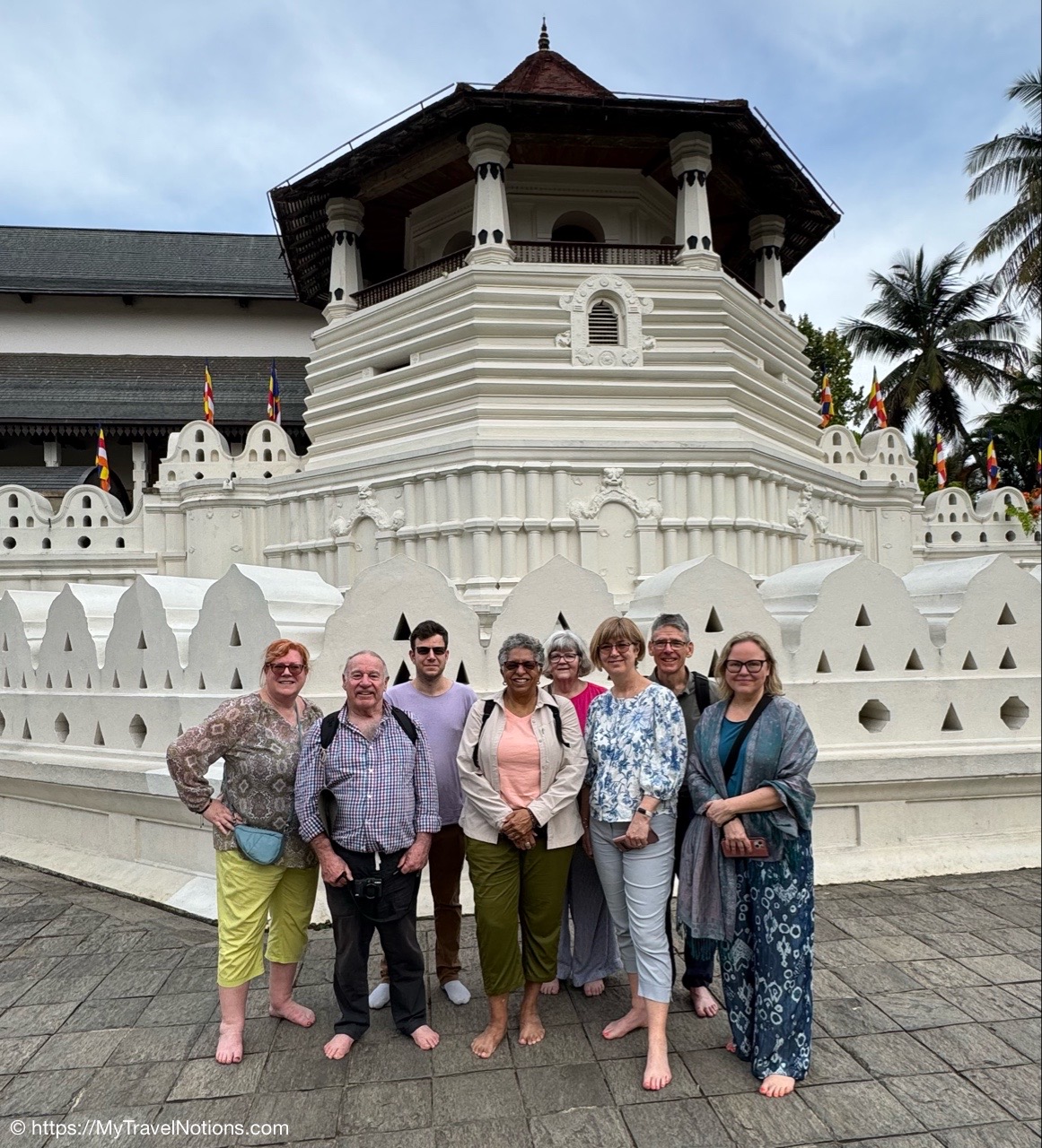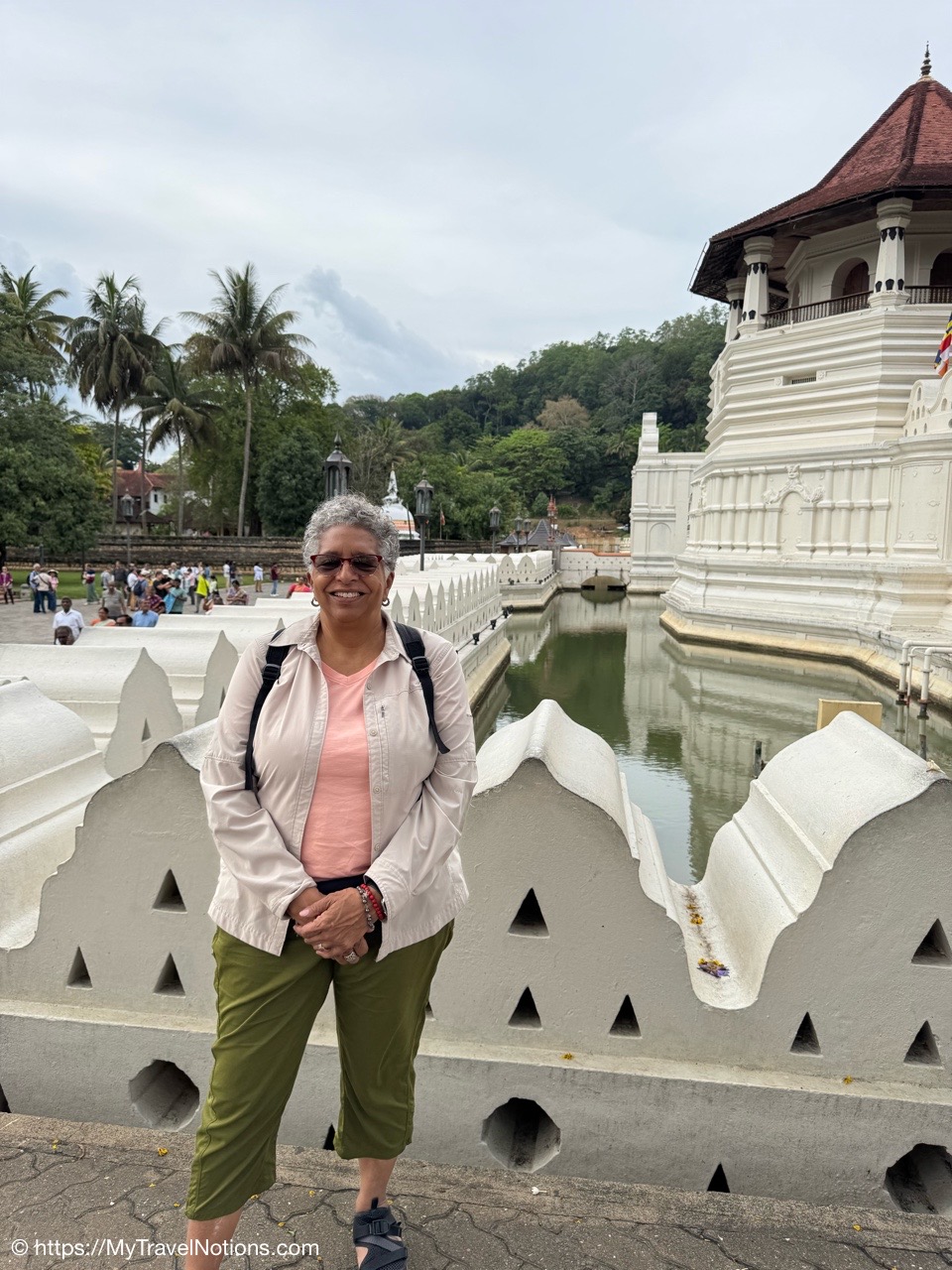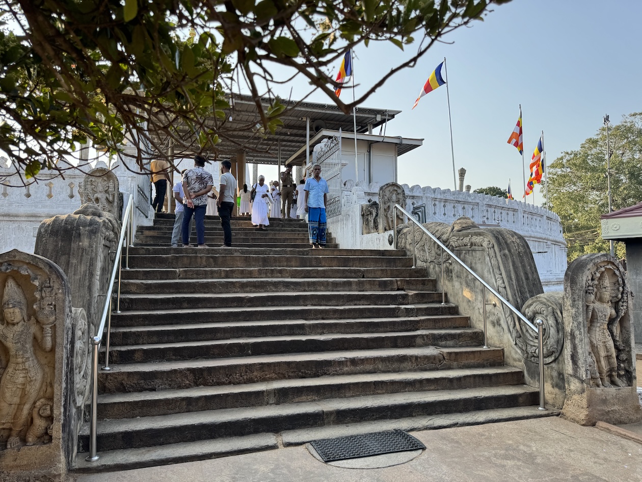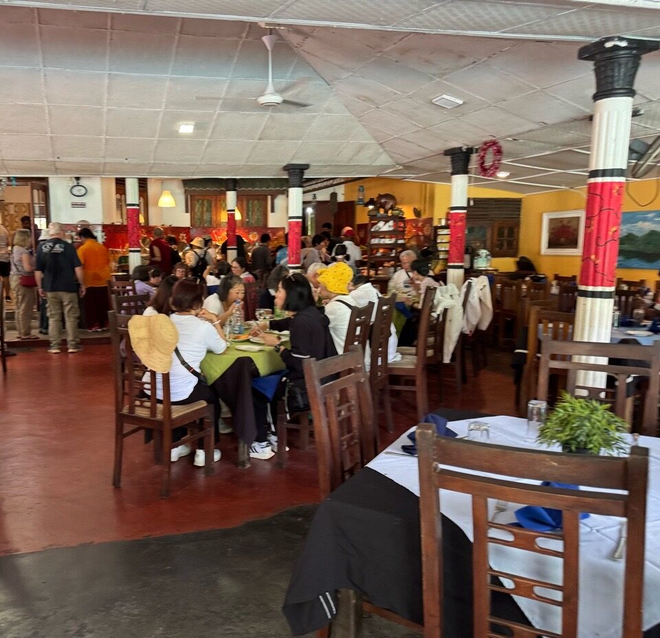 Me at the Royal Palace Complex of the former Kingdom of Kandy in Sri Lanka. This complex houses the venerated relic of the tooth of the Buddha in its Temple of the Tooth Relic, which is a UNESCO World Heritage Site. (March 3, 2025)Leaving Negombo for Kandy, Sri Lanka, as the area is waking up and families are getting their day started. (March 3, 2025)Leaving Negombo for Kandy, Sri Lanka, as the area is waking up and families are getting their day started. (March 3, 2025)Passing by a Hindu Temple in Negombo as we leave the city to make our way to Kandy. (March 3, 2025)Passing the Negombo Lagoon where the colorful fisherman’s boats are docked. (March 3, 2025)Passing the Negombo Lagoon where the colorful fisherman’s boats are docked. (March 3, 2025)The busy Monday morning Negombo Fish Market where fishing vendors sell their catch and also where the fish are dried. (March 3, 2025)As we made our way from Negombo to Kandy we passed fields of rice paddies. (March 3, 2025)As we made our way from Negombo to Kandy we passed fields of rice paddies. (March 3, 2025)To get to Kandy, we hopped onto the tolled highway. Tuk Tuks and motorcycles are not allowed on the highways otherwise they face heavy fines. (March 3, 2025)A quick stop at the crowded Cafe Amakie coffee shop, on our way to Kandy, with a variety of pastries and some pretty delicious dark chocolates that I bought. But as a chocolate lover, I am seeing mostly chocolate cakes rather than whole pieces of chocolate. But it’s just the beginning of my Sri Lankan journey and the hunt continues. (March 3, 2025)Pants for sale along the roadway to Kandy starting at a cost of 900 Rupees or $3.07 USD up to 2000 Rupees or $6.82 USD. (March 3, 2025)Passing a beautifully carved temple area at the crossroads of three intersections on our way to Kandy. (March 3, 2025)The beautiful landscape between Negombo and Kandy in Sri Lanka. (March 3, 2025)We made a quick stop to checkout the coconuts on our way to Kandy and get an education on what they are used for in Sri Lanka. The orange-looking ones are young coconuts known best for its coconut juice. (March 3, 2025)The husks of these green coconuts are good for fertilizer. (March 3, 2025)Standing under a coconut palm tree along the Kurunegala-Kandy Road on our way to Kandy. (March 3, 2025)Colorful murals along the Kurunegala-Kandy Road on our way to Kandy. (March 3, 2025)Heading to lunch with a family, in the Kandy District, off the Kurunegala-Kandy Road on our way to Kandy, who will welcome us into their home and provide us with a home cooked meal. (March 3, 2025)The porch and entryway of the kind family welcoming us into their home for a home cooked lunch in the Kandy District. (March 3, 2025)A help yourself to nine bowls of food from rice to chicken and more at our home cooked meal in Kandy. Let me introduce you to my Intrepid Travel group, from left: me, Tina, Helen, Liz, Merlyn, Nathan, Cheryl, David, our tour leader Varij, Sue and Patrick. (March 3, 2025)My plate of food. I couldn’t tell you what everything is but I can tell you it was delicious and perfectly seasoned with a little touch of spice, especially the chicken. This has, so far, been my best meal in Sri Lanka. (March 3, 2025)The wonderful family who welcomed us into their home in the Kandy District of Sri Lanka. We actually ate a lot as a group, but they still had more food for us. From left: Kolita, Deepthi, Chamodi. (March 3, 2025)We quickly checked into our hotel Thilanka in Kandy. This is my very roomy room with another balcony with different views than in Negombo yet still stunning. (March 3, 2025)Views of the forestry and greenery from my hotel room balcony at the Thilanka Hotel in Kandy, Sri Lanka. (March 3, 2025)After we got checked into our hotel we moved on to the Kandy Viewpoint with its Statue of the Lord Buddha along the roadside in Kandy. (March 3, 2025)Statue of the Lord Buddha along the roadside by the Kandy Viewpoint in Kandy. (March 3, 2025)And, here are some more views, from the Kandy Viewpoint overlooking Kandy Lake. (March 3, 2025)The Kandy Viewpoint overlooking Kandy Lake. (March 3, 2025)The Kandy Viewpoint overlooking Kandy Lake. (March 3, 2025)We stopped at the gem stone shop of Isini to learn about Sri Lanka’s very long gem industry and of course gemstone jewelry to purchase. (March 3, 2025)Seeing the technicians at their jewelry-making craft at the Isini Gems & Jewellers Shop in Kandy. “In Sri Lanka, gemstones are primarily mined using a traditional, manual method called “placer mining,” where miners dig open pits in riverbeds and alluvial gravels, then wash the gravel by hand in baskets or sieves to reveal the gemstones, with most operations relying on simple tools and minimal mechanization; this process is considered a time-honored practice with little capital outlay, utilizing techniques like pit-head mining, surface placer mining, and riverbed dredging,” according to the Gemstone Mining and Industry. (March 3, 2025)The showroom inside the Isini Gems & Jewellers Shop in Kandy for the buying part of the gemstone demonstration. (March 3, 2025)Driving thru Kandy, Sri Lanka. (March 3, 2025)Driving thru Kandy, Sri Lanka. (March 3, 2025)The Queens Hotel across the way from the entrance to the Sri Dalada Maligawa, commonly known in English as the Temple of the Sacred Tooth Relic, inside the Royal Palace Complex of the former Kingdom of Kandy. (March 3, 2025)The Queens Hotel across the way from the entrance to the Sri Dalada Maligawa, commonly known in English as the Temple of the Sacred Tooth Relic, inside the Royal Palace Complex of the former Kingdom of Kandy. (March 3, 2025)Walking towards the Royal Palace Complex of the former Kingdom of Kandy, which houses the relic of the tooth of the Buddha, the Sri Dalada Maligawa, commonly known in English as the Temple of the Sacred Tooth Relic. This complex encompasses a range of structures, including the Audience Hall, the Queen’s Palace, the King’s Palace, a