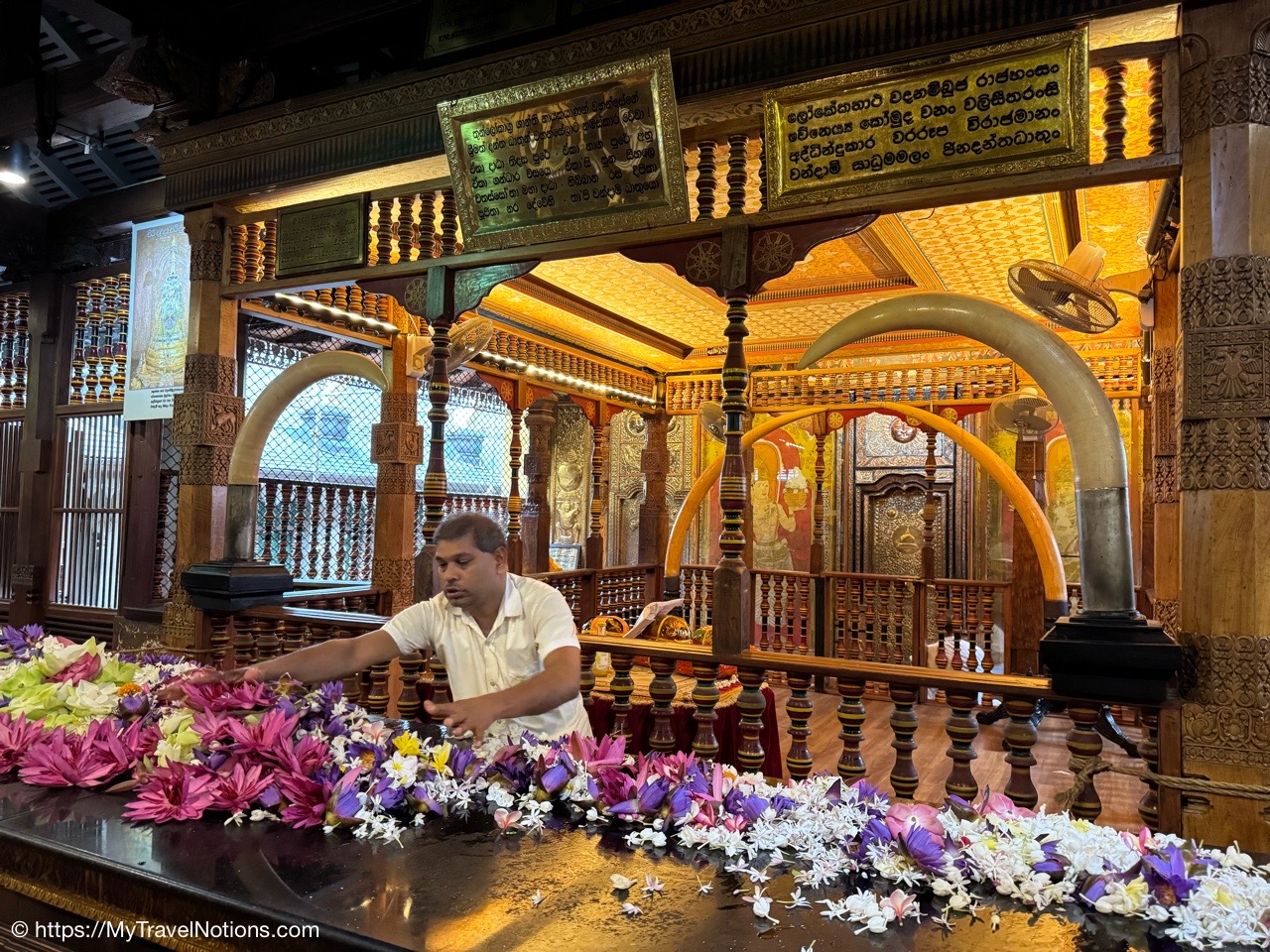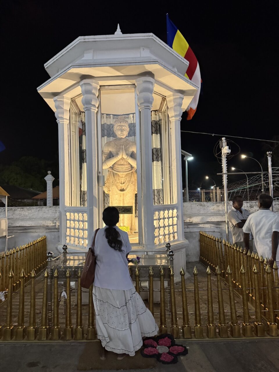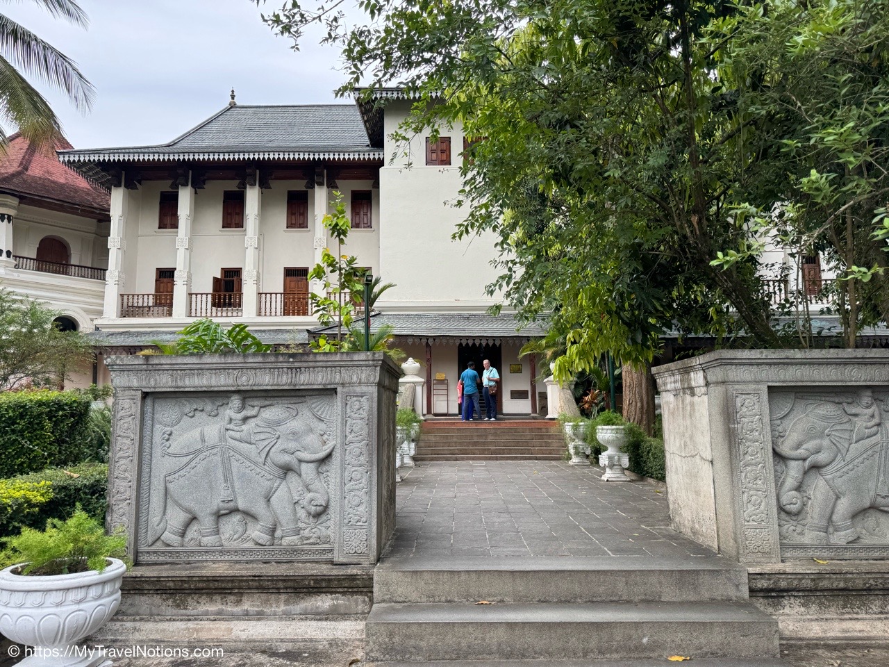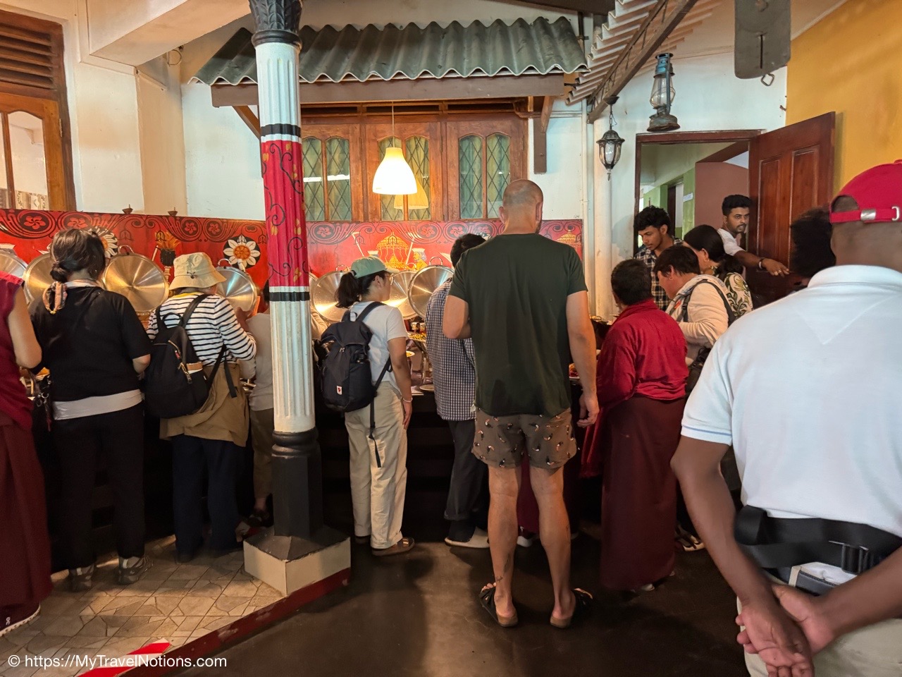 Me at the Royal Palace Complex of the former Kingdom of Kandy in Sri Lanka. This complex houses the venerated relic of the tooth of the Buddha in its Temple of the Tooth Relic, which is a UNESCO World Heritage Site. (March 3, 2025)Leaving Negombo for Kandy, Sri Lanka, as the area is waking up and families are getting their day started. (March 3, 2025)Leaving Negombo for Kandy, Sri Lanka, as the area is waking up and families are getting their day started. (March 3, 2025)Passing by a Hindu Temple in Negombo as we leave the city to make our way to Kandy. (March 3, 2025)Passing the Negombo Lagoon where the colorful fisherman’s boats are docked. (March 3, 2025)Passing the Negombo Lagoon where the colorful fisherman’s boats are docked. (March 3, 2025)The busy Monday morning Negombo Fish Market where fishing vendors sell their catch and also where the fish are dried. (March 3, 2025)As we made our way from Negombo to Kandy we passed fields of rice paddies. (March 3, 2025)As we made our way from Negombo to Kandy we passed fields of rice paddies. (March 3, 2025)To get to Kandy, we hopped onto the tolled highway. Tuk Tuks and motorcycles are not allowed on the highways otherwise they face heavy fines. (March 3, 2025)A quick stop at the crowded Cafe Amakie coffee shop, on our way to Kandy, with a variety of pastries and some pretty delicious dark chocolates that I bought. But as a chocolate lover, I am seeing mostly chocolate cakes rather than whole pieces of chocolate. But it’s just the beginning of my Sri Lankan journey and the hunt continues. (March 3, 2025)Pants for sale along the roadway to Kandy starting at a cost of 900 Rupees or $3.07 USD up to 2000 Rupees or $6.82 USD. (March 3, 2025)Passing a beautifully carved temple area at the crossroads of three intersections on our way to Kandy. (March 3, 2025)The beautiful landscape between Negombo and Kandy in Sri Lanka. (March 3, 2025)We made a quick stop to checkout the coconuts on our way to Kandy and get an education on what they are used for in Sri Lanka. The orange-looking ones are young coconuts known best for its coconut juice. (March 3, 2025)The husks of these green coconuts are good for fertilizer. (March 3, 2025)Standing under a coconut palm tree along the Kurunegala-Kandy Road on our way to Kandy. (March 3, 2025)Colorful murals along the Kurunegala-Kandy Road on our way to Kandy. (March 3, 2025)Heading to lunch with a family, in the Kandy District, off the Kurunegala-Kandy Road on our way to Kandy, who will welcome us into their home and provide us with a home cooked meal. (March 3, 2025)The porch and entryway of the kind family welcoming us into their home for a home cooked lunch in the Kandy District. (March 3, 2025)A help yourself to nine bowls of food from rice to chicken and more at our home cooked meal in Kandy. Let me introduce you to my Intrepid Travel group, from left: me, Tina, Helen, Liz, Merlyn, Nathan, Cheryl, David, our tour leader Varij, Sue and Patrick. (March 3, 2025)My plate of food. I couldn’t tell you what everything is but I can tell you it was delicious and perfectly seasoned with a little touch of spice, especially the chicken. This has, so far, been my best meal in Sri Lanka. (March 3, 2025)The wonderful family who welcomed us into their home in the Kandy District of Sri Lanka. We actually ate a lot as a group, but they still had more food for us. From left: Kolita, Deepthi, Chamodi. (March 3, 2025)We quickly checked into our hotel Thilanka in Kandy. This is my very roomy room with another balcony with different views than in Negombo yet still stunning. (March 3, 2025)Views of the forestry and greenery from my hotel room balcony at the Thilanka Hotel in Kandy, Sri Lanka. (March 3, 2025)After we got checked into our hotel we moved on to the Kandy Viewpoint with its Statue of the Lord Buddha along the roadside in Kandy. (March 3, 2025)Statue of the Lord Buddha along the roadside by the Kandy Viewpoint in Kandy. (March 3, 2025)And, here are some more views, from the Kandy Viewpoint overlooking Kandy Lake. (March 3, 2025)The Kandy Viewpoint overlooking Kandy Lake. (March 3, 2025)The Kandy Viewpoint overlooking Kandy Lake. (March 3, 2025)We stopped at the gem stone shop of Isini to learn about Sri Lanka’s very long gem industry and of course gemstone jewelry to purchase. (March 3, 2025)Seeing the technicians at their jewelry-making craft at the Isini Gems & Jewellers Shop in Kandy. “In Sri Lanka, gemstones are primarily mined using a traditional, manual method called “placer mining,” where miners dig open pits in riverbeds and alluvial gravels, then wash the gravel by hand in baskets or sieves to reveal the gemstones, with most operations relying on simple tools and minimal mechanization; this process is considered a time-honored practice with little capital outlay, utilizing techniques like pit-head mining, surface placer mining, and riverbed dredging,” according to the Gemstone Mining and Industry. (March 3, 2025)The showroom inside the Isini Gems & Jewellers Shop in Kandy for the buying part of the gemstone demonstration. (March 3, 2025)Driving thru Kandy, Sri Lanka. (March 3, 2025)Driving thru Kandy, Sri Lanka. (March 3, 2025)The Queens Hotel across the way from the entrance to the Sri Dalada Maligawa, commonly known in English as the Temple of the Sacred Tooth Relic, inside the Royal Palace Complex of the former Kingdom of Kandy. (March 3, 2025)The Queens Hotel across the way from the entrance to the Sri Dalada Maligawa, commonly known in English as the Temple of the Sacred Tooth Relic, inside the Royal Palace Complex of the former Kingdom of Kandy. (March 3, 2025)Walking towards the Royal Palace Complex of the former Kingdom of Kandy, which houses the relic of the tooth of the Buddha, the Sri Dalada Maligawa, commonly known in English as the Temple of the Sacred Tooth Relic. This complex encompasses a range of structures, including the Audience Hall, the Queen’s Palace, the King’s Palace, a