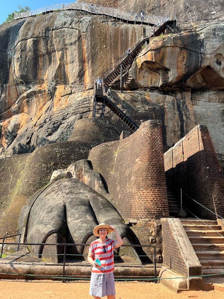 Me at the boulder garden area of Sigiriya, the Lion Rock Fortress, an ancient rock fortress near the town of Dambulla in Sri Lanka. (March 6, 2025)Walking towards the entrance gate to the Sigiriya, the ancient rock fortress near the town of Dambulla. (March 6, 2025)The monkeys checking us out at he entrance gate to the Sigiriya, the ancient rock fortress near the town of Dambulla. (March 6, 2025)Crossing the moat and the rampart of Sigiriya, the ancient rock fortress near the town of Dambulla. (March 6, 2025)The inner moat at the entrance of Sigiriya, the ancient rock fortress near the town of Dambulla. (March 6, 2025)Walking towards the ancient rock fortress of Sigiriya, also known as Sinhagiri or Lion’s Rock near Dambulla, Sri Lanka. It is a site of historical and archaeological significance, dominated by this massive rock column nearly 656 feet or 200 meters high. (March 6, 2025)Walking towards the Sigiriya, the ancient rock fortress near the town of Dambulla. The site dates back to the reign of King Kasyapa (477-495 AD), who chose this site as his new capital. He decorated the walls with frescoes, and built an impressive palace right on top of the rock column, accessible only through the mouth of an enormous carved lion. (March 6, 2025)Walking towards the Sigiriya, the ancient rock fortress near the town of Dambulla. The site dates back to the reign of King Kasyapa (477-495 AD), who chose this site as his new capital. He decorated the walls with frescoes, and built an impressive palace right on top of the rock column, accessible only through the mouth of an enormous carved lion. (March 6, 2025)The Sigiriya, the ancient rock fortress near the town of Dambulla. (March 6, 2025)The Sigiriya, the ancient rock fortress near the town of Dambulla. The site dates back to the reign of King Kasyapa (477-495 AD), who chose this site as his new capital. He decorated the walls with frescoes, and built an impressive palace right on top of the rock column, accessible only through the mouth of an enormous carved lion. (March 6, 2025)The Sigiriya, the ancient rock fortress near the town of Dambulla. (March 6, 2025)The boulder garden area around Sigiriya, the ancient rock fortress near the town of Dambulla. (March 6, 2025)The boulder garden area around Sigiriya, the ancient rock fortress near the town of Dambulla. (March 6, 2025)The Sigiriya, the ancient rock fortress near the town of Dambulla. (March 6, 2025)Just some of the many stairs for climbing up to the summit and through the boulder garden of Sigiriya, the ancient rock fortress near the town of Dambulla. (March 6, 2025)The boulder garden area around Sigiriya, the ancient rock fortress near the town of Dambulla. (March 6, 2025)Climbing through the boulder garden to the summit of Sigiriya, the ancient rock fortress near the town of Dambulla. (March 6, 2025)Climbing through the boulder garden to the summit of Sigiriya, the ancient rock fortress near the town of Dambulla. (March 6, 2025)Climbing through the boulder garden to the summit of Sigiriya, the ancient rock fortress near the town of Dambulla. (March 6, 2025)Tour member Sue made it up the ancient rock fortress of Sigiriya to the remains of the great lion sculpture with obviously more stairs up to the summit. There are over 1,200 steps to the top. I did not climb the stairs up to this Lion’s Paw Terrace or the summit above. Thanks Sue for the photo. (March 6, 2025)The fresco cave-like gallery inside the Sigiriya Archeological Museum located outside the Sigiriya fortress rock grounds features replica murals of the famous fresco paintings found on the walls of the rock fortress. (March 6, 2025)The fresco cave-like gallery inside the Sigiriya Archeological Museum located outside the Sigiriya fortress rock grounds features replica murals of the famous fresco paintings found on the walls of the rock fortress. These murals depict beautiful golden skinned, bare breasted female figures who were admired for their sensuous and exotic beauty. (March 6, 2025)The fresco cave-like gallery inside the Sigiriya Archeological Museum located outside the Sigiriya fortress rock grounds features replica murals of the famous fresco paintings found on the walls of the rock fortress. These murals depict beautiful golden skinned, bare breasted female figures who were admired for their sensuous and exotic beauty. (March 6, 2025)The fresco cave-like gallery inside the Sigiriya Archeological Museum located outside the Sigiriya fortress rock grounds features replica murals of the famous fresco paintings found on the walls of the rock fortress. These murals depict beautiful golden skinned, bare breasted female figures who were admired for their sensuous and exotic beauty. (March 6, 2025)The fresco cave-like gallery inside the Sigiriya Archeological Museum located outside the Sigiriya fortress rock grounds features replica murals of the famous fresco paintings found on the walls of the rock fortress. These murals depict beautiful golden skinned, bare breasted female figures who were admired for their sensuous and exotic beauty. (March 6, 2025)For lunch, we ate outdoors in a small village off of the Dambulla-Habarana Road in the Anuradhapura District of Sri Lanka. (March 6, 2025)For lunch, we ate outdoors in a small village off of the Dambulla-Habarana Road in the Anuradhapura District of Sri Lanka. (March 6, 2025)For lunch, we ate outdoors in this covered outdoor kitchen and room in a small village off of the Dambulla-Habarana Road in the Anuradhapura District of Sri Lanka. (March 6, 2025)The outdoor covered kitchen where we had lunch in a small village off of the Dambulla-Habarana Road in the Anuradhapura District of Sri Lanka. (March 6, 2025)The outdoor covered kitchen where we had lunch in a small village off of the Dambulla-Habarana Road in the Anuradhapura District of Sri Lanka. Clay pots are used to store the prepared food. (March 6, 2025)Our cook and host Anusha, cutting up the vegetables to cook for our lunch in