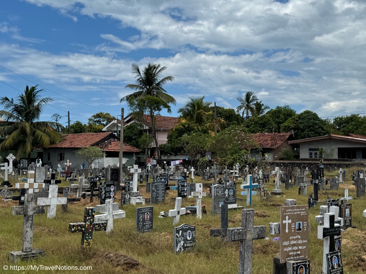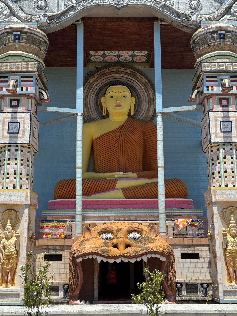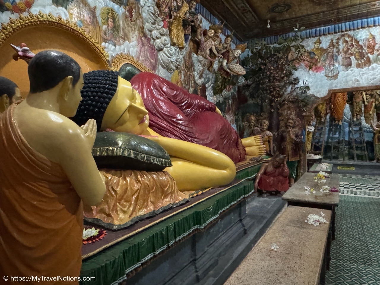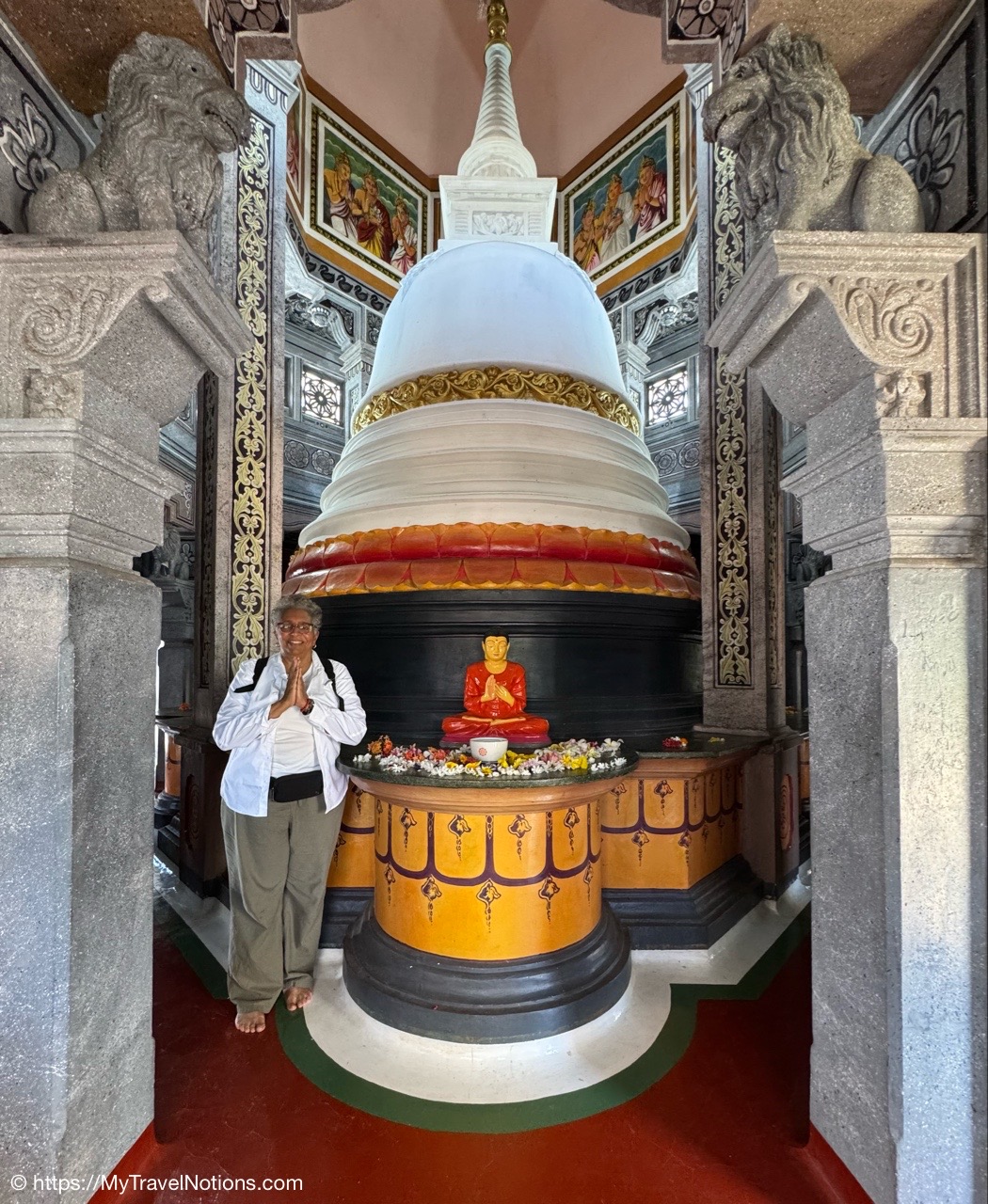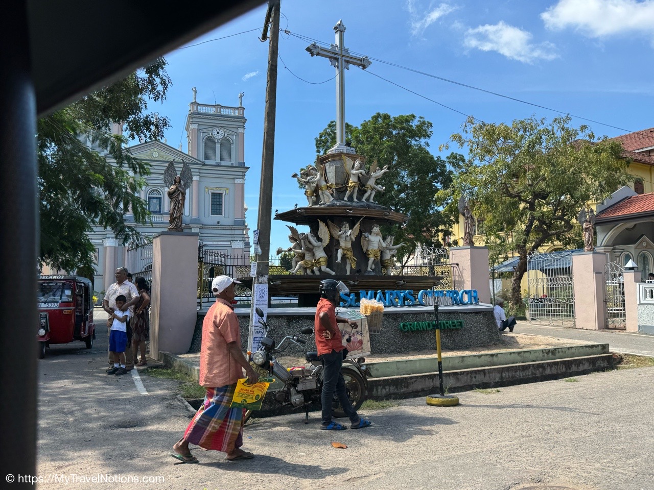 Sitting in the drivers seat of my Tuk Tuk city tour transportation with my guide and driver, Ricky from Capital Tour, taking the photo during our stop at the Buddhist and Hindu temple of Angurukaramulla in Negombo. (March 2, 2025)Getting to our first stop of the tour, St. Mary’s Church in Negombo. (March 2, 2025)St. Mary’s Church , is considered to be one of the largest Catholic Churches in Sri Lanka. Construction began in 1874 and completed, after a long gap in 1922. (March 2, 2025)Inside St. Mary’s Church in Negombo which features a ceiling of paintings, sculptures of the Stations of the Cross and various statues of saints along its columns. (March 2, 2025)The altar inside St. Mary’s Church in Negombo. (March 2, 2025)The altar inside St. Mary’s Church in Negombo. (March 2, 2025)One of the sculptures of the Stations of the Cross, ‘Simon of Cyrene helps Jesus to carry his Cross’ on the columns inside St. Mary’s Church in Negombo. (March 2, 2025)The ceiling painting inside St. Mary’s Church in Negombo. (March 2, 2025)The ceiling painting inside St. Mary’s Church in Negombo. (March 2, 2025)The side aisle inside St. Mary’s Church in Negombo. (March 2, 2025)A side view of St. Mary’s Church in Negombo. (March 2, 2025)Views around Negombo from my city Tuk Tuk tour. (March 2, 2025)Views around Negombo from my city Tuk Tuk tour. (March 2, 2025)Views around Negombo from my city Tuk Tuk tour. (March 2, 2025)Views around Negombo from my city Tuk Tuk tour. (March 2, 2025)Entering the Negombo Fish Market area which of course smells very fishy. (March 2, 2025)The Negombo Fish Market is interesting because the fresh catch and drying takes place right on the beach. Negombo made its start as a fishing community and continue to do so today. (March 2, 2025)Fish drying in the sun along the Negombo Beach. After sitting in a salt bath for several days, the fish can be laid out to dry for more than a week. (March 2, 2025)Fish drying in the sun along the Negombo Beach. After sitting in a salt bath for several days, the fish can be laid out to dry for more than a week. (March 2, 2025)Fish drying in the sun along the Negombo Beach. After sitting in a salt bath for several days, the fish can be laid out to dry for more than a week. (March 2, 2025)Fish drying in the sun along the Negombo Beach. After sitting in a salt bath for several days, the fish can be laid out to dry for more than a week. (March 2, 2025)This woman is laying out fish to dry that’s been gutted near the Fish Market by Negombo Beach. (March 2, 2025)The vendor stalls at the Negombo Central Fish Market, which are closed on Sundays. (March 2, 2025)The vendor stalls at the Negombo Central Fish Market, which are closed on Sundays. (March 2, 2025)And, even though it is Sunday, fishermen still sell their fish on a road alongside the Negombo Fish Market. (March 2, 2025)Local fishermen selling their fish at the Negombo Fish Market. (March 2, 2025)The remains of the 17th century Dutch Fort or the Negombo Fort. The original fort, though small, was built by the Portuguese. It was captured by Dutch forces in 1640. Then in 1796, the British, without opposition occupied the fort. In the late 1800s the British authorities demolished the fort and built a prison constructed from the stones of the fort. (March 2, 2025)The remains of a tower at the Dutch Fort in Negombo. (March 2, 2025)The prison built in the late 1800s by the British who tore down the Dutch Fort and used its stones to build this prison. (March 2, 2025)My Tuk Tuk driver and guide, Ricky and me, for my Negombo city tour as we’re standing under the tunnel inside the remains of the Dutch Fort. (March 2, 2025)The Negombo Lagoon by St. Nicholas Road or the Munnakkara Bridge showing off the moored colorful, traditional fishing boats or canoes. (March 2, 2025)The Negombo Lagoon by St. Nicholas Road or the Munnakkara Bridge showing off the moored colorful, traditional fishing boats or canoes. (March 2, 2025)A close-up of the fishermen’s colorful and traditional fishing boats and canoes along the Negombo Lagoon. This Dutch-era Hamilton Canal leads south to Colombo, Sri Lanka’s capital city. (March 2, 2025)Outdoor Catholic prayer shrines can be found intermittently along the streets in Negombo. (March 2, 2025)The Angurukaramulla Temple complex in Negombo. (March 2, 2025)The Angurukaramulla Temple in Negombo is known for its famous exterior close to 20 feet or 6 meters statue of Lord Buddha visible from afar is considered as a symbol of serenity and enlightenment that watches over the grounds. And, at its base lies a dragon’s head, which looks more like a lion’s head, with its mouth open wide is the entryway to the Buduge (Shrine room). This entryway is believed to protect the temple from evil spirits. The temple was constructed during the reign of King Devanampiyatissa, one of Sri Lanka’s early rulers, who reigned in the 3rd century BCE. This is a place of worship for both Hindus and Buddhists. (March 2, 2025)The Buddhist and Hindu Angurukaramulla Temple in Negombo is known for its famous exterior close to 20 feet or 6 meters statue of Lord Buddha visible from afar is considered as a symbol of serenity and enlightenment that watches over the grounds. And, at its base lies a dragon’s head, which looks more like a lion’s head, with its mouth open wide is the entryway to the Buduge (Shrine room). (March 2, 2025)Inside the Shrine room of the Angurukaramulla Temple in Negombo. (March 2, 2025)The Buddha taking one last look at his beloved wife and new born son before leaving the his royal life in search of eternal peace of the mind along the mural painted wall inside the Shrine room of the Angurukaramulla Temple in Negombo. (March 2, 2025)Inside the Shrine room hall of the Angurukaramulla Temple in Negombo. (March 2, 2025)The Buddha ascending from heaven inside the Shrine room of the Angurukaramulla Temple in Negombo. (March 2, 2025)Inside the Shrine room hall of the Anguruk