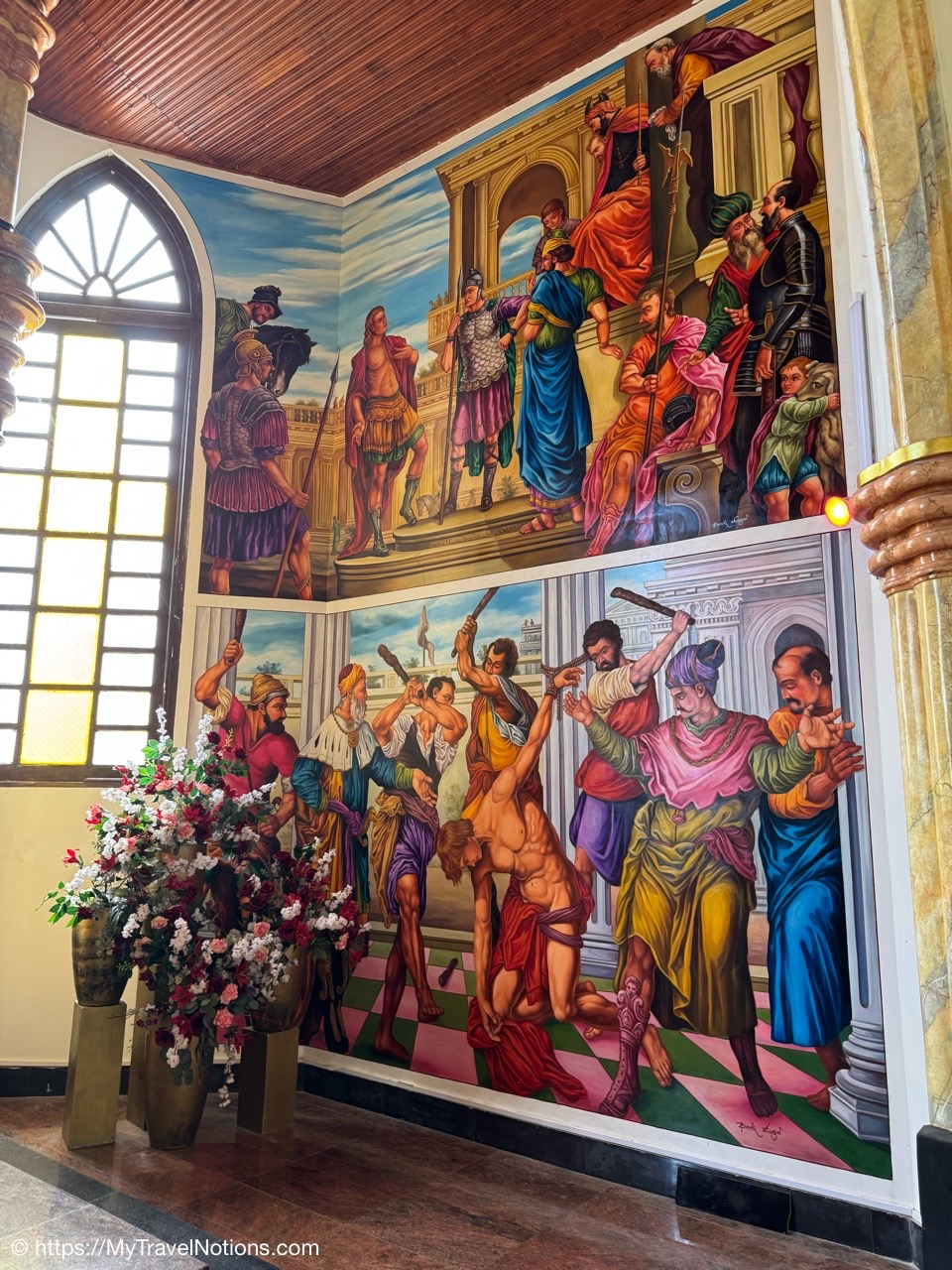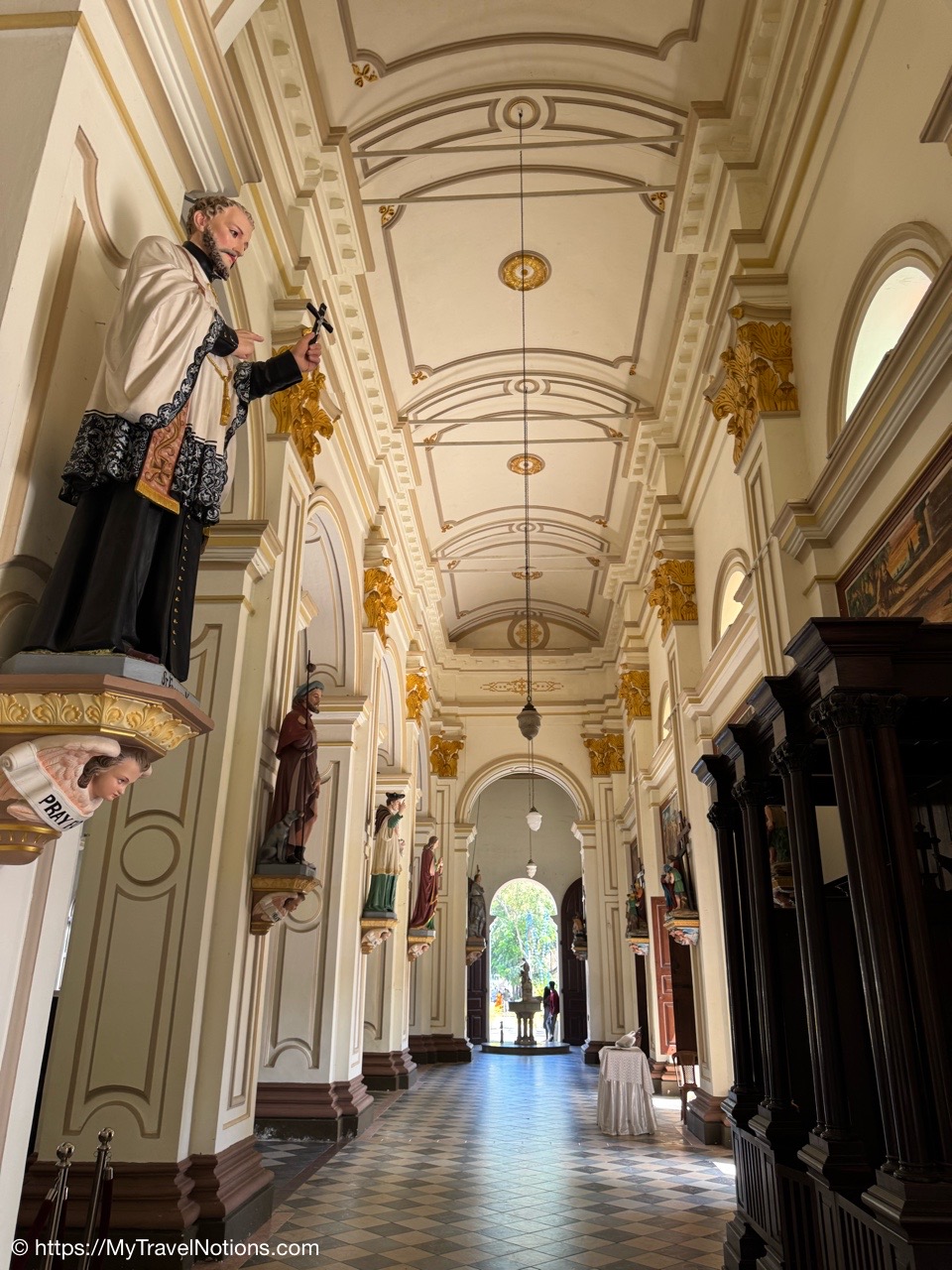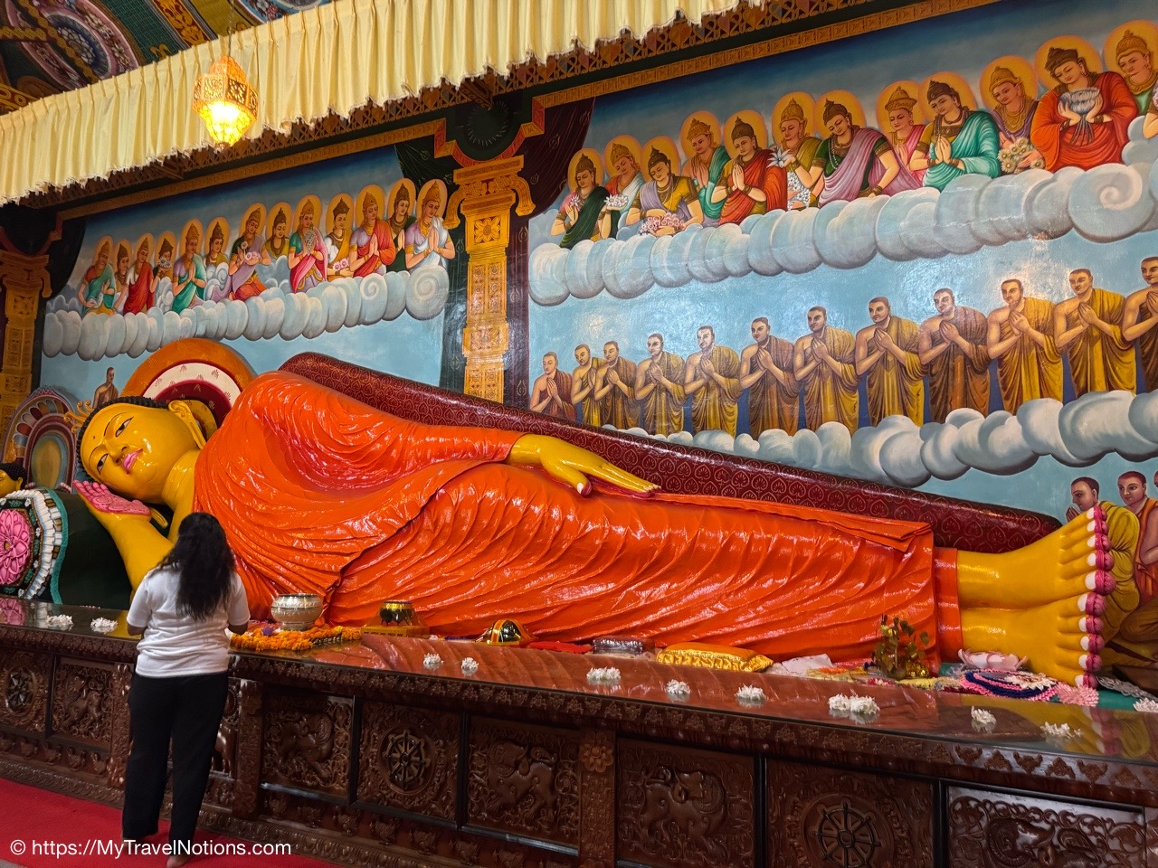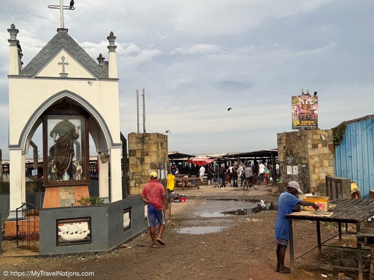 Sitting in the drivers seat of my Tuk Tuk city tour transportation with my guide and driver, Ricky from Capital Tour, taking the photo during our stop at the Buddhist and Hindu temple of Angurukaramulla in Negombo. (March 2, 2025)Getting to our first stop of the tour, St. Mary’s Church in Negombo. (March 2, 2025)St. Mary’s Church , is considered to be one of the largest Catholic Churches in Sri Lanka. Construction began in 1874 and completed, after a long gap in 1922. (March 2, 2025)Inside St. Mary’s Church in Negombo which features a ceiling of paintings, sculptures of the Stations of the Cross and various statues of saints along its columns. (March 2, 2025)The altar inside St. Mary’s Church in Negombo. (March 2, 2025)The altar inside St. Mary’s Church in Negombo. (March 2, 2025)One of the sculptures of the Stations of the Cross, ‘Simon of Cyrene helps Jesus to carry his Cross’ on the columns inside St. Mary’s Church in Negombo. (March 2, 2025)The ceiling painting inside St. Mary’s Church in Negombo. (March 2, 2025)The ceiling painting inside St. Mary’s Church in Negombo. (March 2, 2025)The side aisle inside St. Mary’s Church in Negombo. (March 2, 2025)A side view of St. Mary’s Church in Negombo. (March 2, 2025)Views around Negombo from my city Tuk Tuk tour. (March 2, 2025)Views around Negombo from my city Tuk Tuk tour. (March 2, 2025)Views around Negombo from my city Tuk Tuk tour. (March 2, 2025)Views around Negombo from my city Tuk Tuk tour. (March 2, 2025)Entering the Negombo Fish Market area which of course smells very fishy. (March 2, 2025)The Negombo Fish Market is interesting because the fresh catch and drying takes place right on the beach. Negombo made its start as a fishing community and continue to do so today. (March 2, 2025)Fish drying in the sun along the Negombo Beach. After sitting in a salt bath for several days, the fish can be laid out to dry for more than a week. (March 2, 2025)Fish drying in the sun along the Negombo Beach. After sitting in a salt bath for several days, the fish can be laid out to dry for more than a week. (March 2, 2025)Fish drying in the sun along the Negombo Beach. After sitting in a salt bath for several days, the fish can be laid out to dry for more than a week. (March 2, 2025)Fish drying in the sun along the Negombo Beach. After sitting in a salt bath for several days, the fish can be laid out to dry for more than a week. (March 2, 2025)This woman is laying out fish to dry that’s been gutted near the Fish Market by Negombo Beach. (March 2, 2025)The vendor stalls at the Negombo Central Fish Market, which are closed on Sundays. (March 2, 2025)The vendor stalls at the Negombo Central Fish Market, which are closed on Sundays. (March 2, 2025)And, even though it is Sunday, fishermen still sell their fish on a road alongside the Negombo Fish Market. (March 2, 2025)Local fishermen selling their fish at the Negombo Fish Market. (March 2, 2025)The remains of the 17th century Dutch Fort or the Negombo Fort. The original fort, though small, was built by the Portuguese. It was captured by Dutch forces in 1640. Then in 1796, the British, without opposition occupied the fort. In the late 1800s the British authorities demolished the fort and built a prison constructed from the stones of the fort. (March 2, 2025)The remains of a tower at the Dutch Fort in Negombo. (March 2, 2025)The prison built in the late 1800s by the British who tore down the Dutch Fort and used its stones to build this prison. (March 2, 2025)My Tuk Tuk driver and guide, Ricky and me, for my Negombo city tour as we’re standing under the tunnel inside the remains of the Dutch Fort. (March 2, 2025)The Negombo Lagoon by St. Nicholas Road or the Munnakkara Bridge showing off the moored colorful, traditional fishing boats or canoes. (March 2, 2025)The Negombo Lagoon by St. Nicholas Road or the Munnakkara Bridge showing off the moored colorful, traditional fishing boats or canoes. (March 2, 2025)A close-up of the fishermen’s colorful and traditional fishing boats and canoes along the Negombo Lagoon. This Dutch-era Hamilton Canal leads south to Colombo, Sri Lanka’s capital city. (March 2, 2025)Outdoor Catholic prayer shrines can be found intermittently along the streets in Negombo. (March 2, 2025)The Angurukaramulla Temple complex in Negombo. (March 2, 2025)The Angurukaramulla Temple in Negombo is known for its famous exterior close to 20 feet or 6 meters statue of Lord Buddha visible from afar is considered as a symbol of serenity and enlightenment that watches over the grounds. And, at its base lies a dragon’s head, which looks more like a lion’s head, with its mouth open wide is the entryway to the Buduge (Shrine room). This entryway is believed to protect the temple from evil spirits. The temple was constructed during the reign of King Devanampiyatissa, one of Sri Lanka’s early rulers, who reigned in the 3rd century BCE. This is a place of worship for both Hindus and Buddhists. (March 2, 2025)The Buddhist and Hindu Angurukaramulla Temple in Negombo is known for its famous exterior close to 20 feet or 6 meters statue of Lord Buddha visible from afar is considered as a symbol of serenity and enlightenment that watches over the grounds. And, at its base lies a dragon’s head, which looks more like a lion’s head, with its mouth open wide is the entryway to the Buduge (Shrine room). (March 2, 2025)Inside the Shrine room of the Angurukaramulla Temple in Negombo. (March 2, 2025)The Buddha taking one last look at his beloved wife and new born son before leaving the his royal life in search of eternal peace of the mind along the mural painted wall inside the Shrine room of the Angurukaramulla Temple in Negombo. (March 2, 2025)Inside the Shrine room hall of the Angurukaramulla Temple in Negombo. (March 2, 2025)The Buddha ascending from heaven inside the Shrine room of the Angurukaramulla Temple in Negombo. (March 2, 2025)Inside the Shrine room hall of the Anguruk