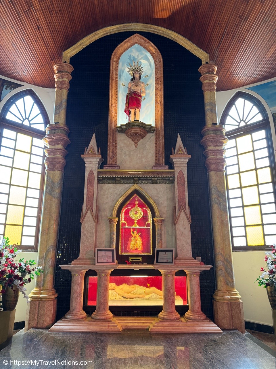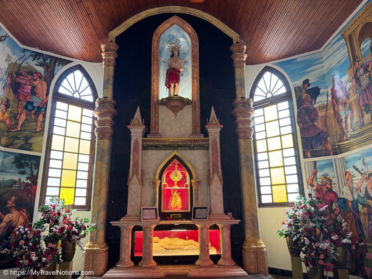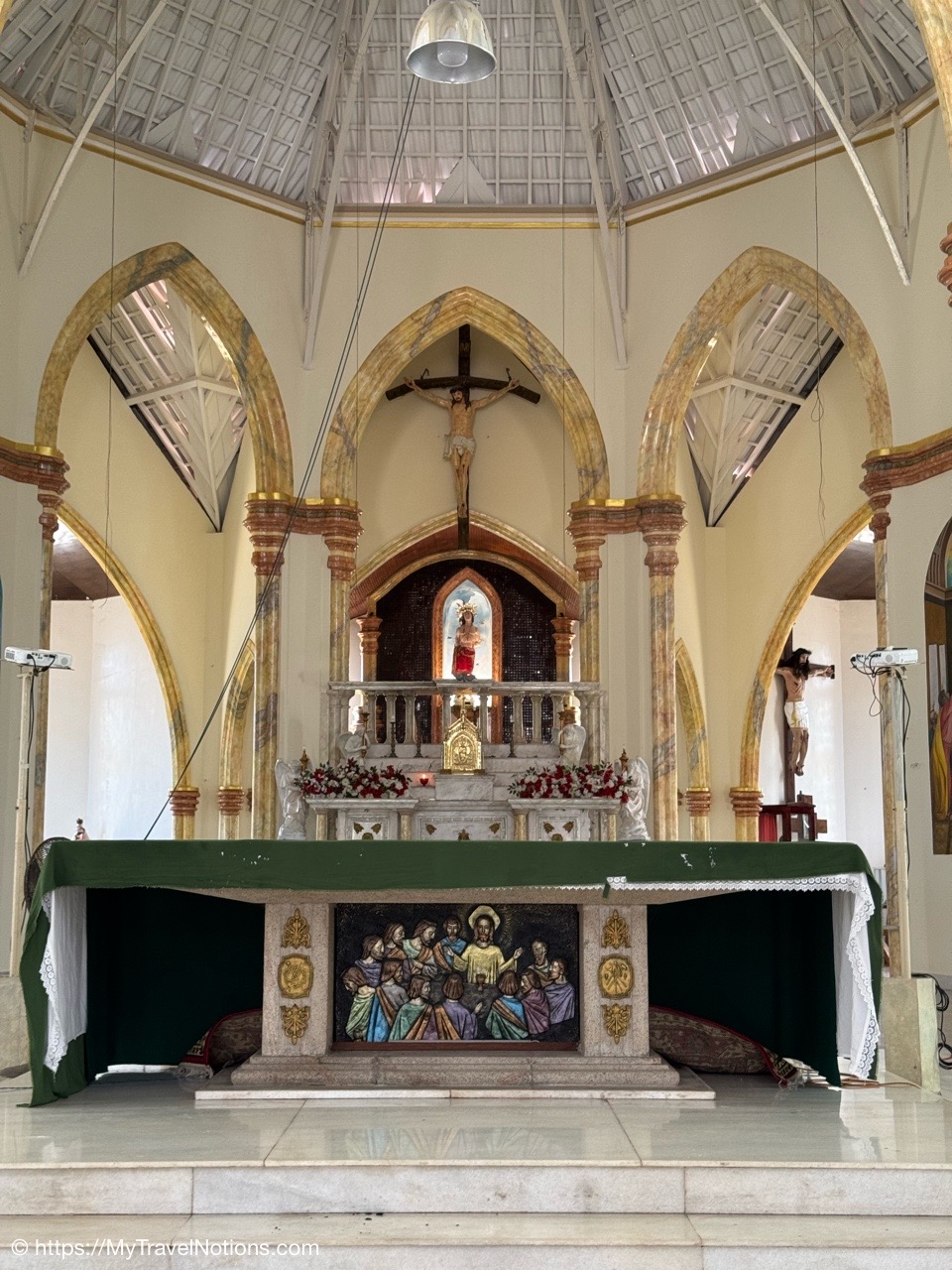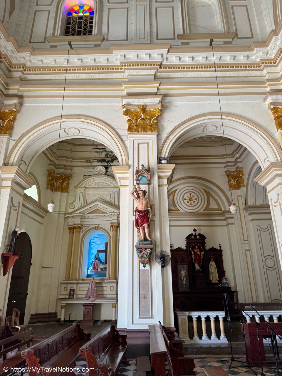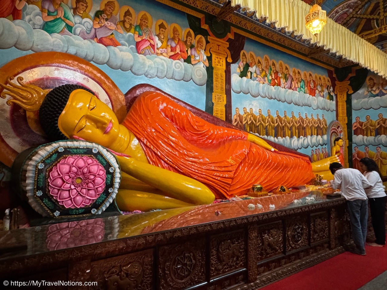 Sitting in the drivers seat of my Tuk Tuk city tour transportation with my guide and driver, Ricky from Capital Tour, taking the photo during our stop at the Buddhist and Hindu temple of Angurukaramulla in Negombo. (March 2, 2025)Getting to our first stop of the tour, St. Mary’s Church in Negombo. (March 2, 2025)St. Mary’s Church , is considered to be one of the largest Catholic Churches in Sri Lanka. Construction began in 1874 and completed, after a long gap in 1922. (March 2, 2025)Inside St. Mary’s Church in Negombo which features a ceiling of paintings, sculptures of the Stations of the Cross and various statues of saints along its columns. (March 2, 2025)The altar inside St. Mary’s Church in Negombo. (March 2, 2025)The altar inside St. Mary’s Church in Negombo. (March 2, 2025)One of the sculptures of the Stations of the Cross, ‘Simon of Cyrene helps Jesus to carry his Cross’ on the columns inside St. Mary’s Church in Negombo. (March 2, 2025)The ceiling painting inside St. Mary’s Church in Negombo. (March 2, 2025)The ceiling painting inside St. Mary’s Church in Negombo. (March 2, 2025)The side aisle inside St. Mary’s Church in Negombo. (March 2, 2025)A side view of St. Mary’s Church in Negombo. (March 2, 2025)Views around Negombo from my city Tuk Tuk tour. (March 2, 2025)Views around Negombo from my city Tuk Tuk tour. (March 2, 2025)Views around Negombo from my city Tuk Tuk tour. (March 2, 2025)Views around Negombo from my city Tuk Tuk tour. (March 2, 2025)Entering the Negombo Fish Market area which of course smells very fishy. (March 2, 2025)The Negombo Fish Market is interesting because the fresh catch and drying takes place right on the beach. Negombo made its start as a fishing community and continue to do so today. (March 2, 2025)Fish drying in the sun along the Negombo Beach. After sitting in a salt bath for several days, the fish can be laid out to dry for more than a week. (March 2, 2025)Fish drying in the sun along the Negombo Beach. After sitting in a salt bath for several days, the fish can be laid out to dry for more than a week. (March 2, 2025)Fish drying in the sun along the Negombo Beach. After sitting in a salt bath for several days, the fish can be laid out to dry for more than a week. (March 2, 2025)Fish drying in the sun along the Negombo Beach. After sitting in a salt bath for several days, the fish can be laid out to dry for more than a week. (March 2, 2025)This woman is laying out fish to dry that’s been gutted near the Fish Market by Negombo Beach. (March 2, 2025)The vendor stalls at the Negombo Central Fish Market, which are closed on Sundays. (March 2, 2025)The vendor stalls at the Negombo Central Fish Market, which are closed on Sundays. (March 2, 2025)And, even though it is Sunday, fishermen still sell their fish on a road alongside the Negombo Fish Market. (March 2, 2025)Local fishermen selling their fish at the Negombo Fish Market. (March 2, 2025)The remains of the 17th century Dutch Fort or the Negombo Fort. The original fort, though small, was built by the Portuguese. It was captured by Dutch forces in 1640. Then in 1796, the British, without opposition occupied the fort. In the late 1800s the British authorities demolished the fort and built a prison constructed from the stones of the fort. (March 2, 2025)The remains of a tower at the Dutch Fort in Negombo. (March 2, 2025)The prison built in the late 1800s by the British who tore down the Dutch Fort and used its stones to build this prison. (March 2, 2025)My Tuk Tuk driver and guide, Ricky and me, for my Negombo city tour as we’re standing under the tunnel inside the remains of the Dutch Fort. (March 2, 2025)The Negombo Lagoon by St. Nicholas Road or the Munnakkara Bridge showing off the moored colorful, traditional fishing boats or canoes. (March 2, 2025)The Negombo Lagoon by St. Nicholas Road or the Munnakkara Bridge showing off the moored colorful, traditional fishing boats or canoes. (March 2, 2025)A close-up of the fishermen’s colorful and traditional fishing boats and canoes along the Negombo Lagoon. This Dutch-era Hamilton Canal leads south to Colombo, Sri Lanka’s capital city. (March 2, 2025)Outdoor Catholic prayer shrines can be found intermittently along the streets in Negombo. (March 2, 2025)The Angurukaramulla Temple complex in Negombo. (March 2, 2025)The Angurukaramulla Temple in Negombo is known for its famous exterior close to 20 feet or 6 meters statue of Lord Buddha visible from afar is considered as a symbol of serenity and enlightenment that watches over the grounds. And, at its base lies a dragon’s head, which looks more like a lion’s head, with its mouth open wide is the entryway to the Buduge (Shrine room). This entryway is believed to protect the temple from evil spirits. The temple was constructed during the reign of King Devanampiyatissa, one of Sri Lanka’s early rulers, who reigned in the 3rd century BCE. This is a place of worship for both Hindus and Buddhists. (March 2, 2025)The Buddhist and Hindu Angurukaramulla Temple in Negombo is known for its famous exterior close to 20 feet or 6 meters statue of Lord Buddha visible from afar is considered as a symbol of serenity and enlightenment that watches over the grounds. And, at its base lies a dragon’s head, which looks more like a lion’s head, with its mouth open wide is the entryway to the Buduge (Shrine room). (March 2, 2025)Inside the Shrine room of the Angurukaramulla Temple in Negombo. (March 2, 2025)The Buddha taking one last look at his beloved wife and new born son before leaving the his royal life in search of eternal peace of the mind along the mural painted wall inside the Shrine room of the Angurukaramulla Temple in Negombo. (March 2, 2025)Inside the Shrine room hall of the Angurukaramulla Temple in Negombo. (March 2, 2025)The Buddha ascending from heaven inside the Shrine room of the Angurukaramulla Temple in Negombo. (March 2, 2025)Inside the Shrine room hall of the Anguruk