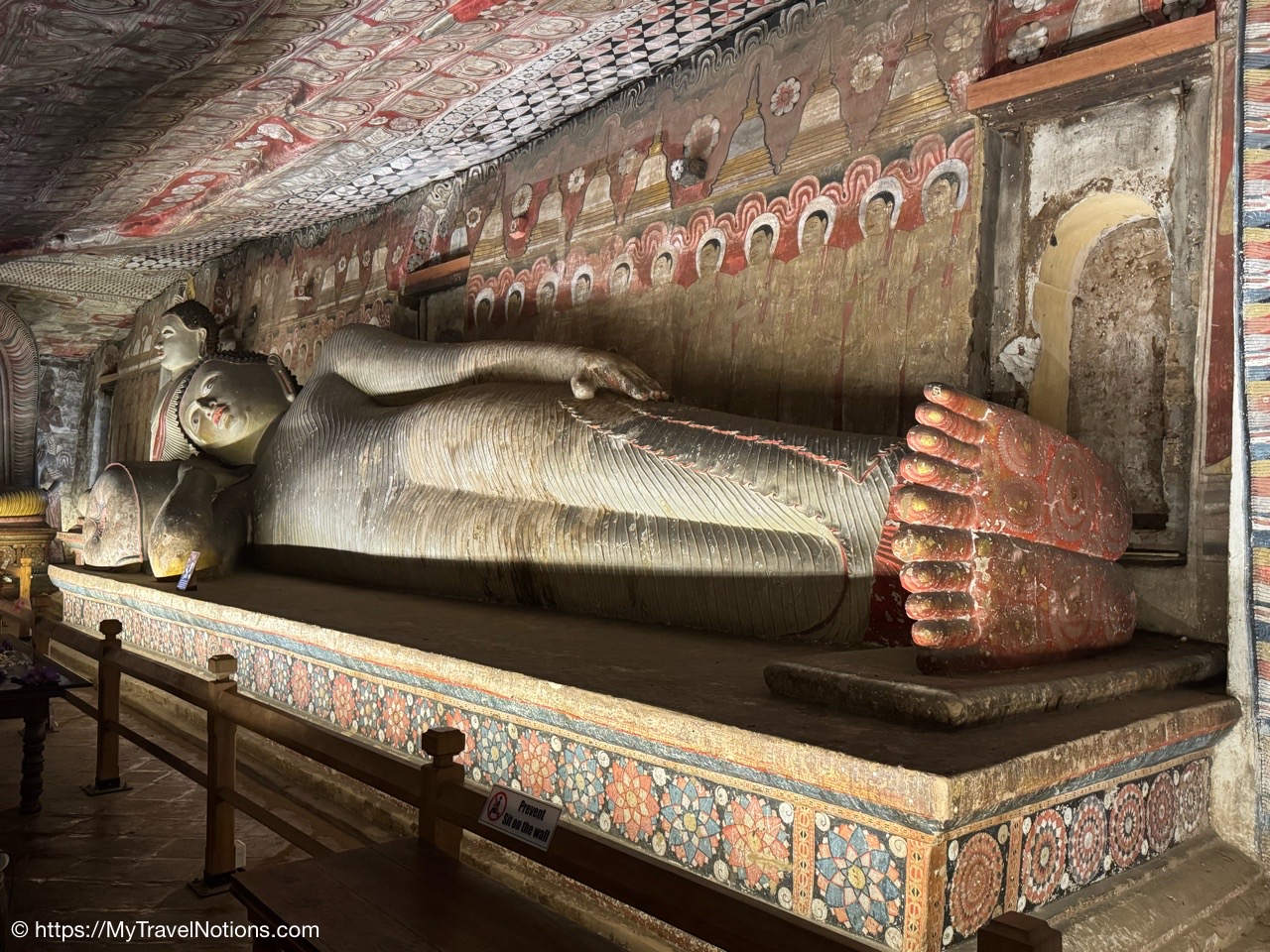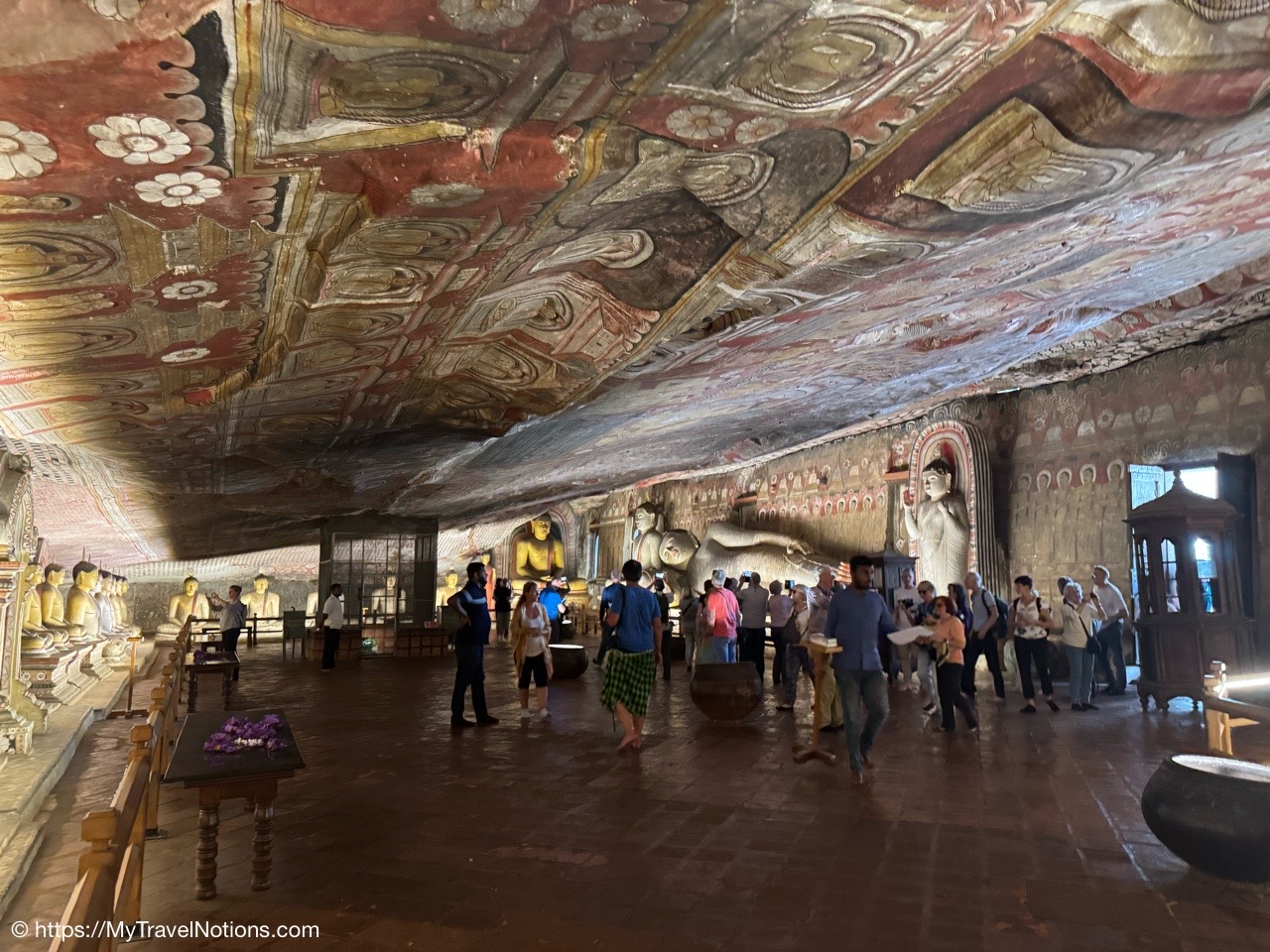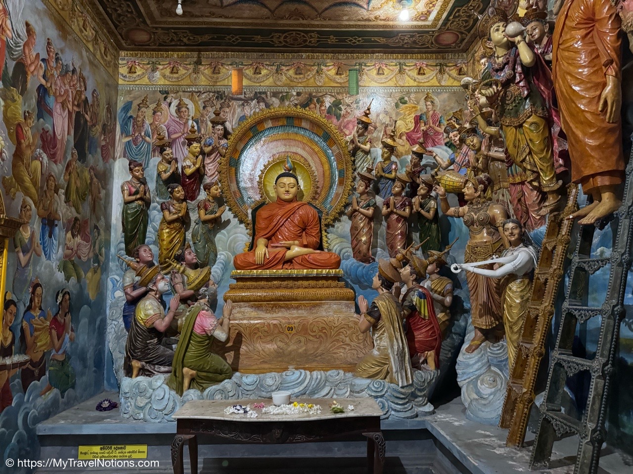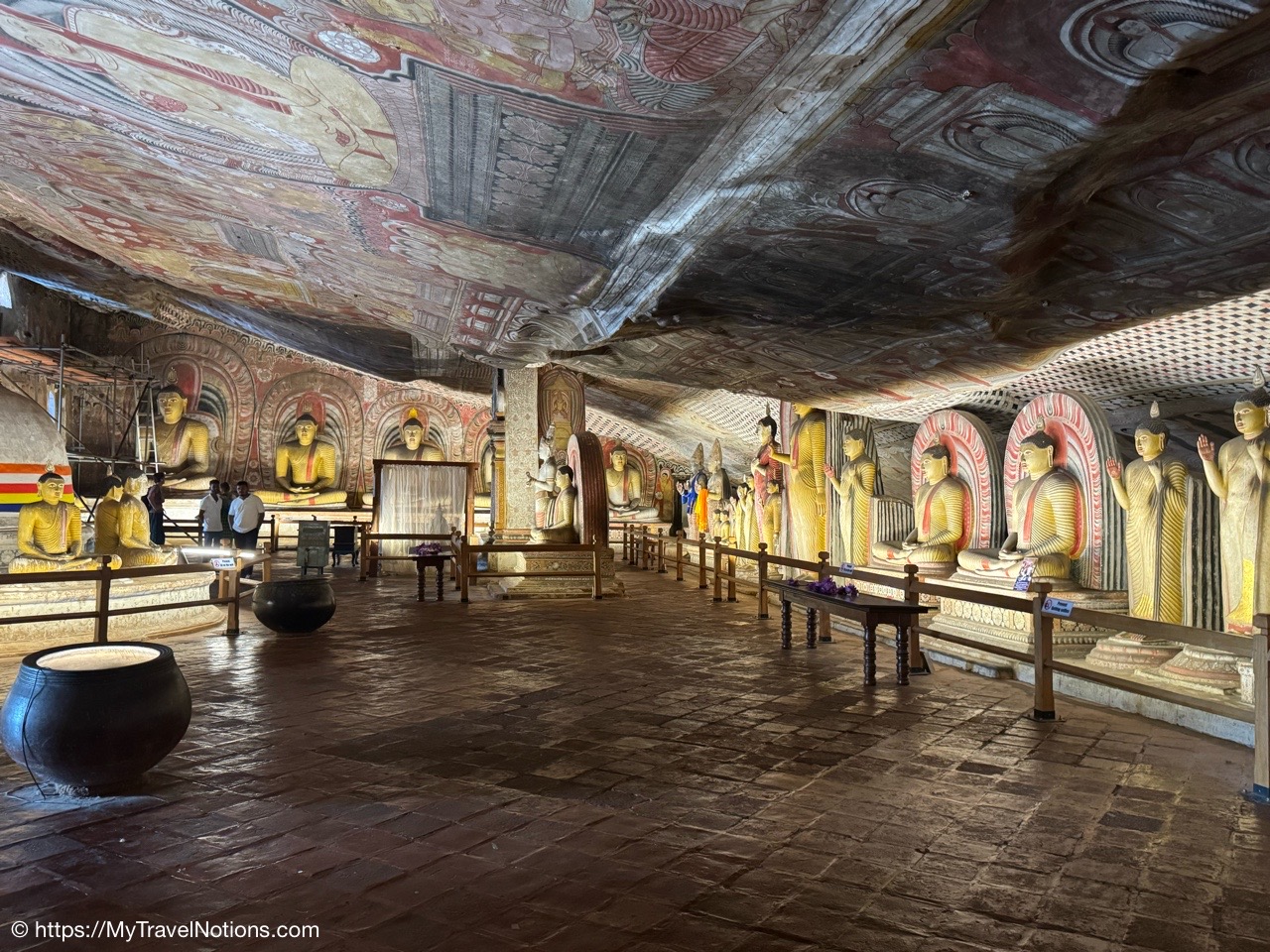 Murals cover the rough walls and sloping ceilings of the caves, which once served as dwellings for prehistoric Sri Lankans before the arrival of Buddhism. The temple, a sacred Buddhist site carved into caves as early as the 3rd century BC was once inhabited by forest-dwelling monks.