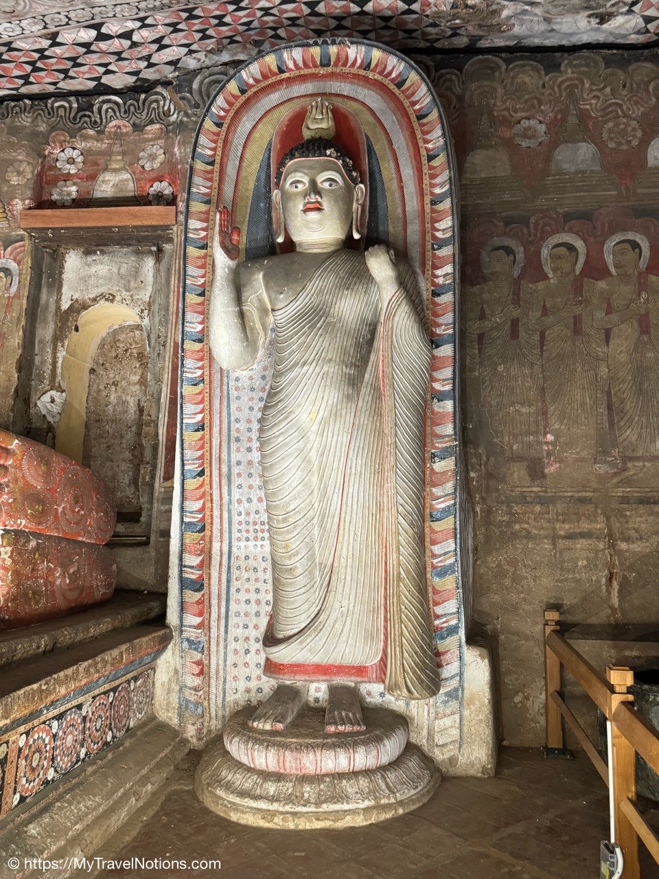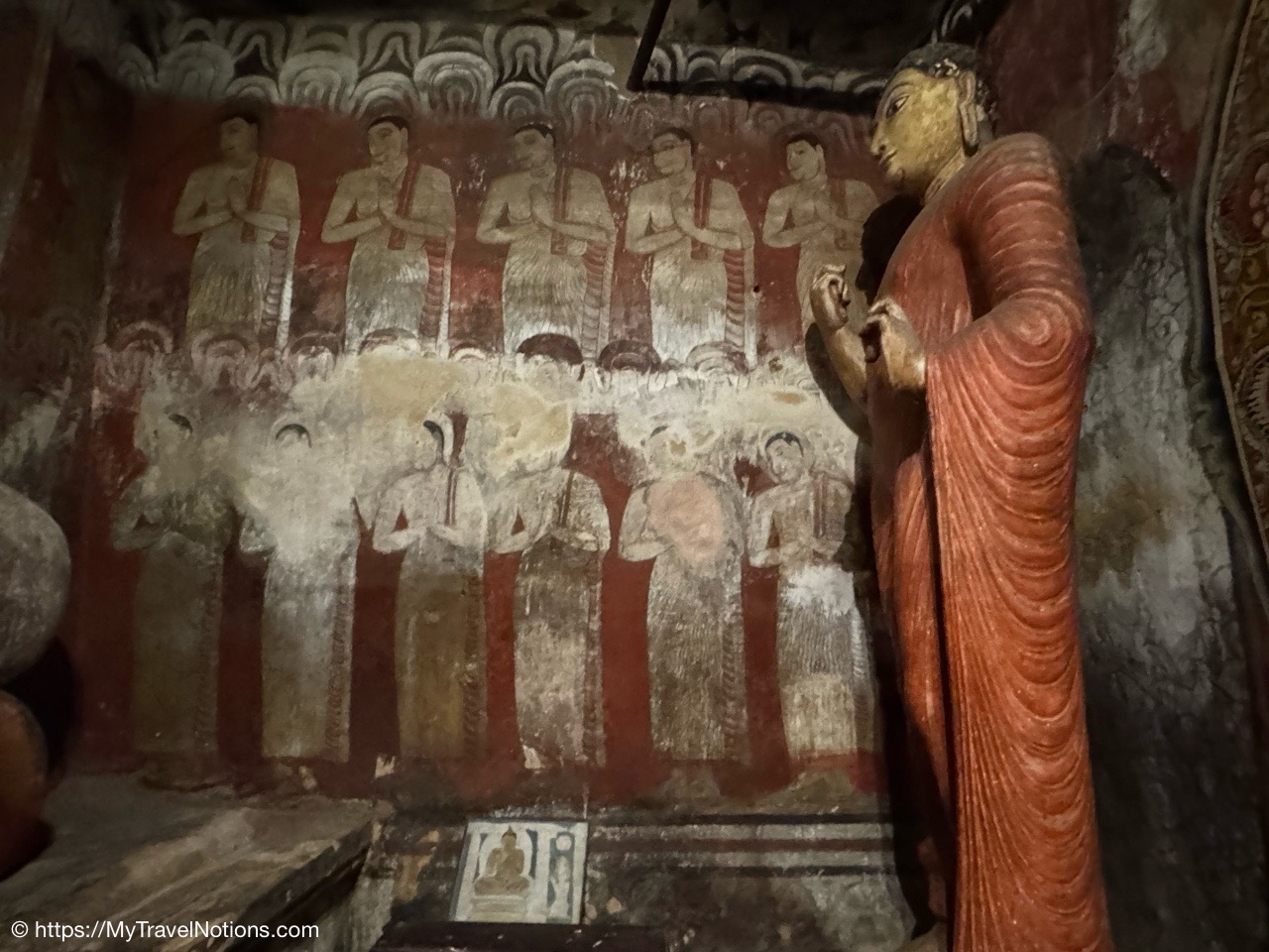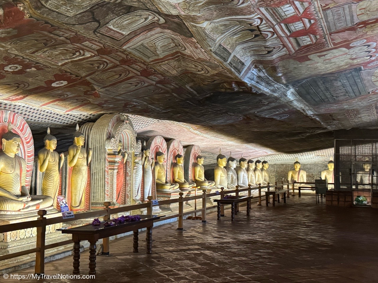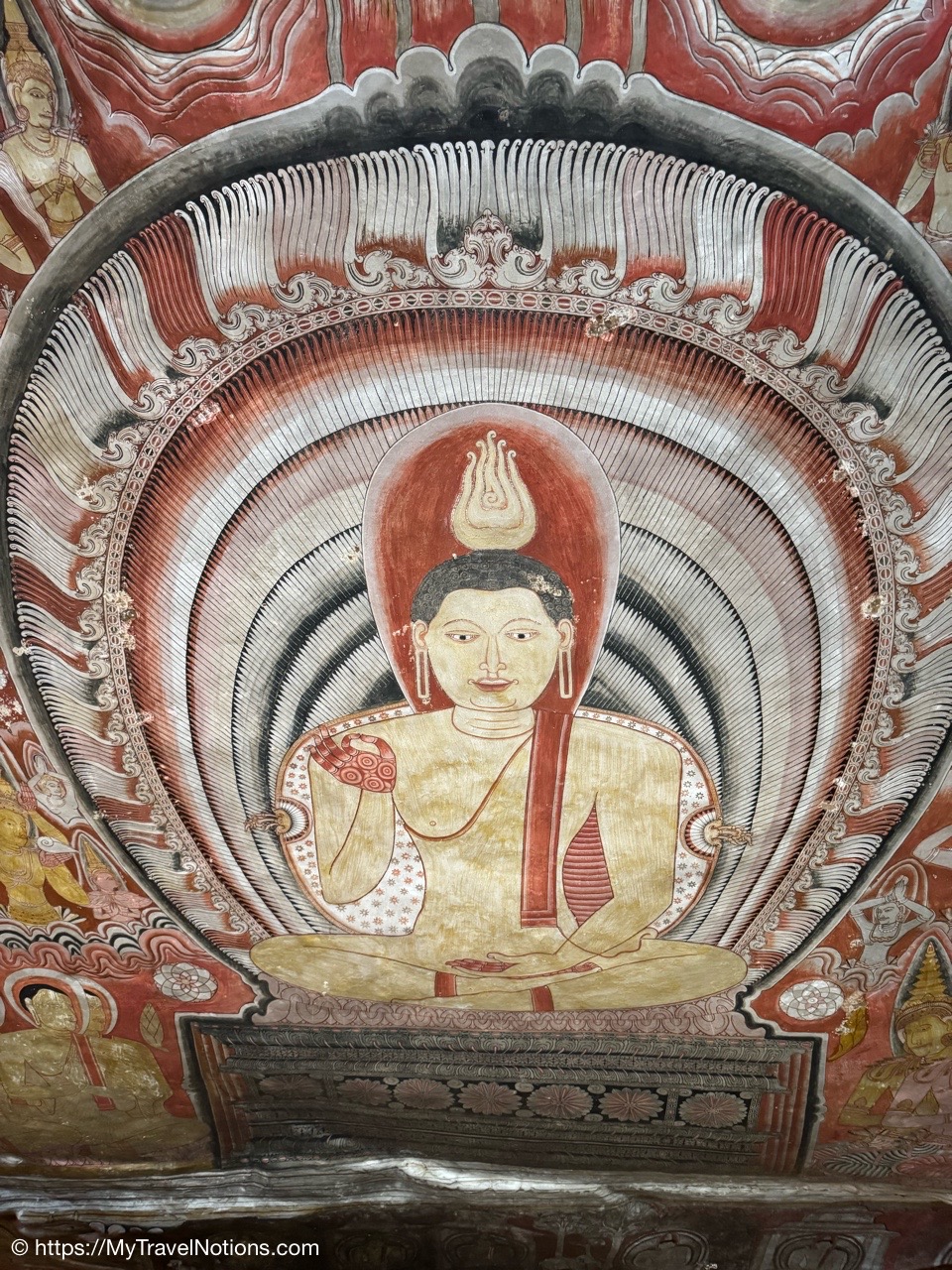Murals cover the rough walls and sloping ceilings of the caves, which once served as dwellings for prehistoric Sri Lankans before the arrival of Buddhism. The temple, a sacred Buddhist site carved into caves as early as the 3rd century BC was once inhabited by forest-dwelling monks.