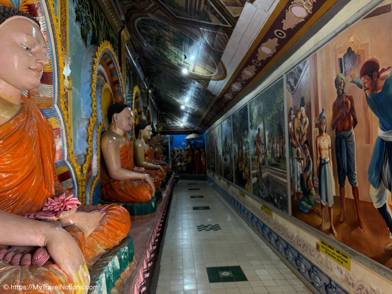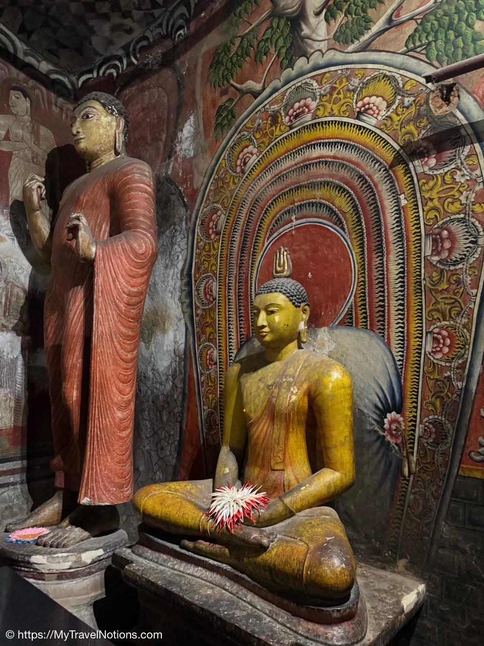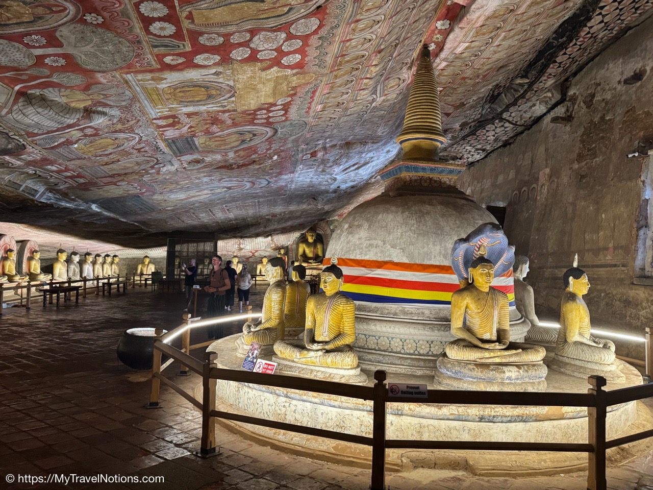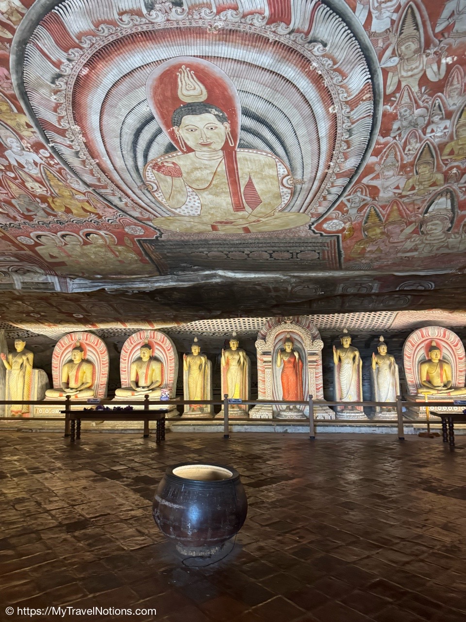Murals cover the rough walls and sloping ceilings of the caves, which once served as dwellings for prehistoric Sri Lankans before the arrival of Buddhism. The temple, a sacred Buddhist site carved into caves as early as the 3rd century BC was once inhabited by forest-dwelling monks.