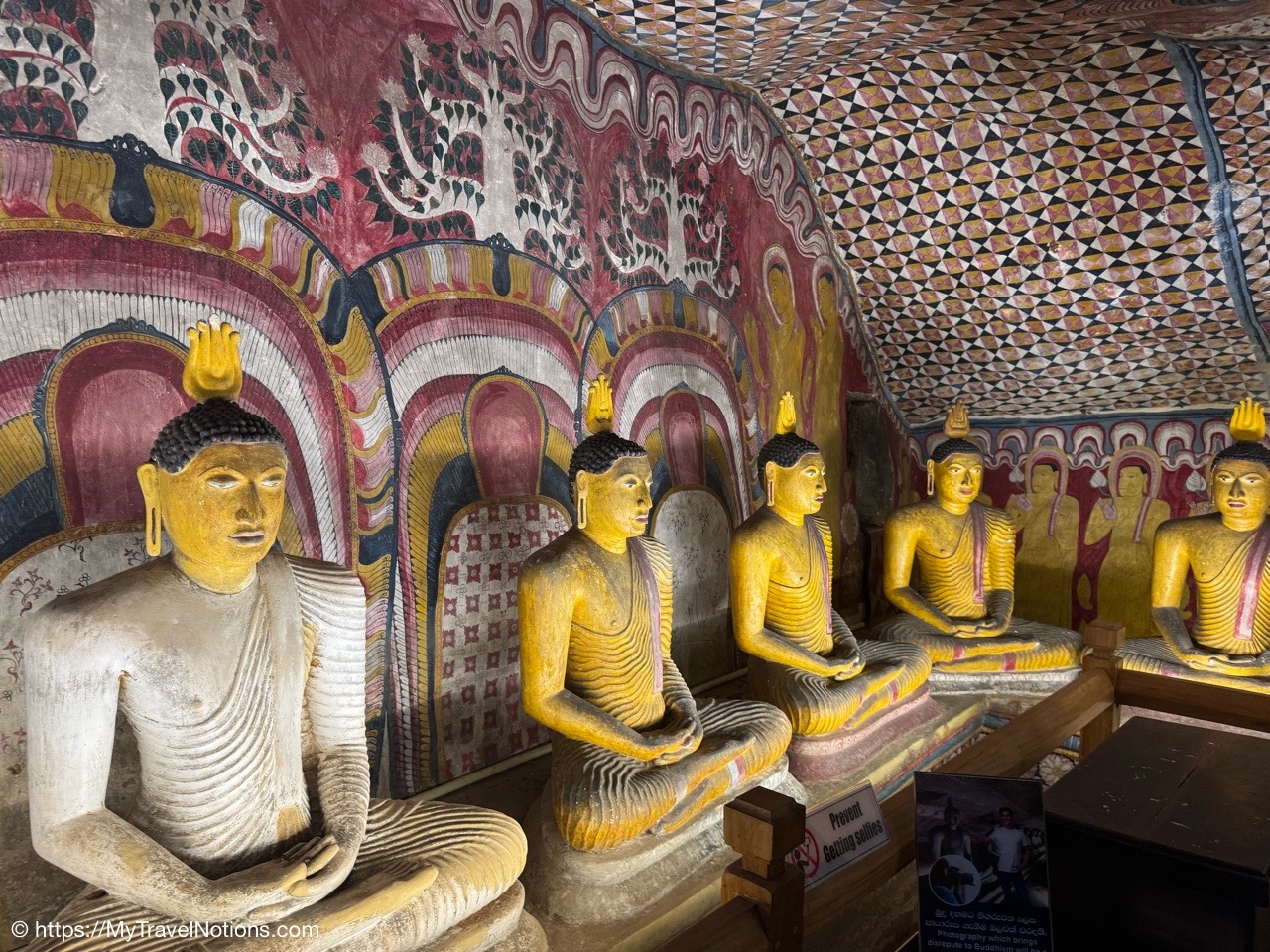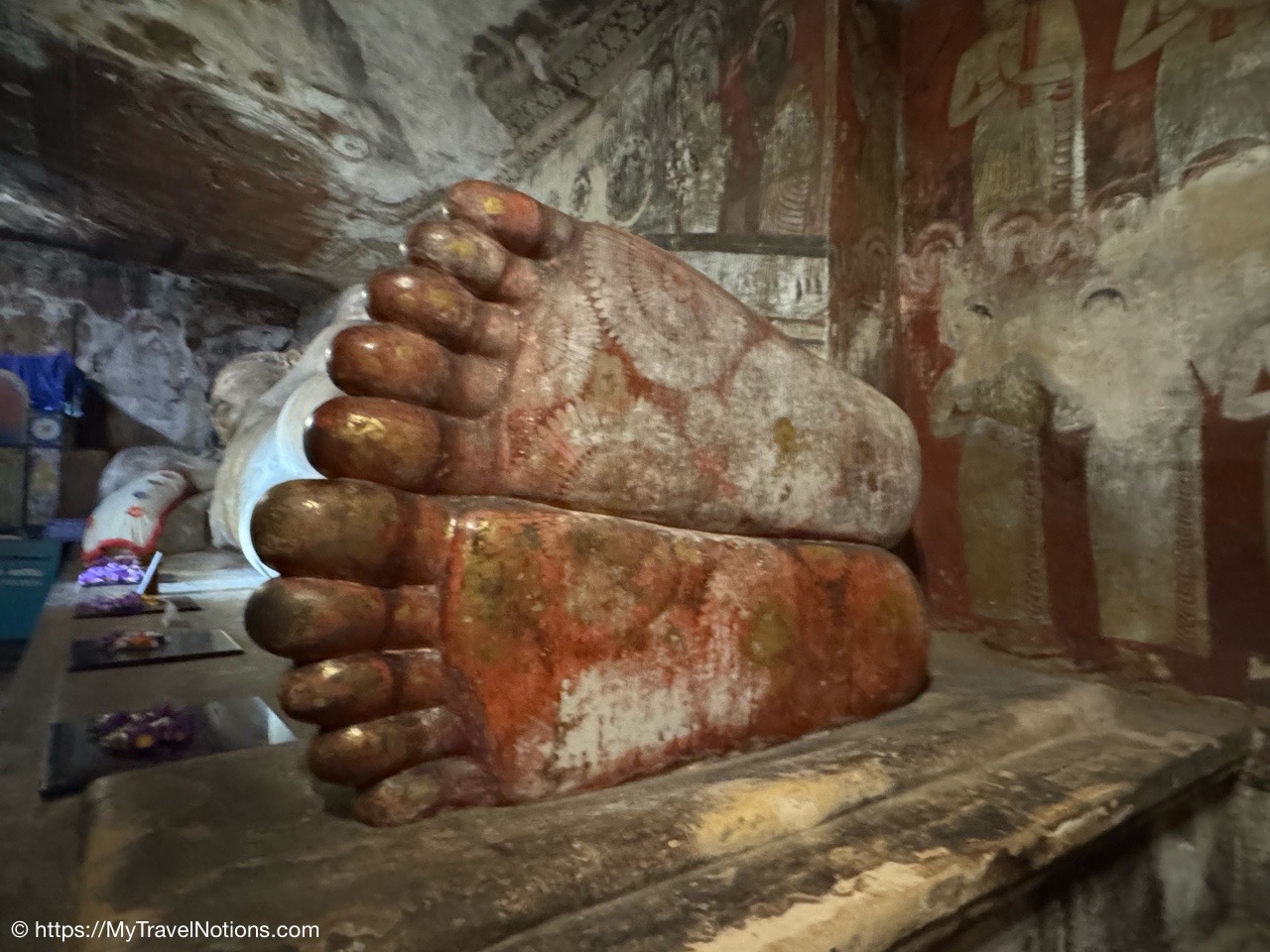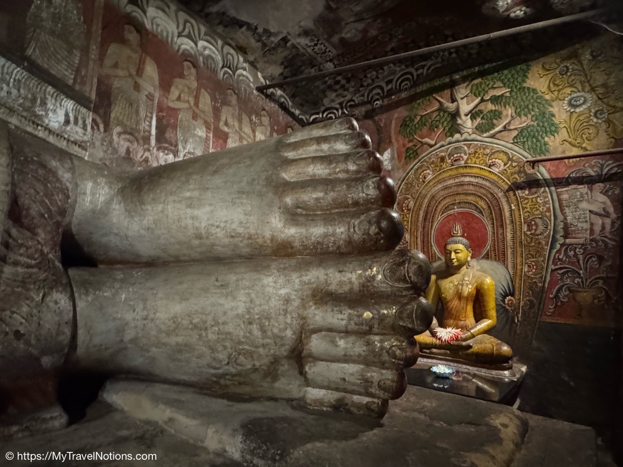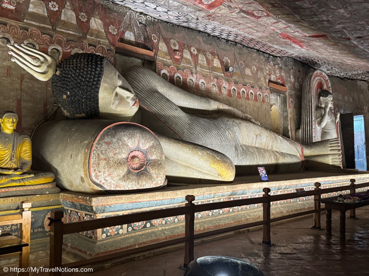 Murals cover the rough walls and sloping ceilings of the caves, which once served as dwellings for prehistoric Sri Lankans before the arrival of Buddhism. The temple, a sacred Buddhist site carved into caves as early as the 3rd century BC was once inhabited by forest-dwelling monks.