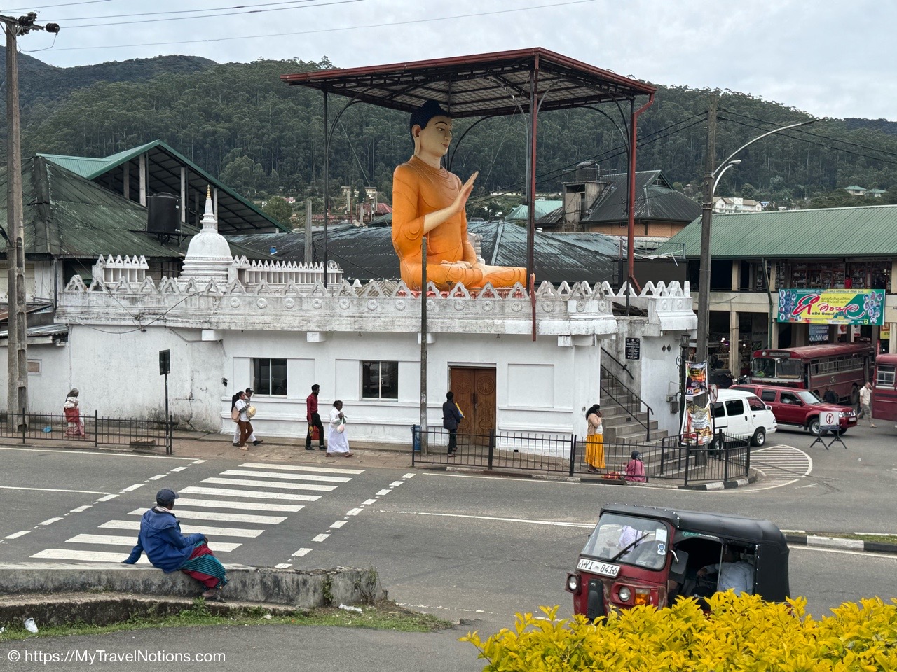 Anyway, onto Kandy. It’s a bustling city set on a plateau surrounded by mountains and a forest of greenery. And it’s also home to tea plantations. It’s also known as a sacred city and a pilgrimage destination for the Temple of the Tooth Relic (a sacred tooth of the Buddha), a UNESCO World Heritage Site.