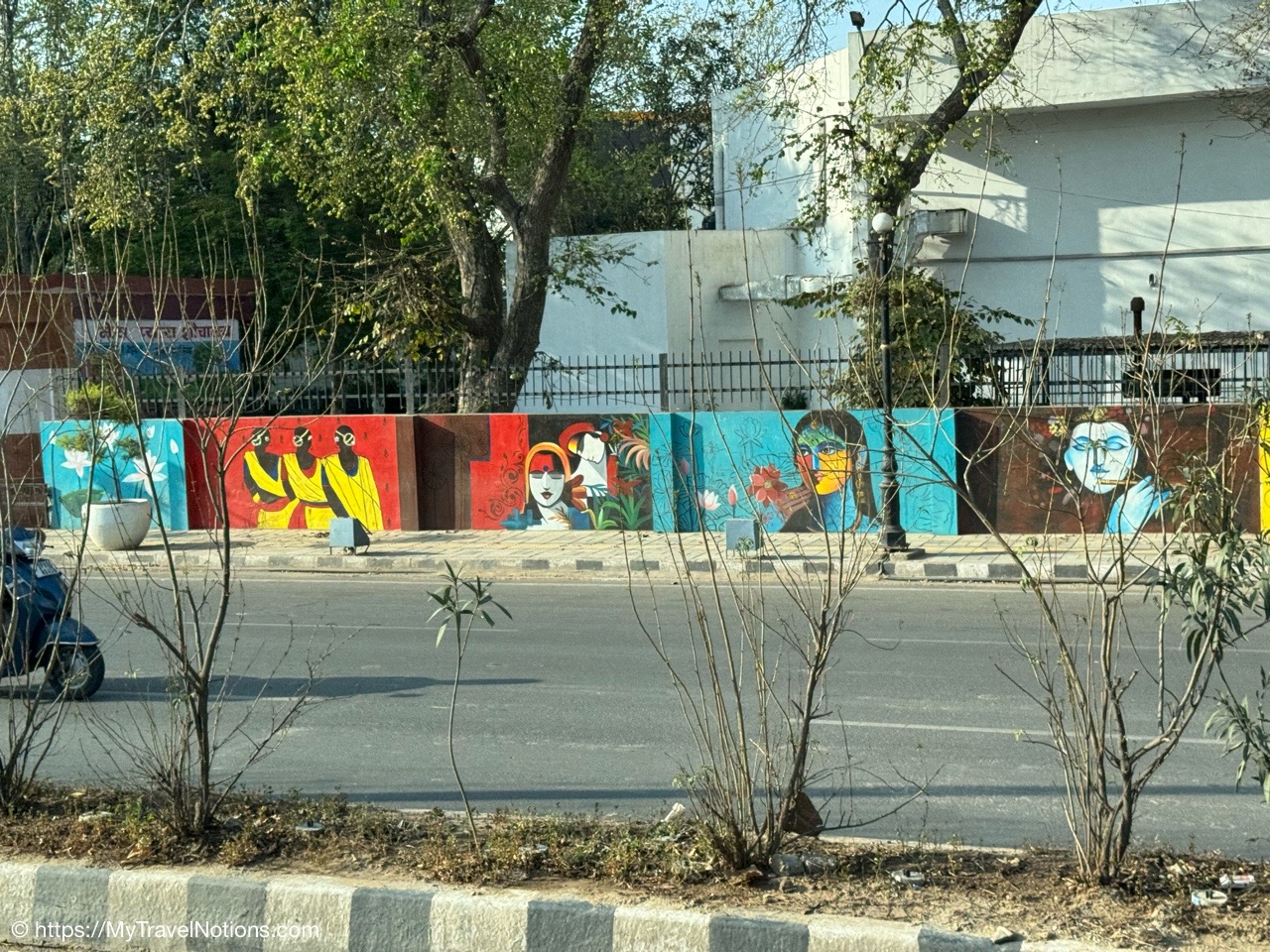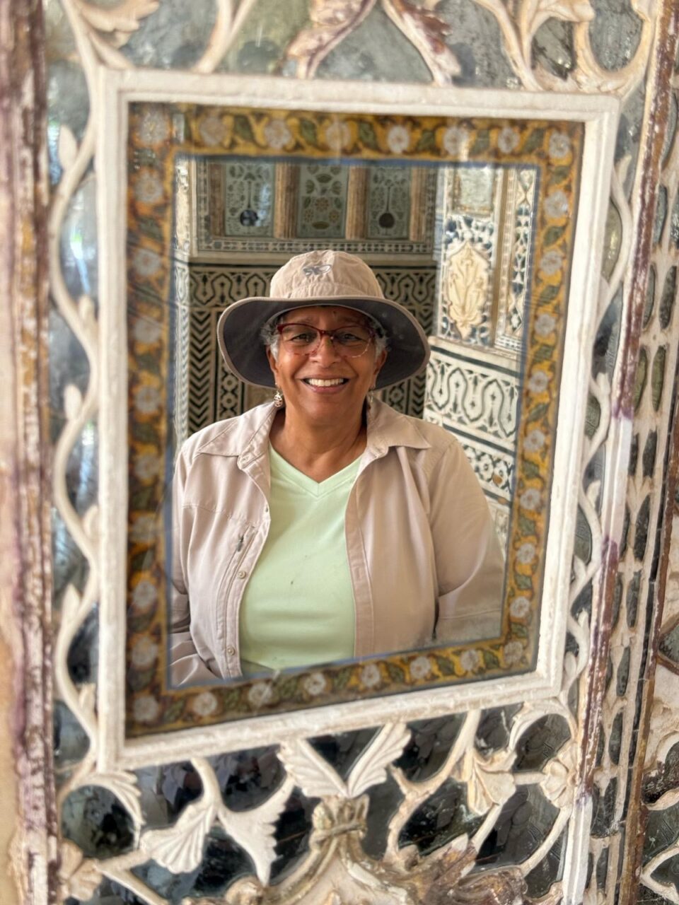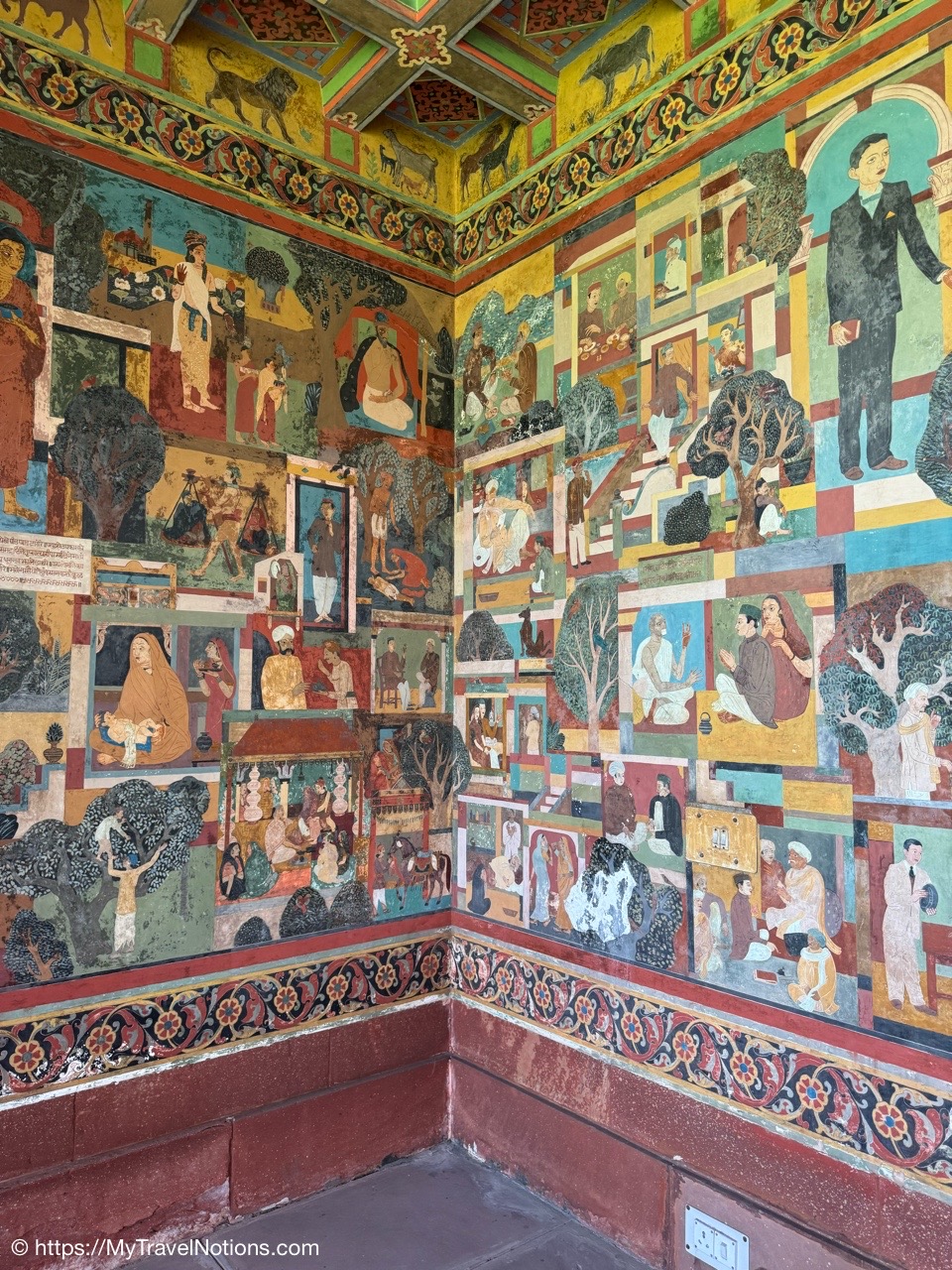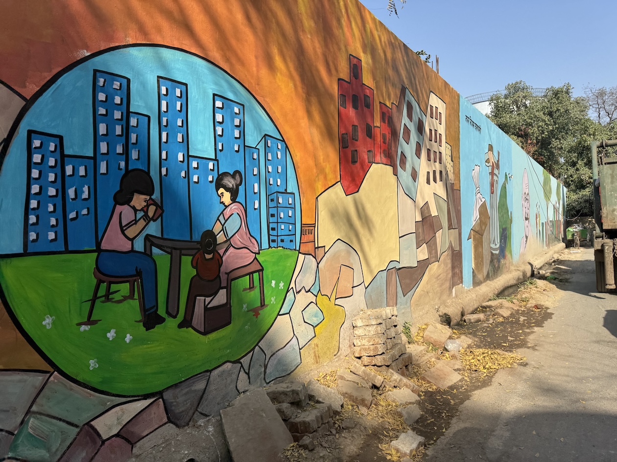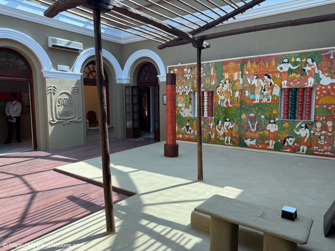 Me at the painted mural of Mahatma Gandhi’s life at the Gandhi Smriti and National Gandhi Museum in Delhi. This beautiful and peaceful estate in New Delhi is where India’s national hero lived for the final period of his life and the place where Gandhi was assassinated in 1948. (March 18, 2025)