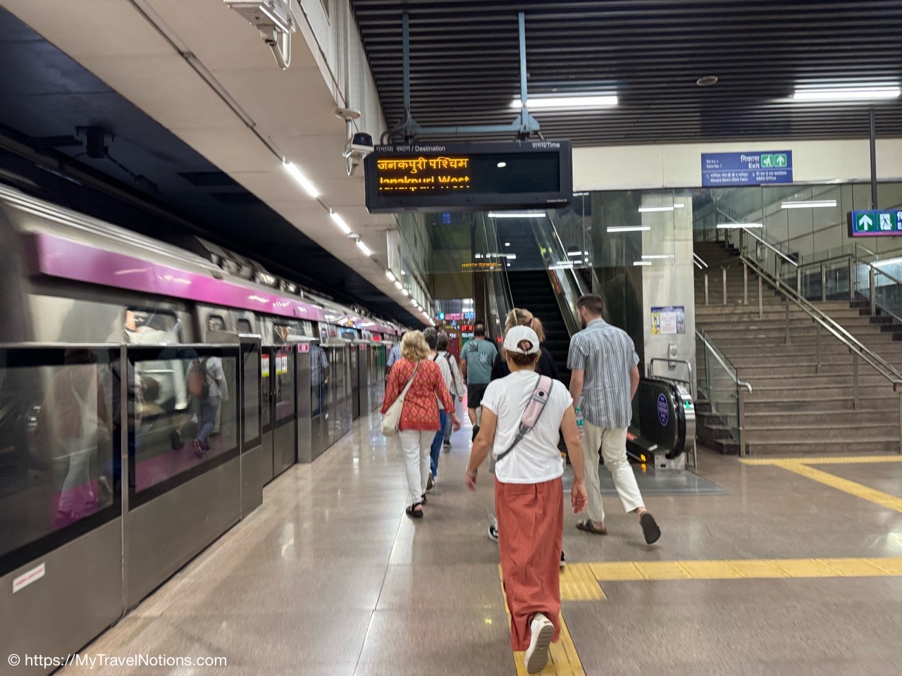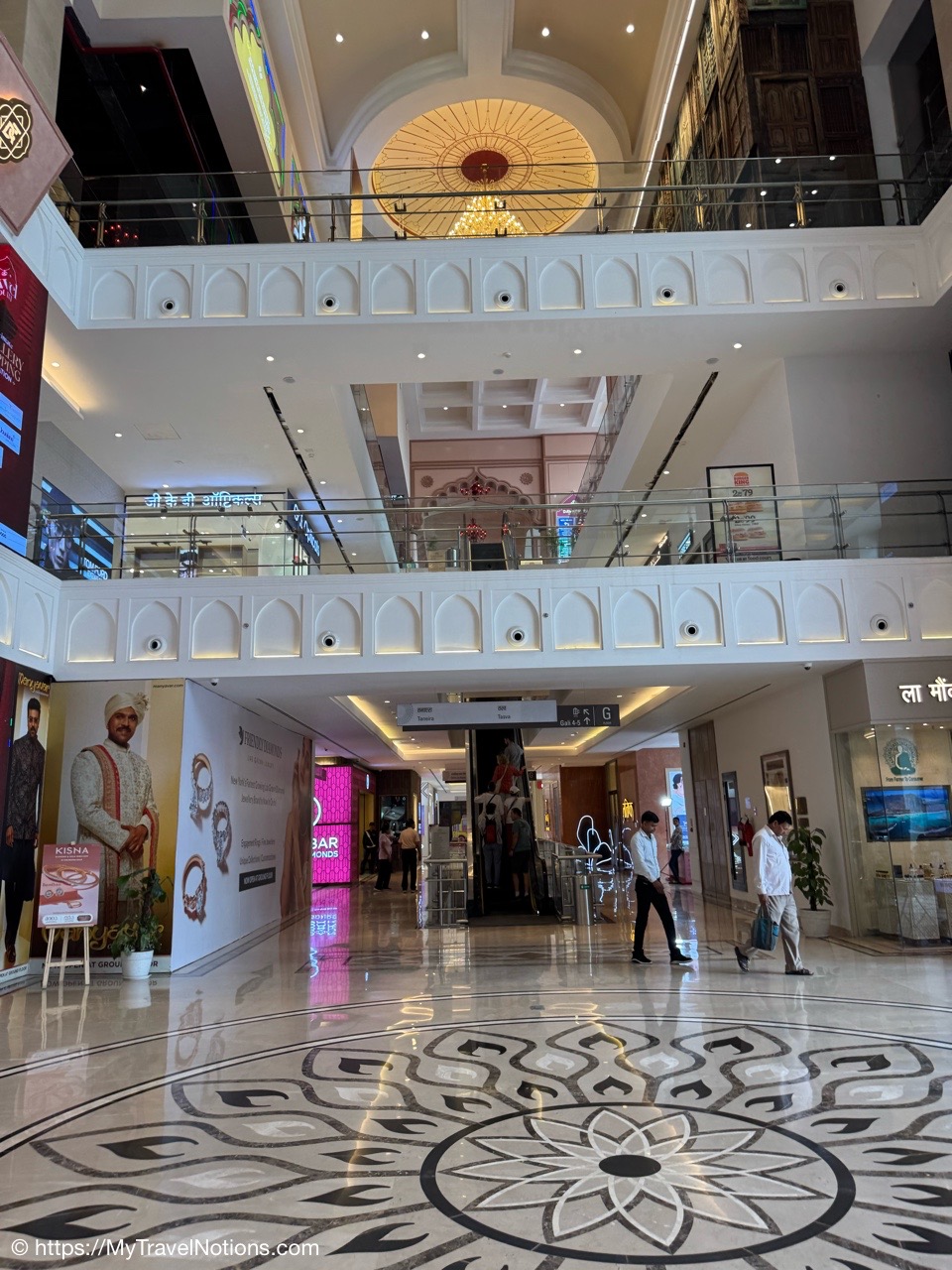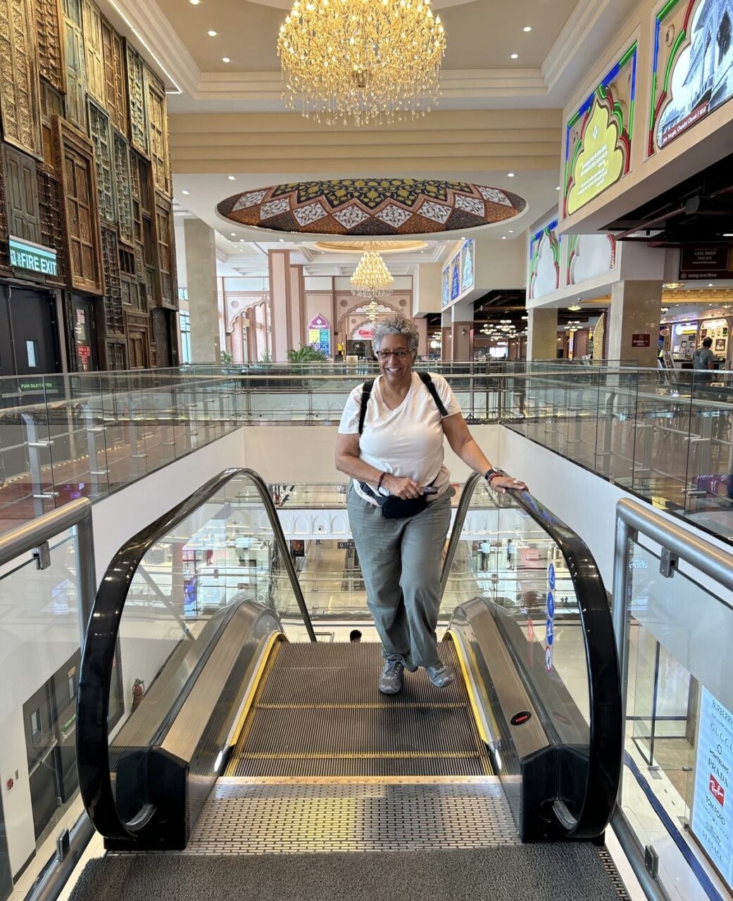 Nicola, my Intrepid travel tour companion, capturing me stepping off the escalator inside the Omaxe Mall in Chandni Chowk Old Delhi for lunch at its food court. Thanks Nicola for the photo! (March 17, 2025)