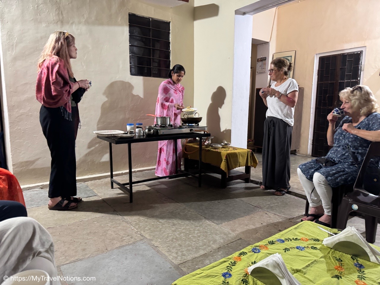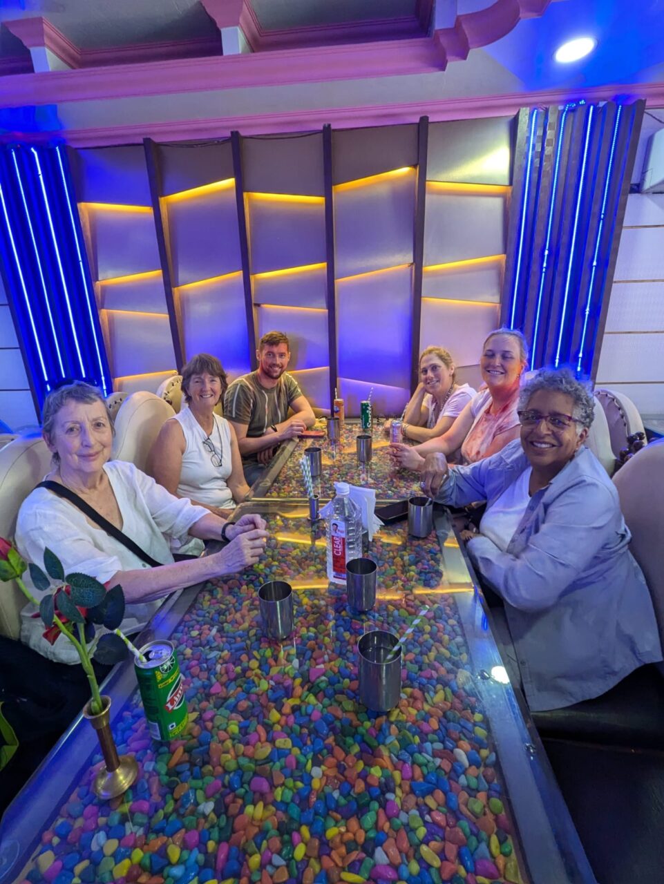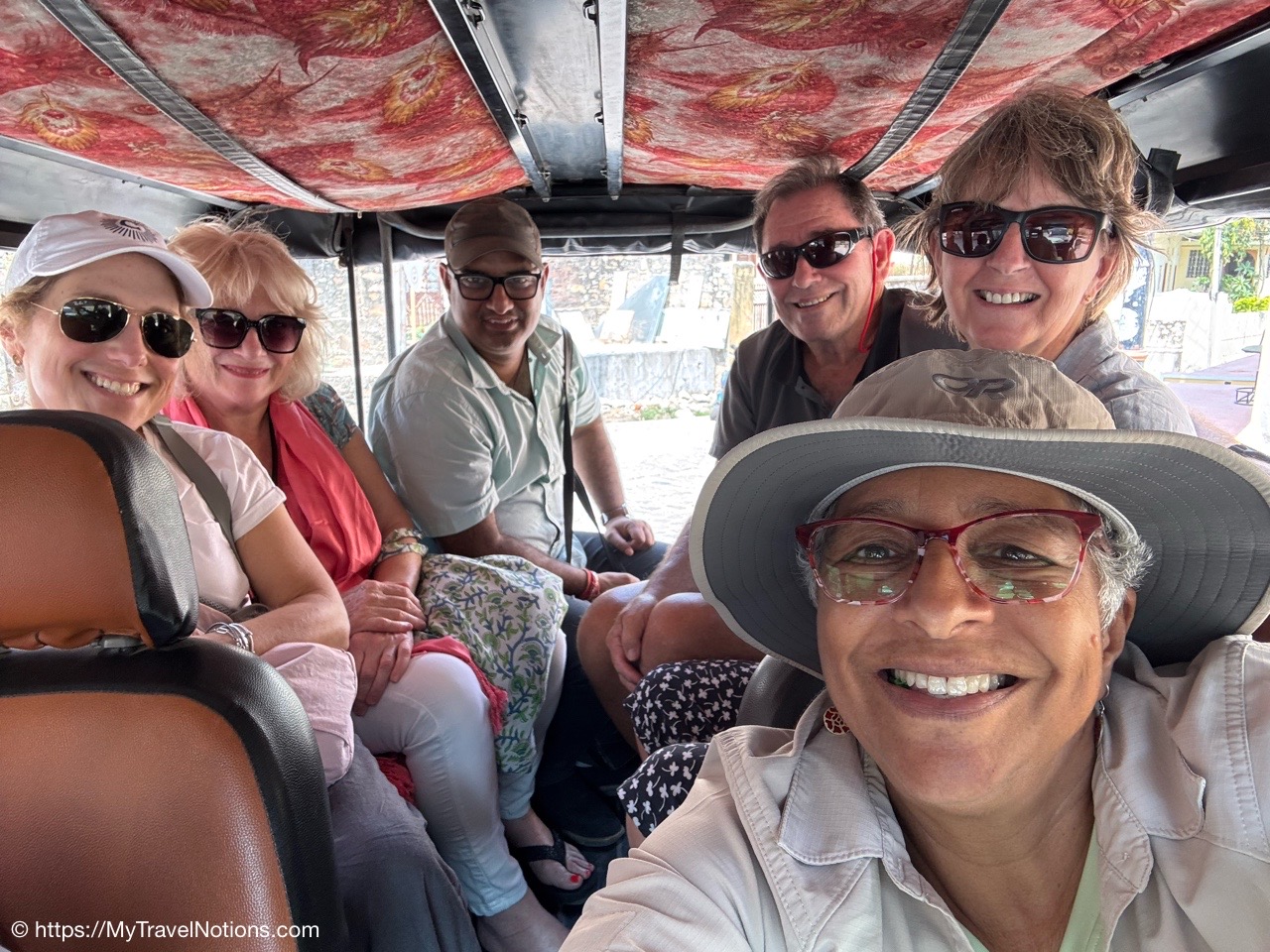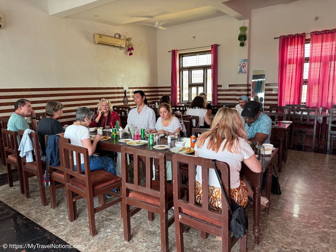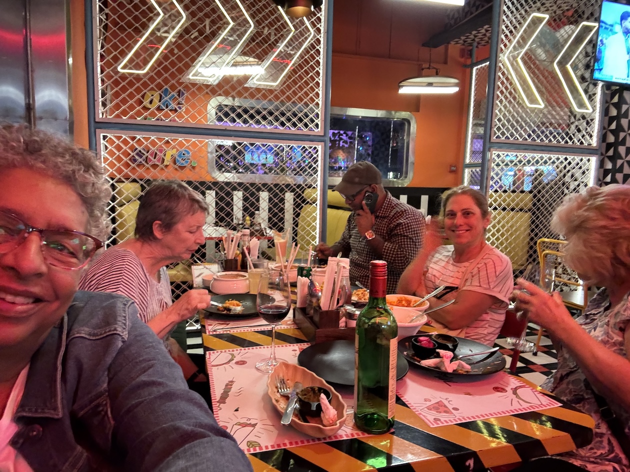 We enjoyed a group vegetarian thali lunch at a local restaurant. A thali is a popular style of serving food in India, offering a selection of dishes, sides and condiments on a single large plate. From left: Nicola, Janine, Sam, Sarah, Robyn and me. Thank you Kay for the photo. (March 11, 2025)