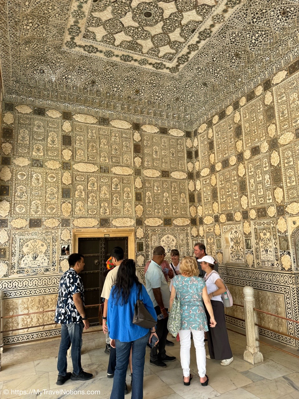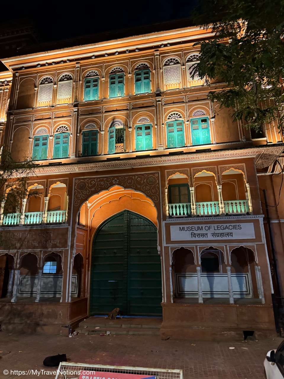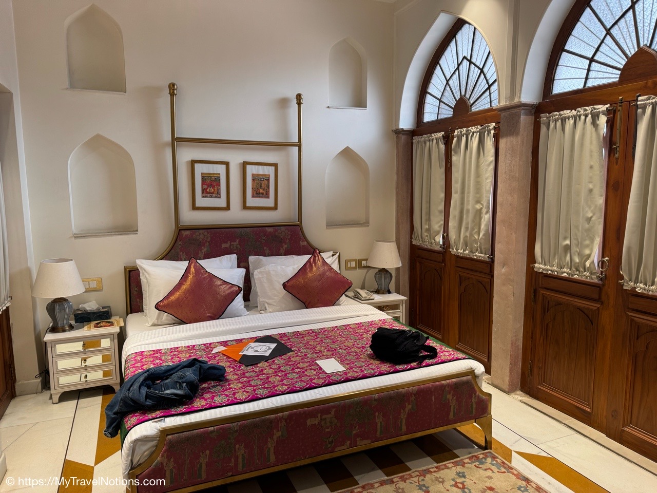 The door to my 2nd floor room at the Haveli Dharampura in the heart of crazy, hectic Old Delhi where I spent my last two nights in India. (March 18, 2025)