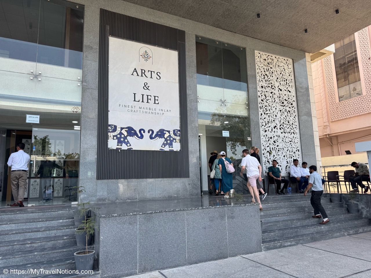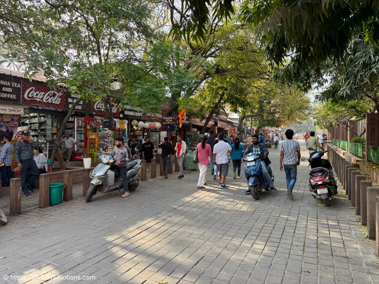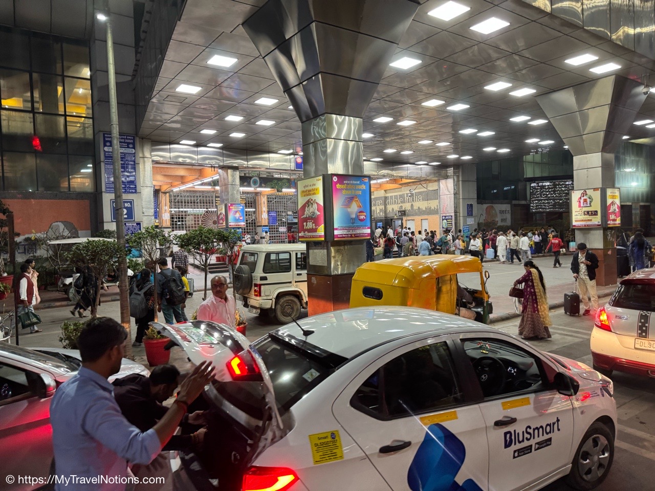 Exiting the Omaxe Mall in Chandni Chowk Old Delhi where our Intrepid tour group stopped for lunch at its food court. (March 17, 2025)