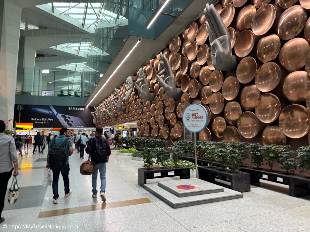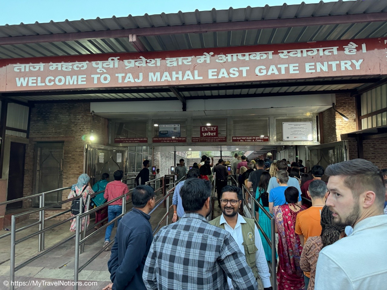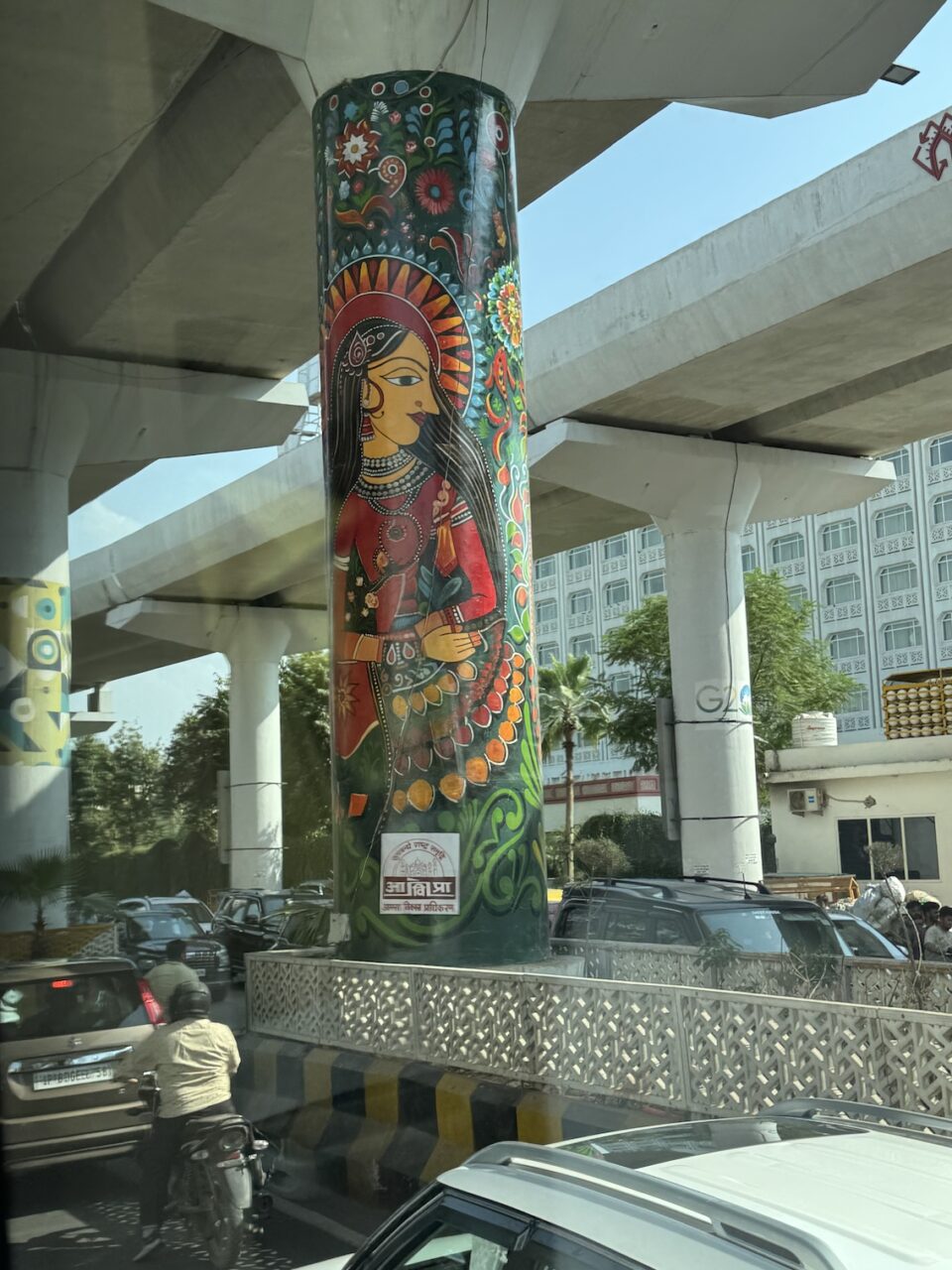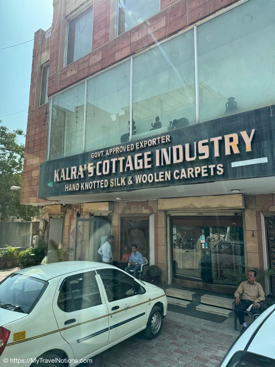 Exiting the Omaxe Mall in Chandni Chowk Old Delhi where our Intrepid tour group stopped for lunch at its food court. (March 17, 2025)