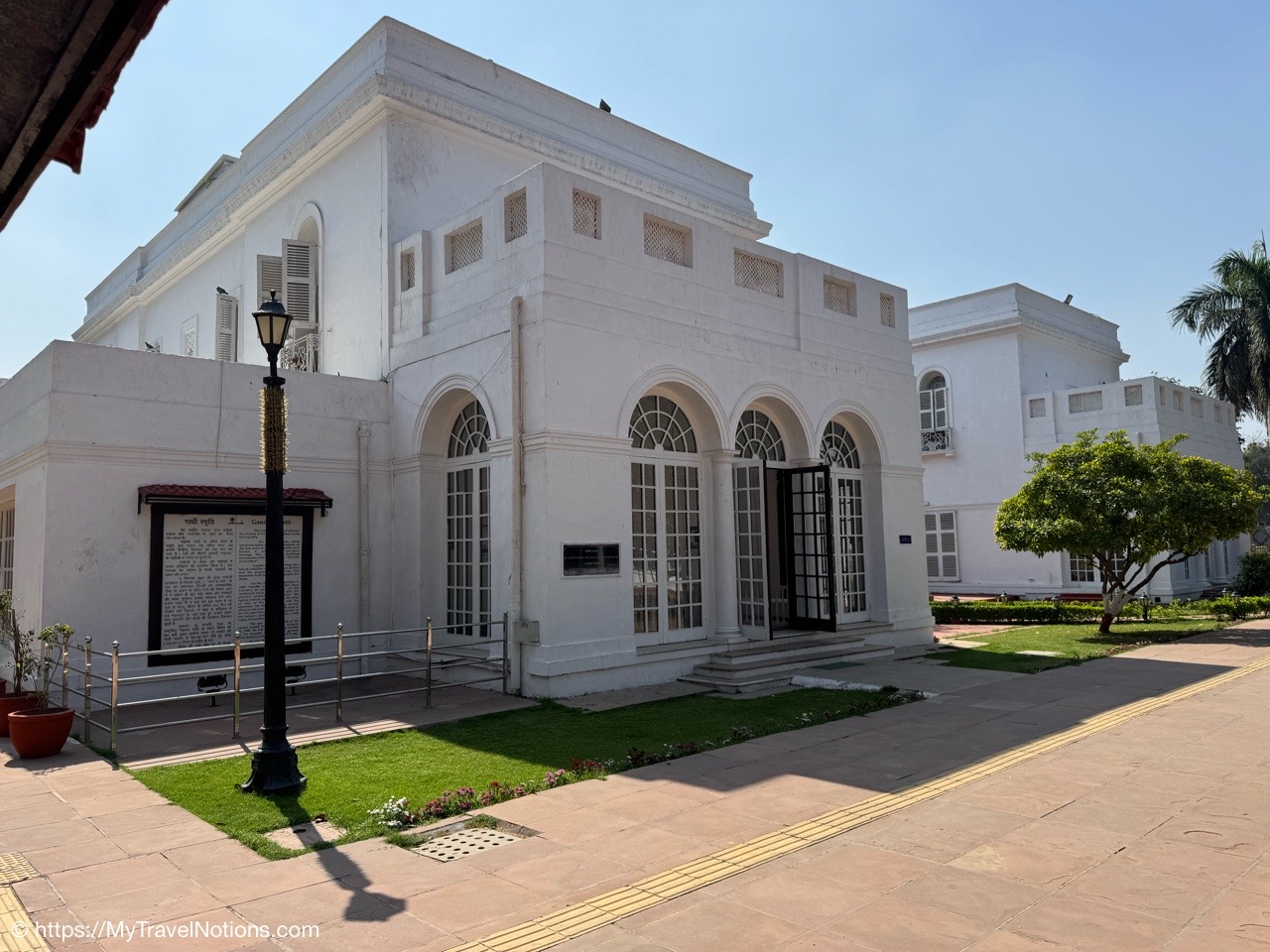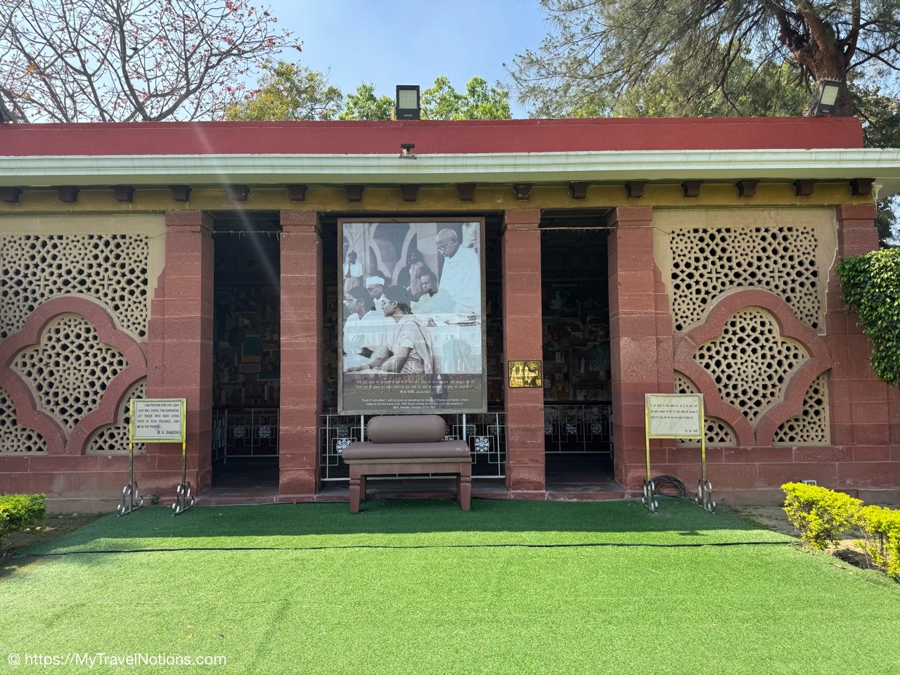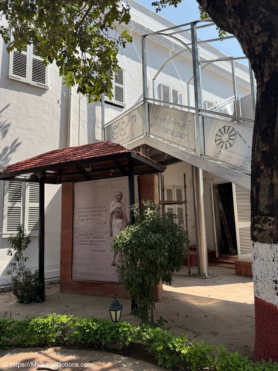 Walking into the walled estate complex of the Gandhi Smriti, the Old Birla House, that is now home to the National Gandhi Museum in New Delhi is dedicated to the life and legacy of Mahatma Gandhi. The White house to the left, is where Gandhi lived in two simple rooms that have been preserved. More of Gandhi’s after my walk through the estate. (March 18, 2025)