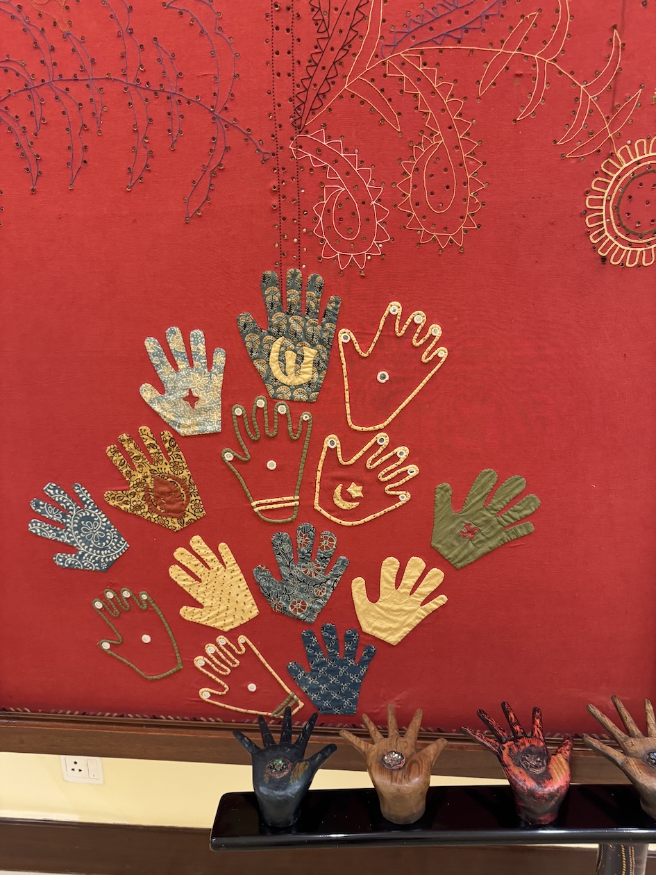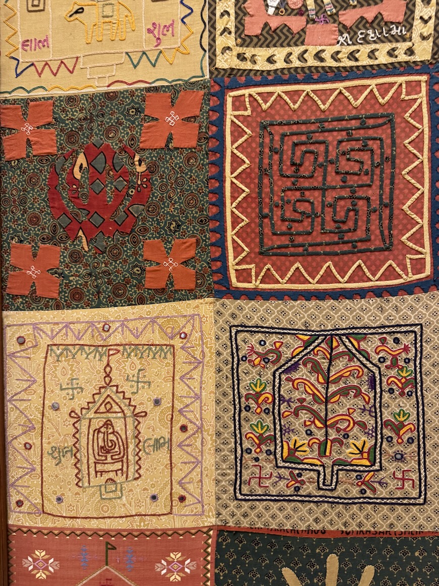 A close-up of an applique and embroidery art piece at the Eternal Gandhi Multimedia Museum located within Gandhi Smriti, which is part of the Gandhi National Museum in New Delhi. (March 18, 2025)