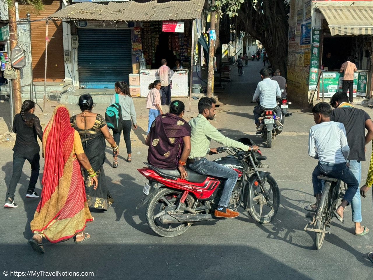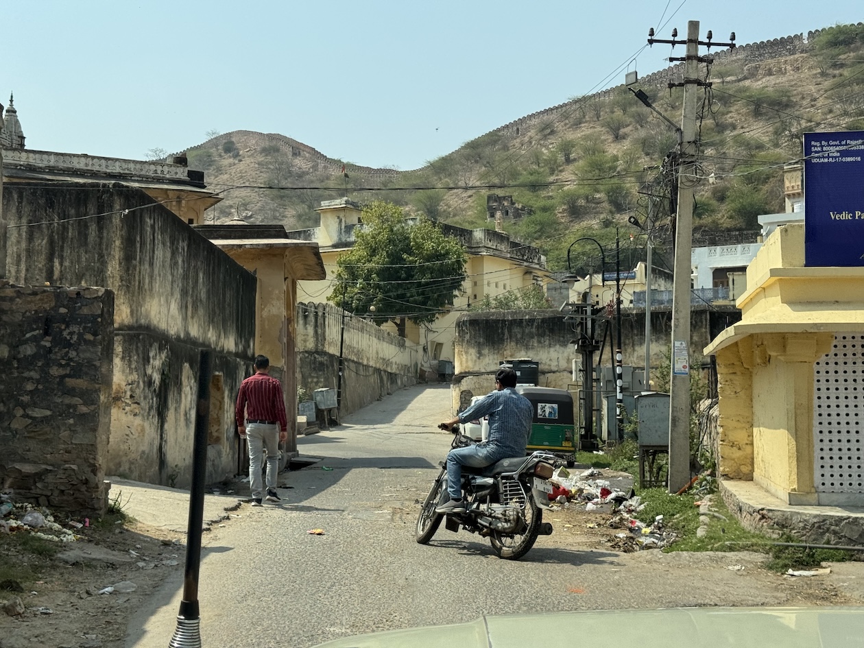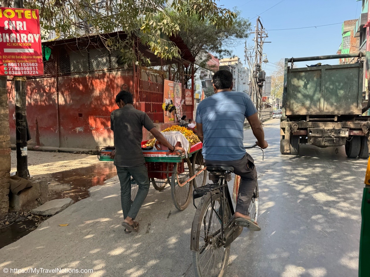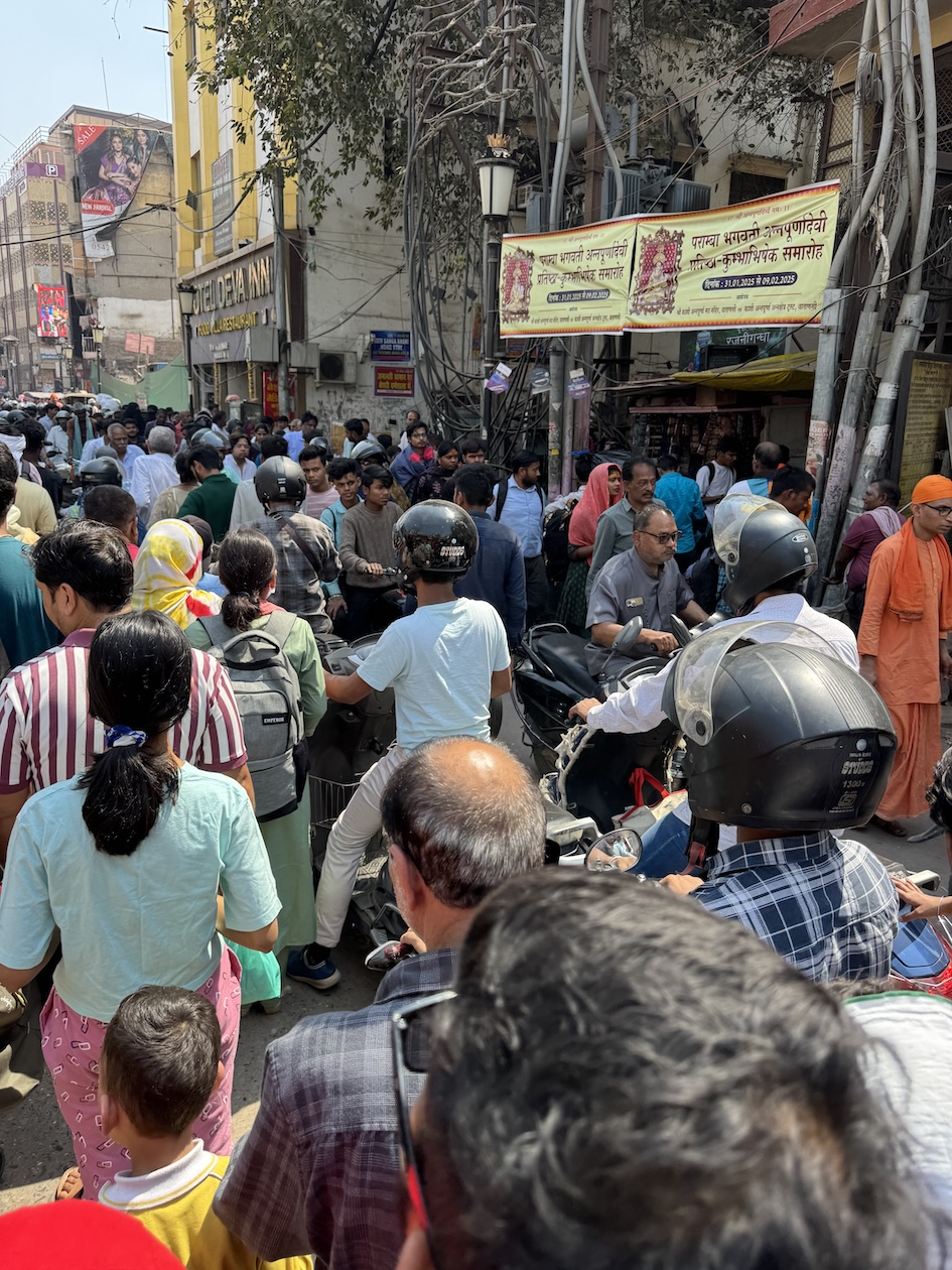 Walking along the streets of Varanasi. There are little to no sidewalks so we have to walk on the streets along with the motorcycles, Tuk Tuks, bicycles, cars, carts, people, etc. (March 11, 2025)