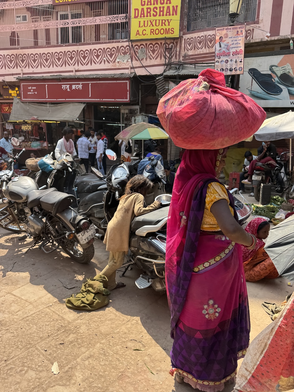 We explored the crowded laneways and alleys behind the ghats in Varanasi and to visit a silk vendor and buy clothes for the Holi Festival on the 14th. (March 11, 2025)