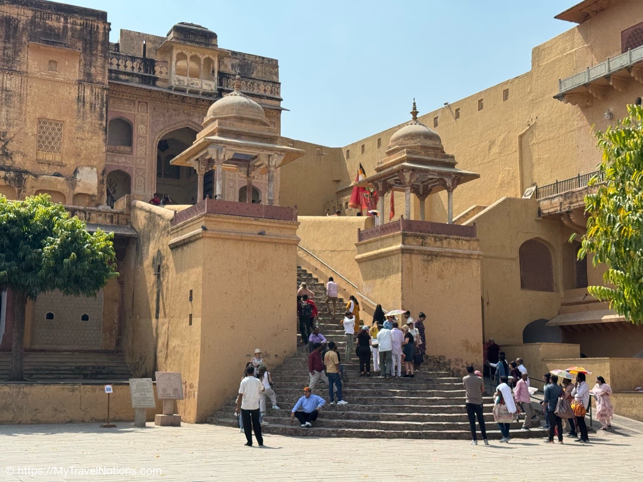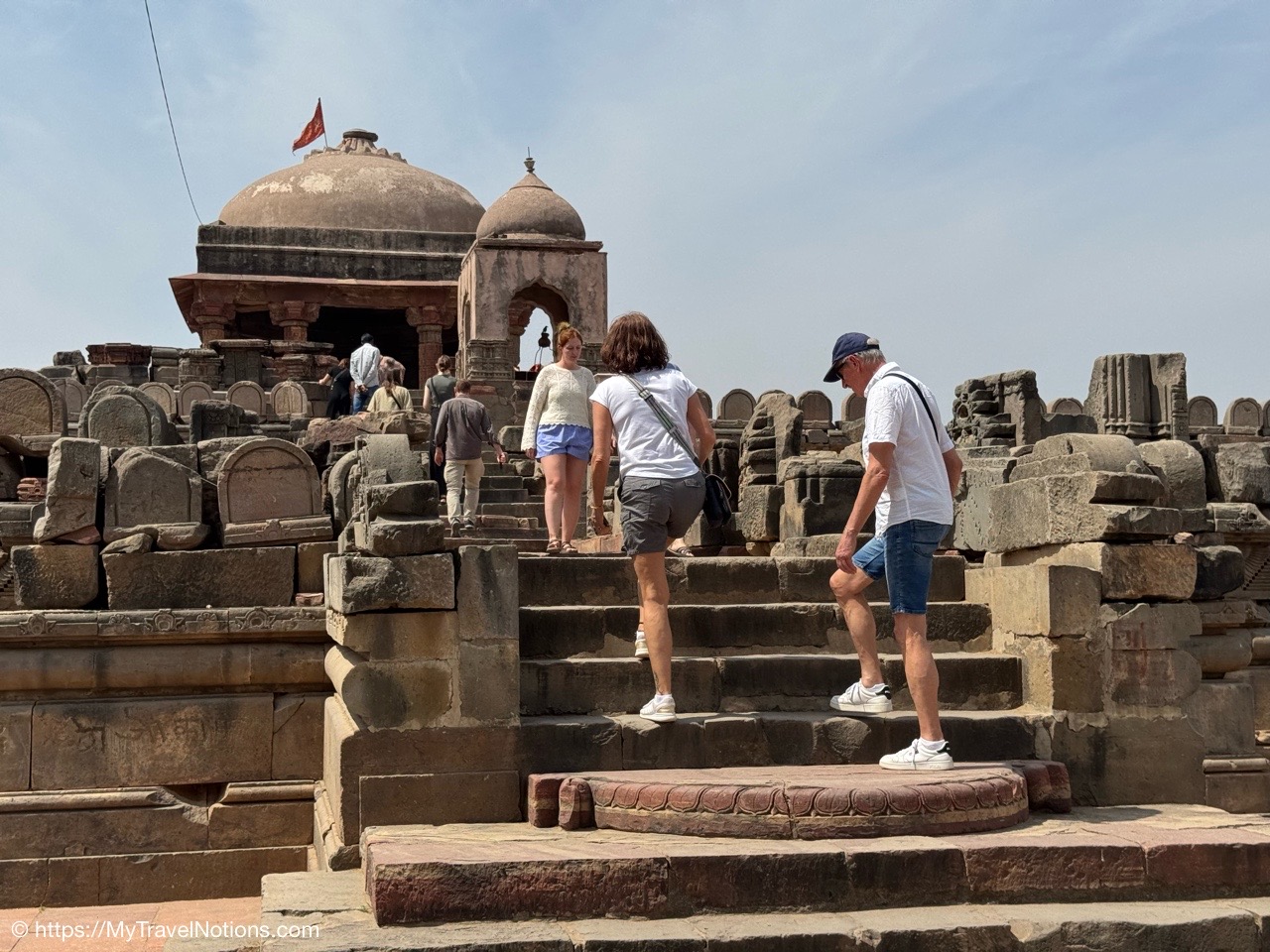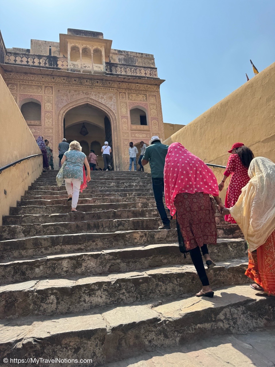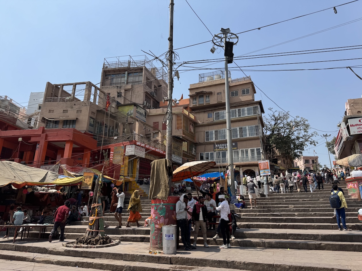 Walking up the stairs from the terrace of the Ganges river in Varanasi. (March 11, 2025)
