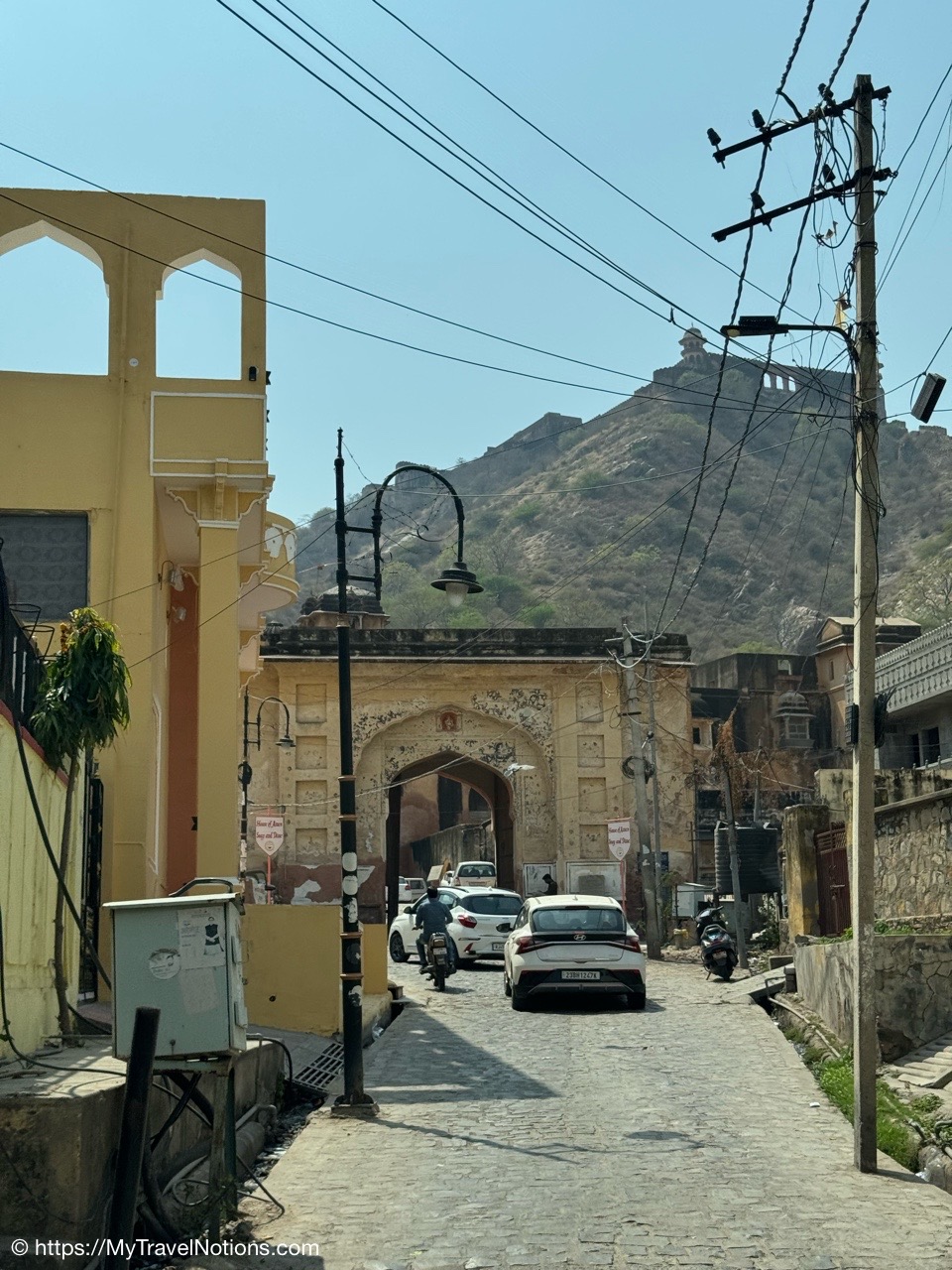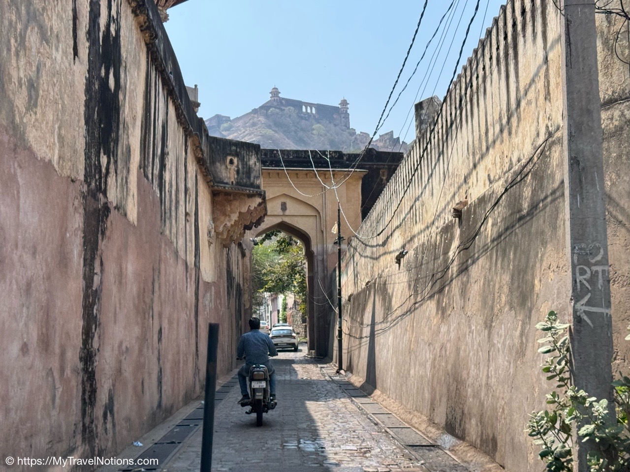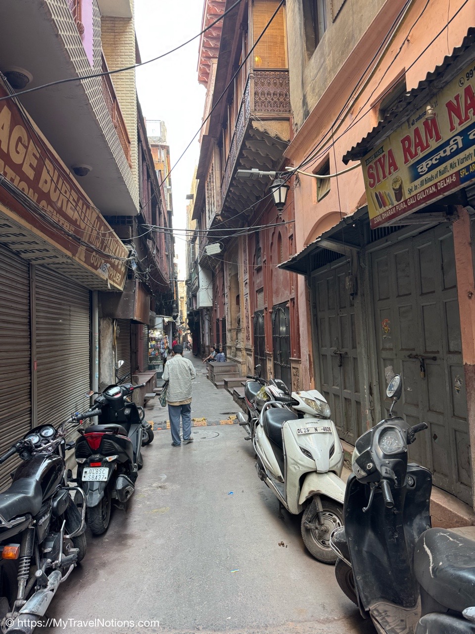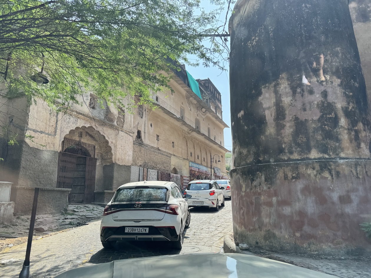 A morning view, as I was leaving the hotel for my flight to Nepal, of the alleyway leading from the building I stayed in of the Haveli Dharampura hotel in the heart of Old Delhi. (March 20, 2025)