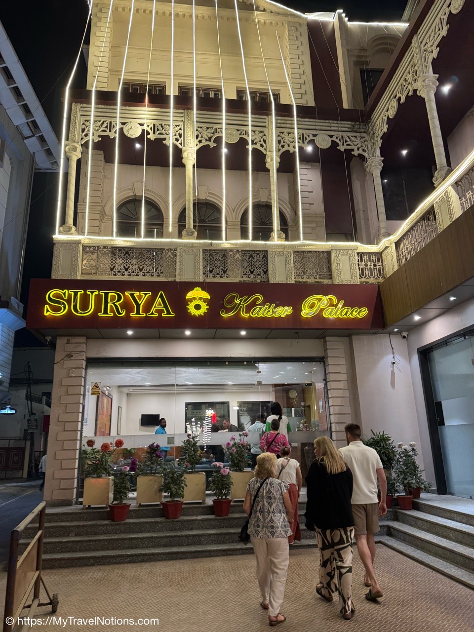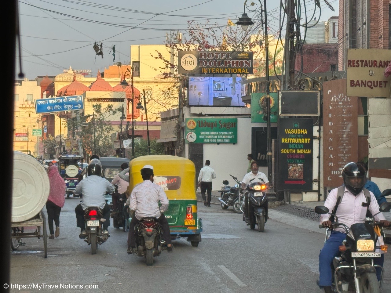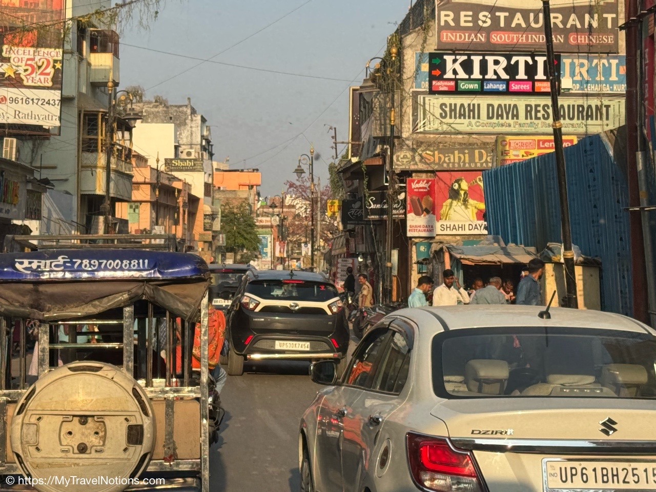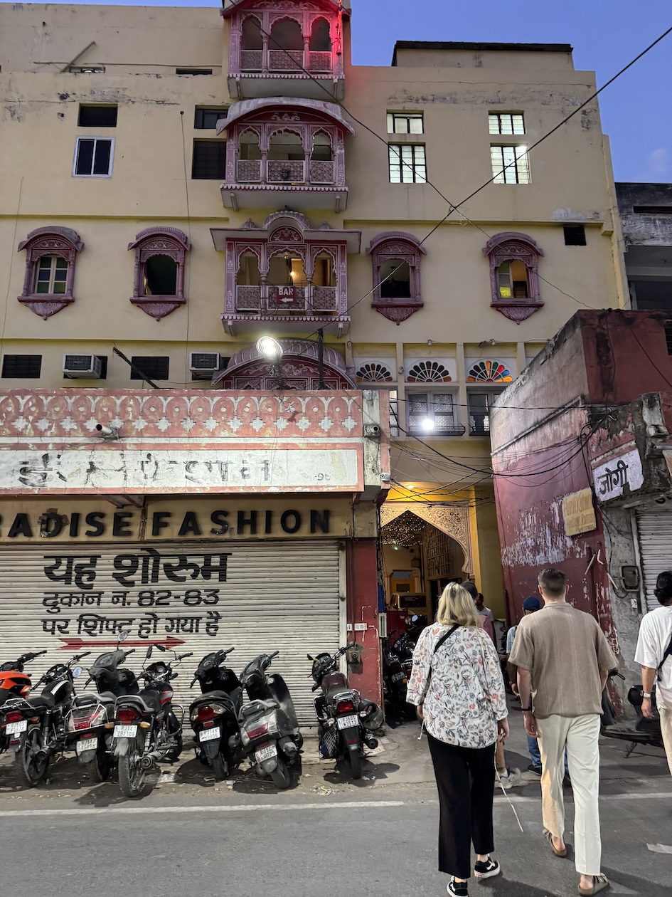 A nice evening walk to dinner at the Surya Kaiser Palace in Varanasi. (March 11, 2025)