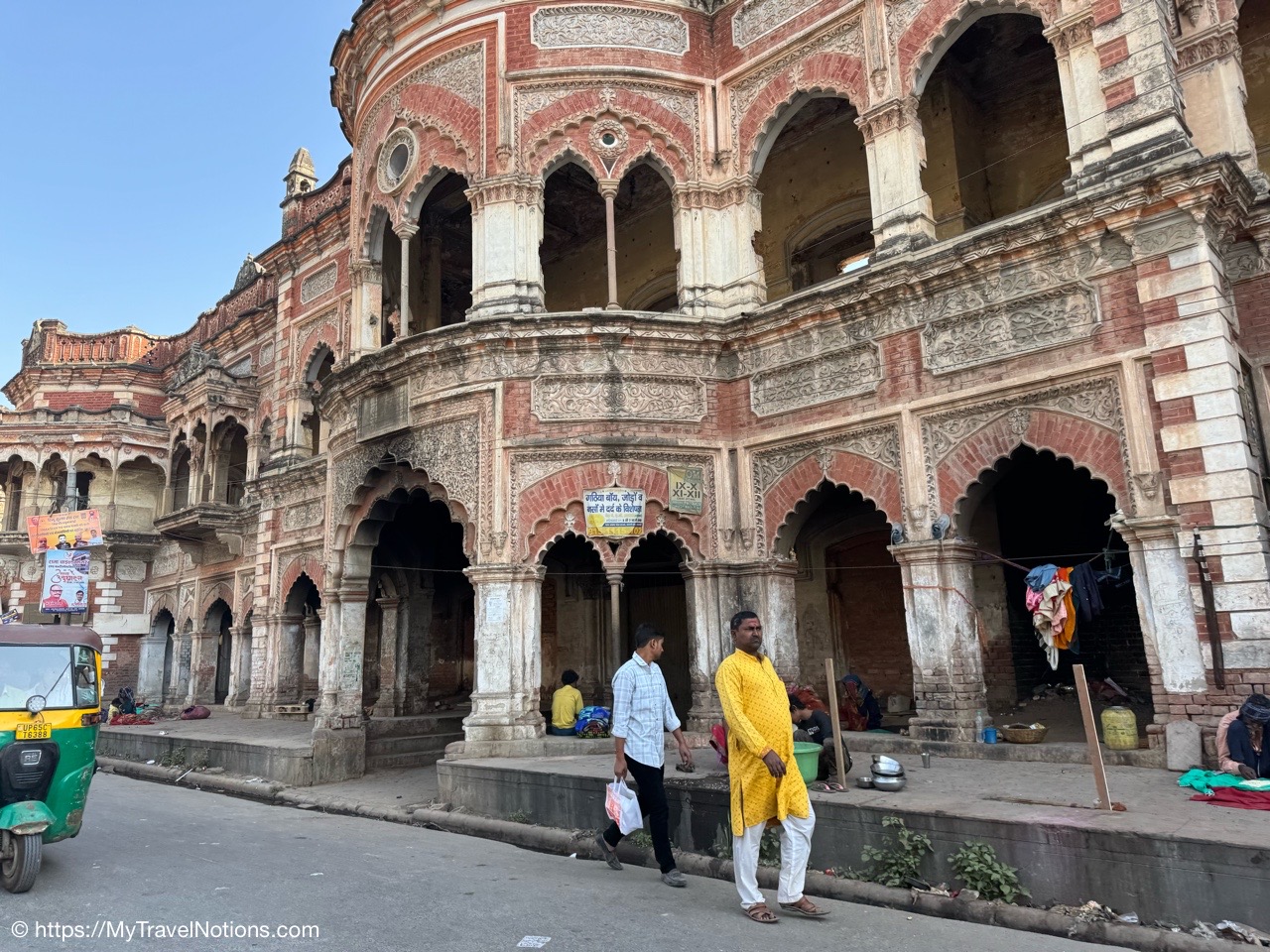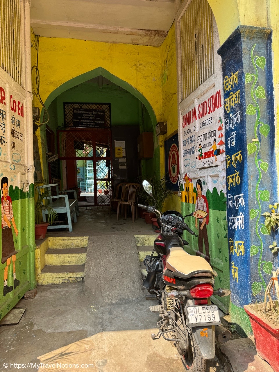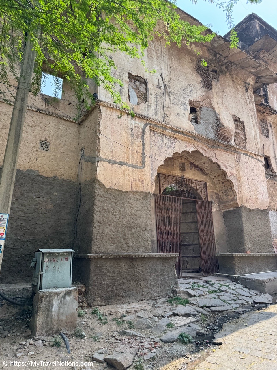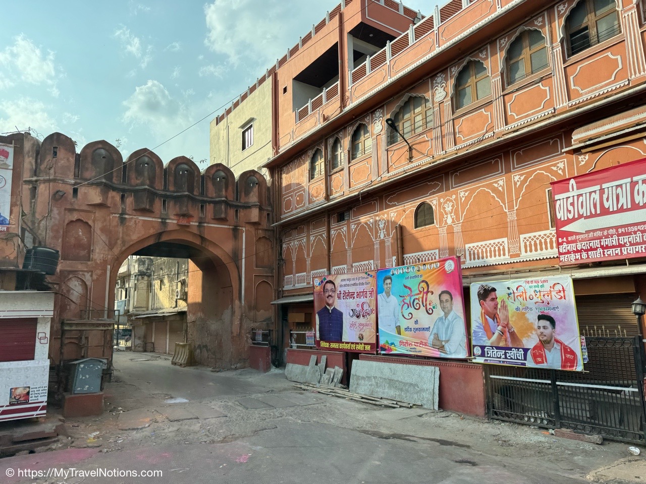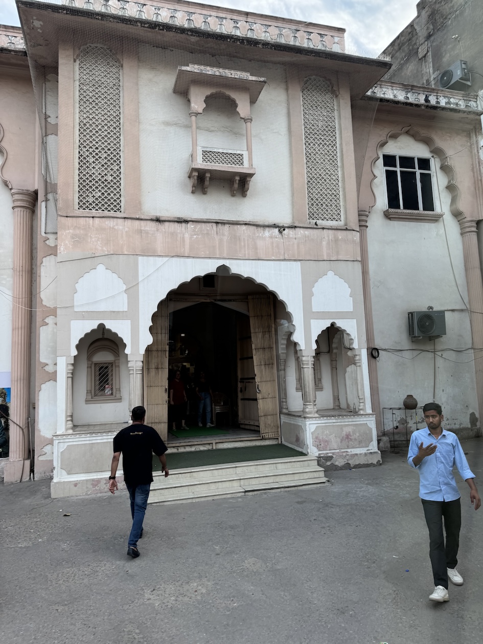 The entrance to the main building of the Haveli Dharampura hotel along a busy alleyway in the midst of hectic Old Delhi. I thought I would be staying here in the main building, but instead, I was assigned the secondary building instead. (March 18, 2025)