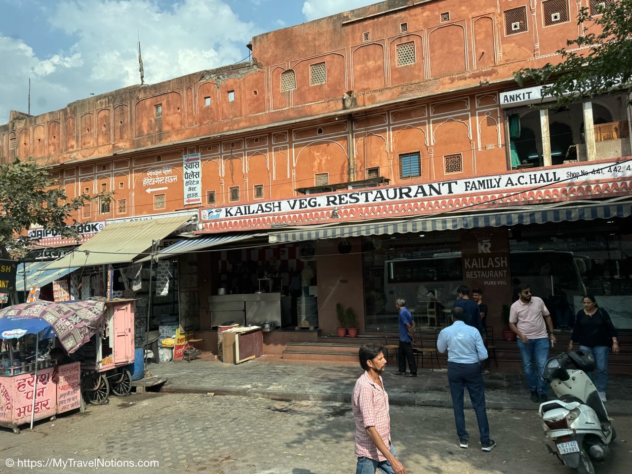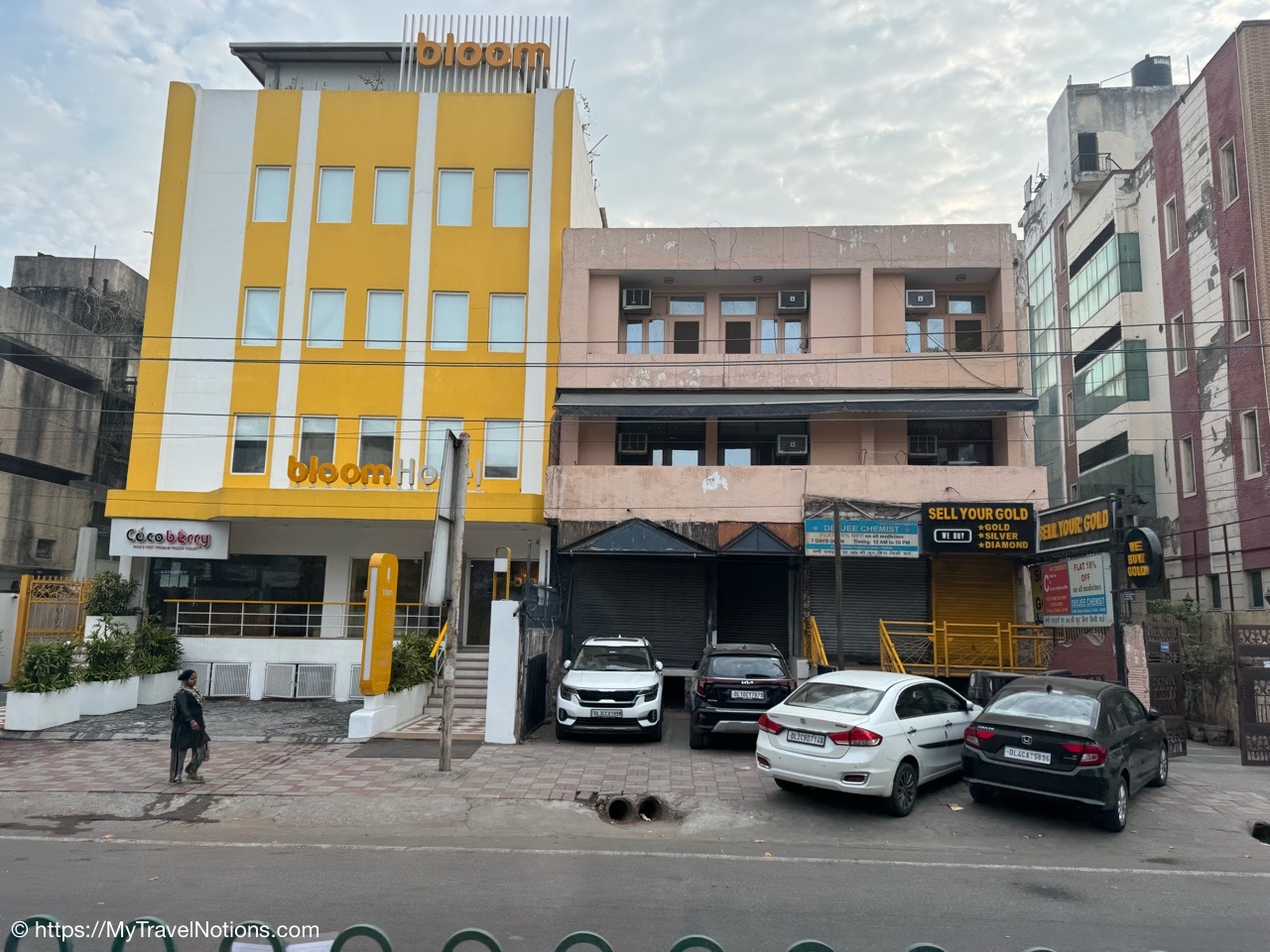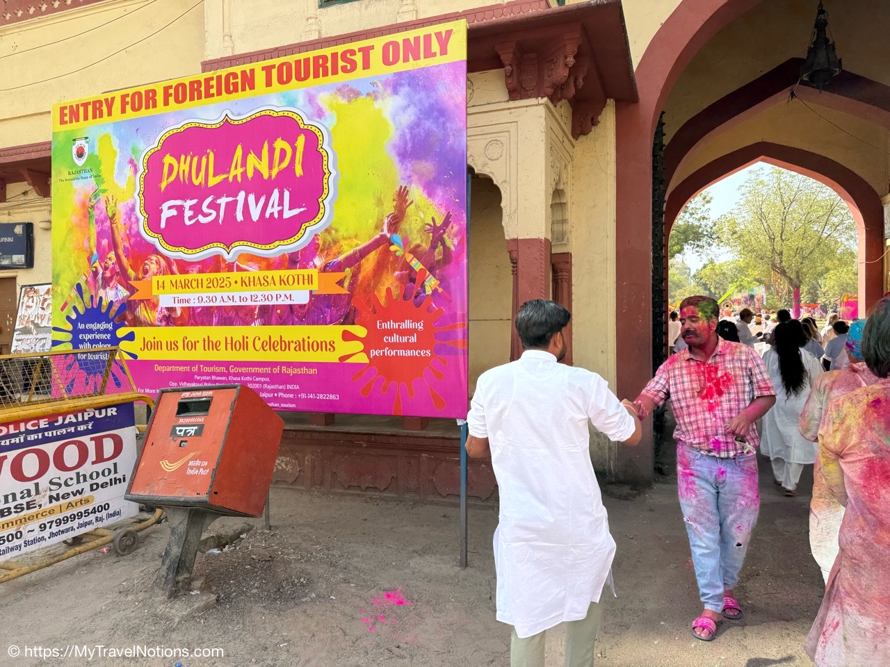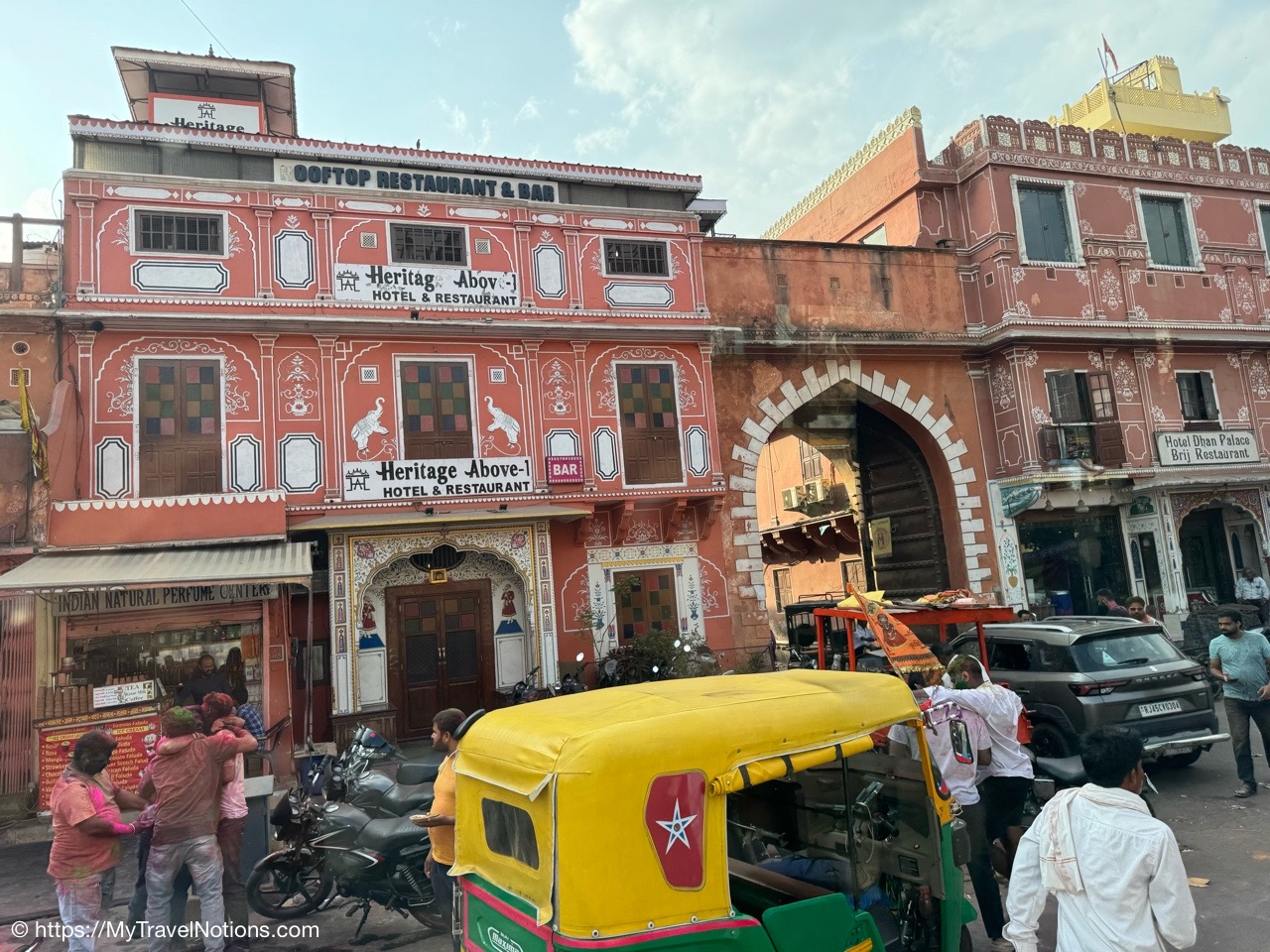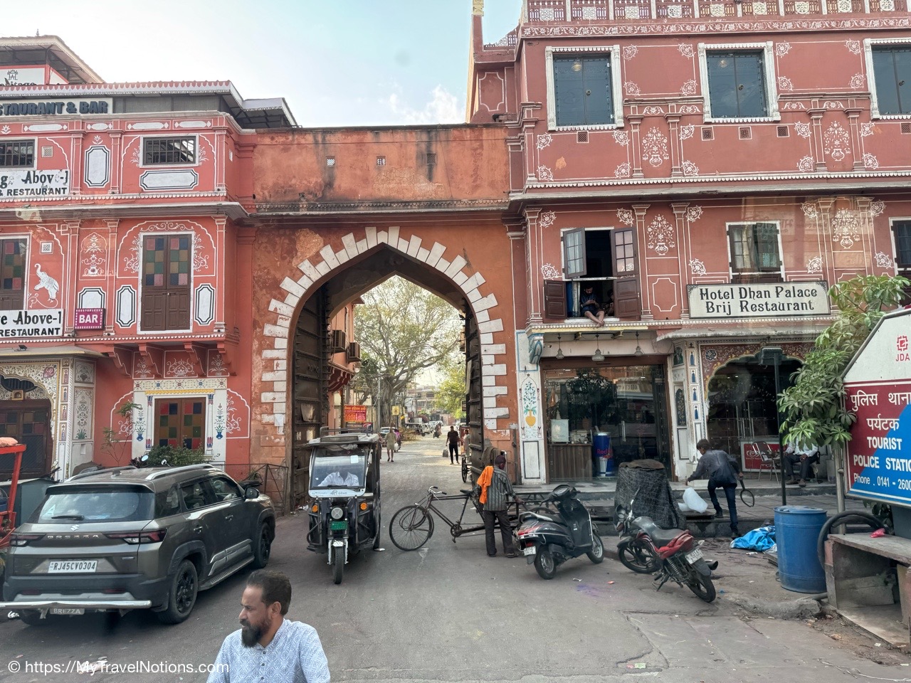 The entrance to the main building of the Haveli Dharampura hotel along a busy alleyway in the midst of hectic Old Delhi. I thought I would be staying here in the main building, but instead, I was assigned the secondary building instead. (March 18, 2025)
