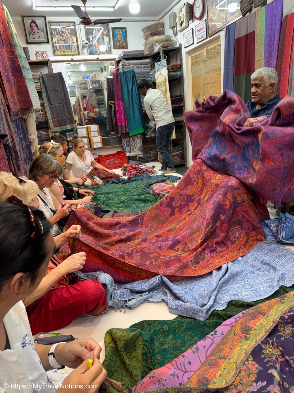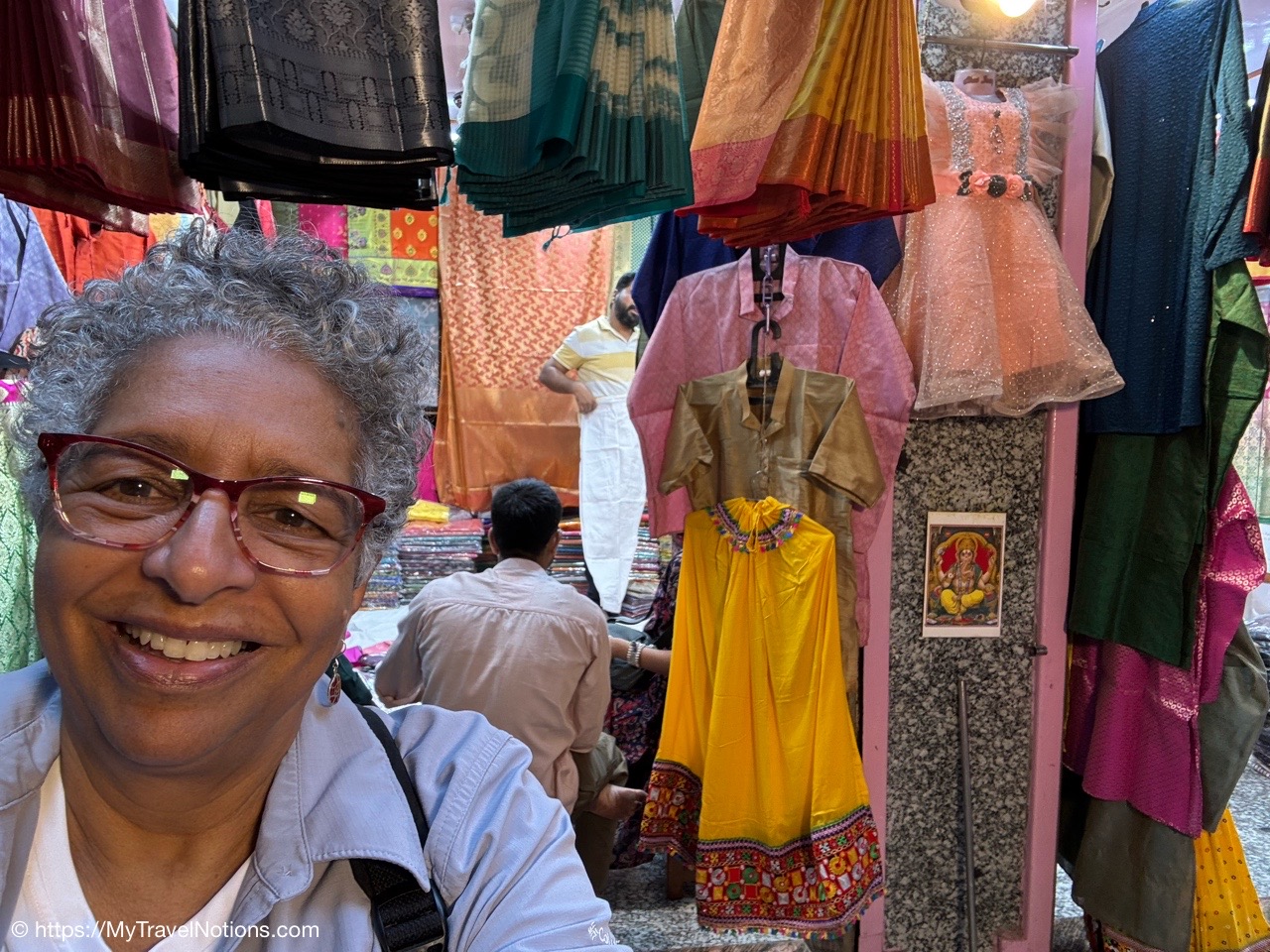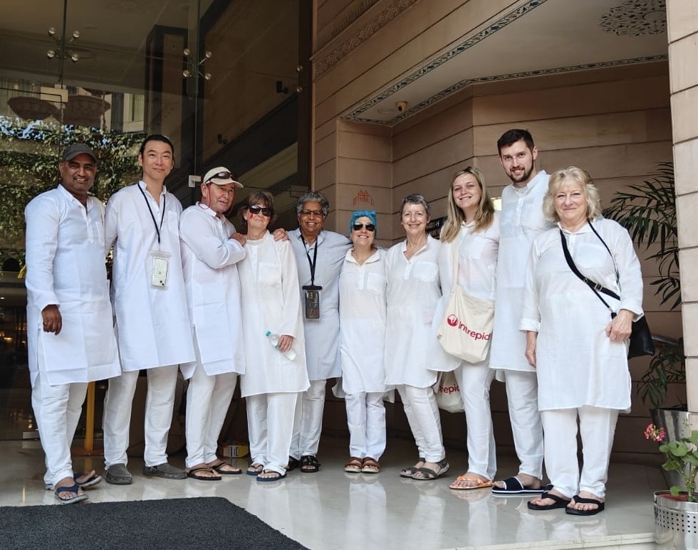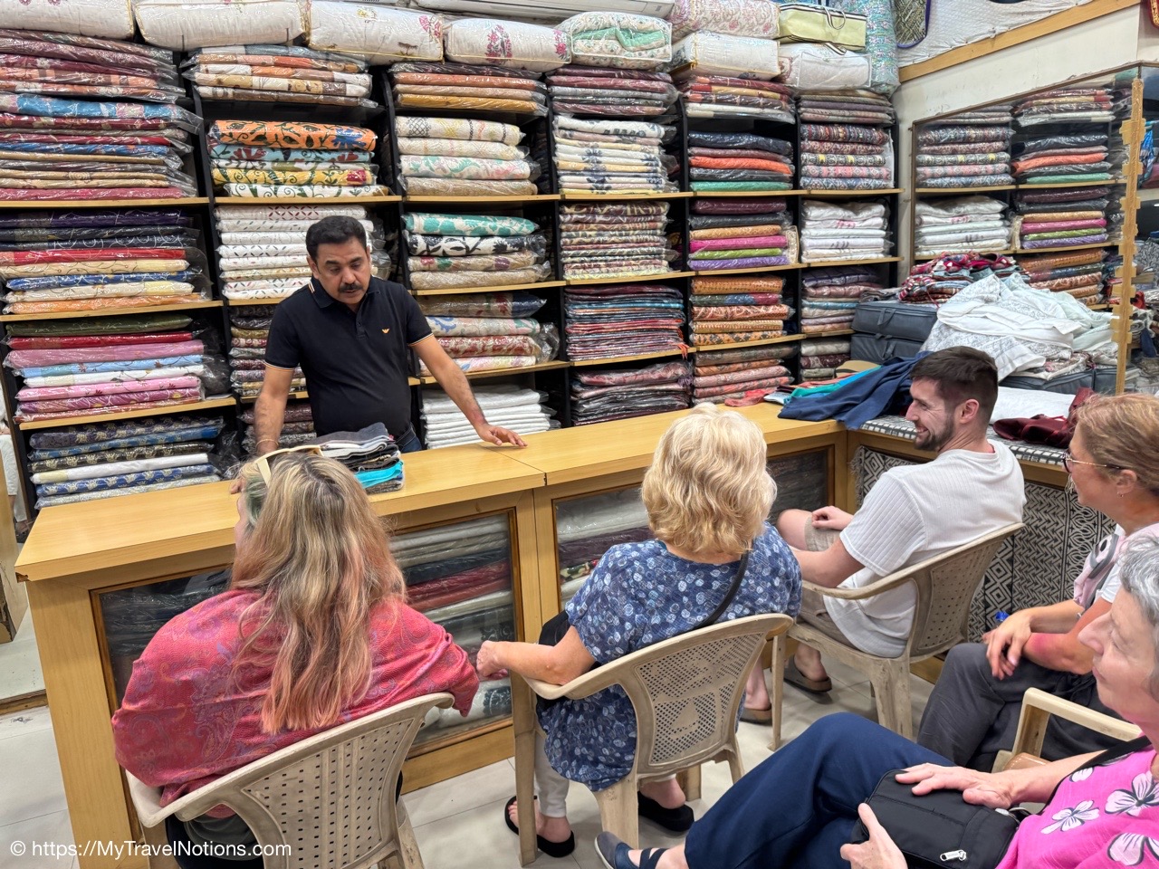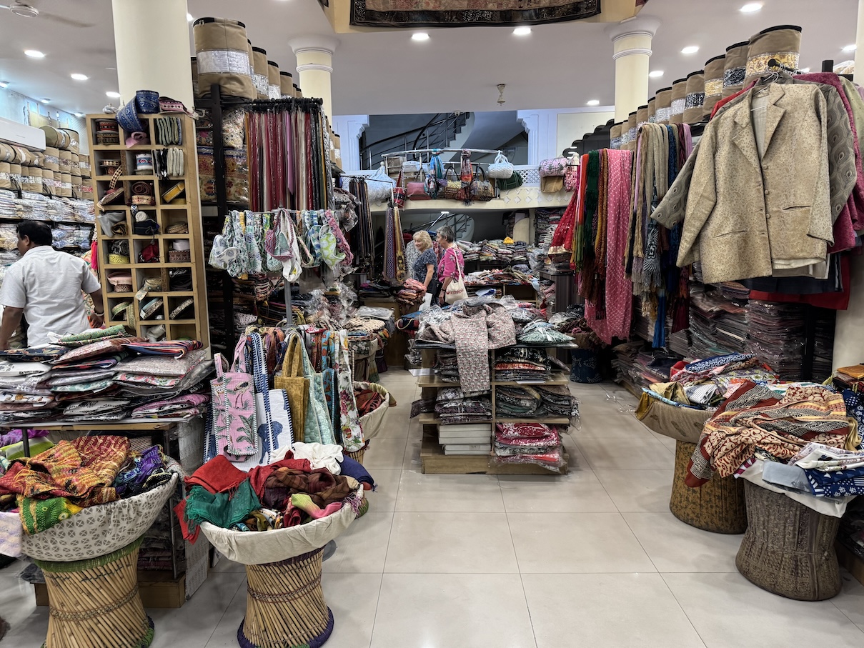 From the silk vendor, our tour group members ventured to another vendor to buy our white garments, myself included, for the upcoming Holi Festival of Colors on March 14th. (March 11, 2025)