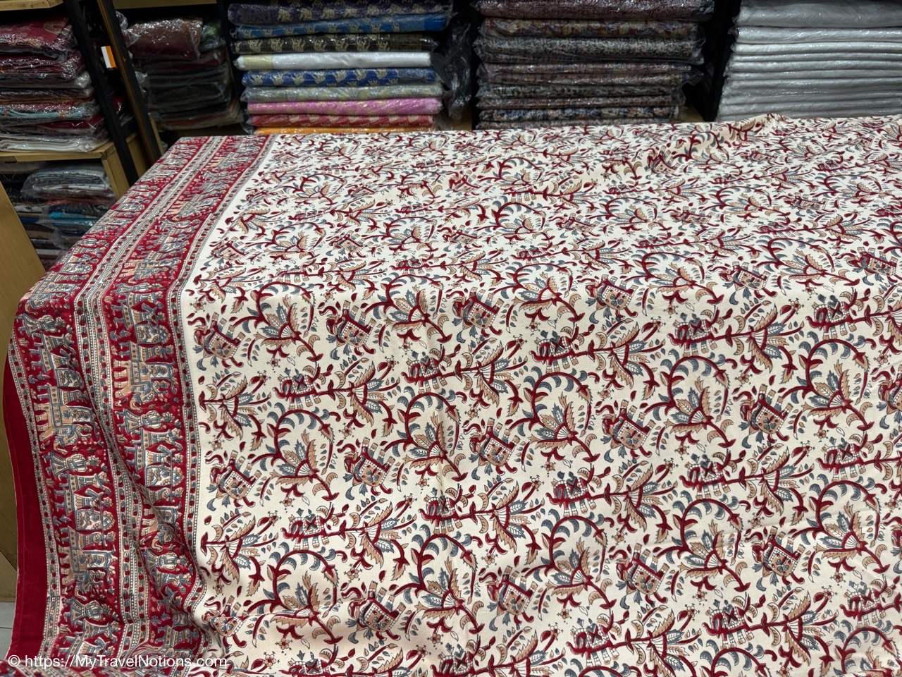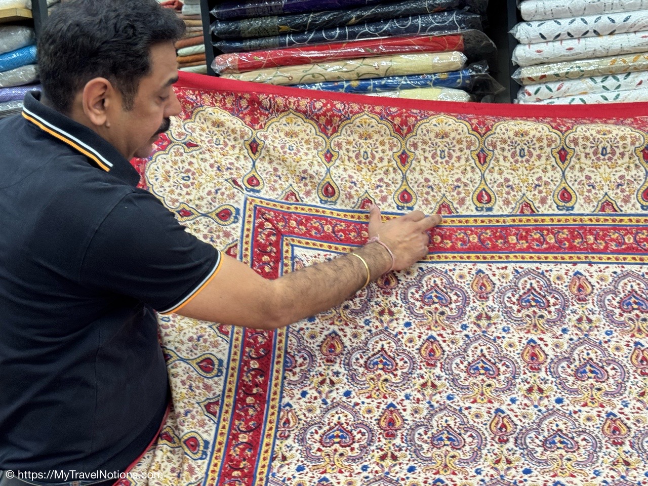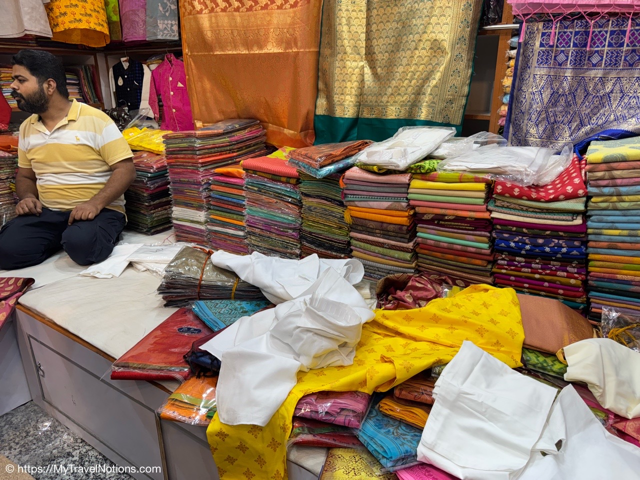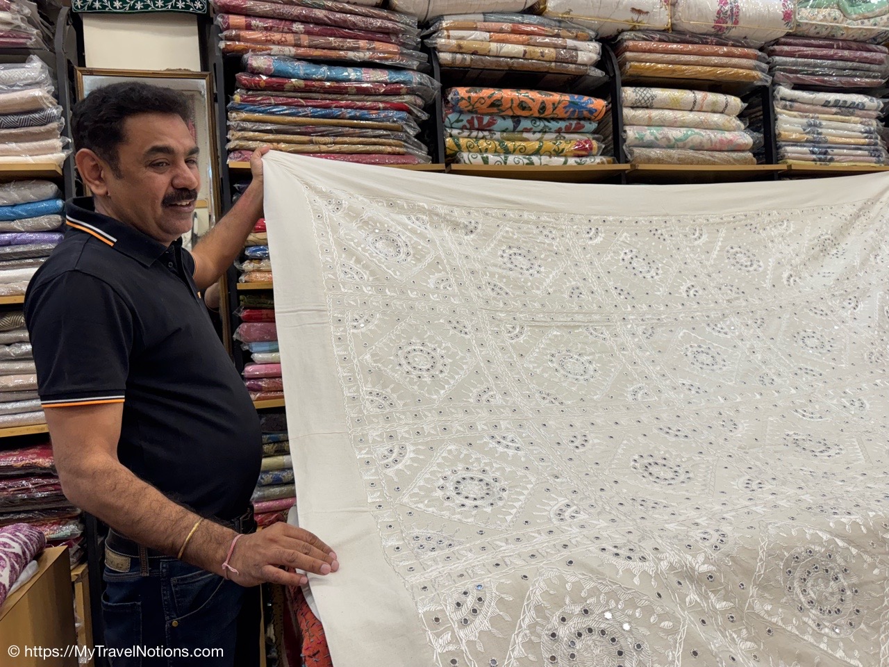 From the silk vendor, our tour group members ventured to another vendor to buy our white garments, myself included, for the upcoming Holi Festival of Colors on March 14th. (March 11, 2025)