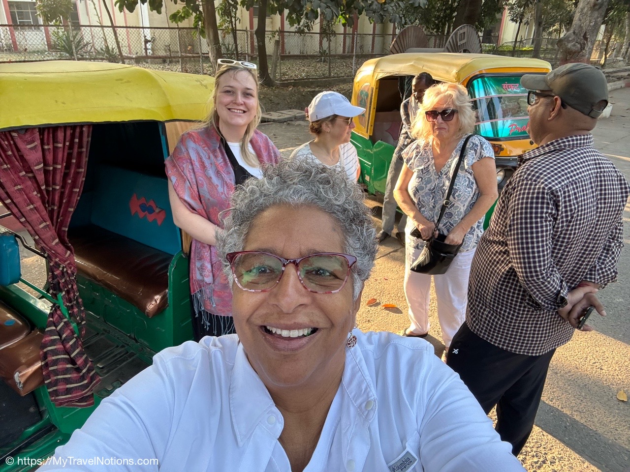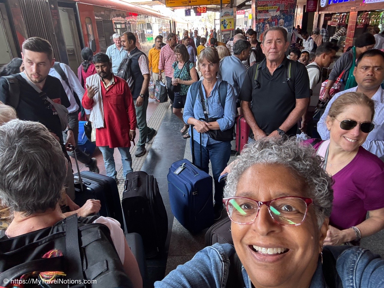 Getting in a selfie with my Intrepid tour group at the Varanasi Junction railway station in Varanasi, India. (March 10, 2025)