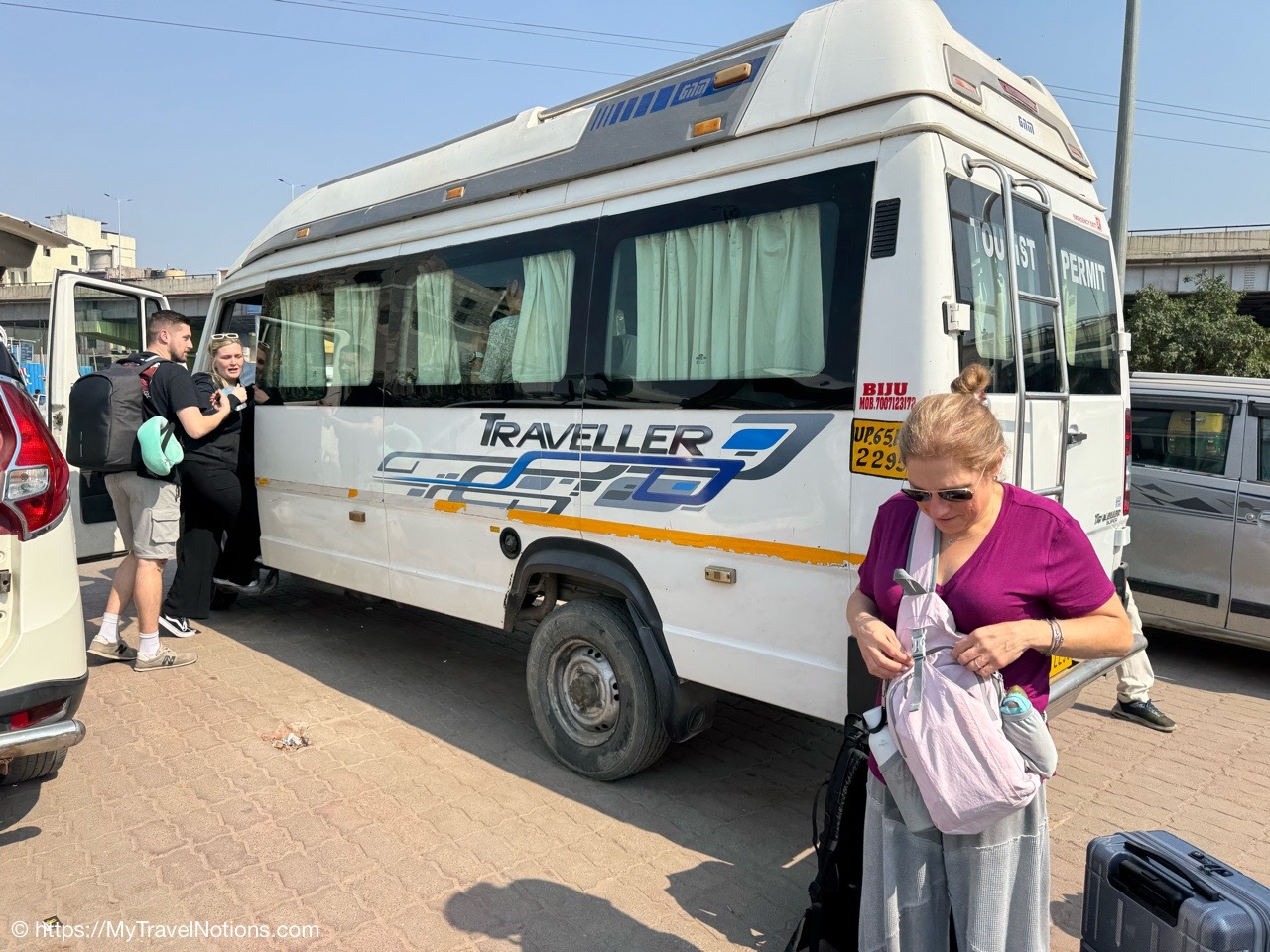 Boarding our van at the Varanasi Junction railway station to head to our hotel for the next two nights, Arcadia Hotel. (March 10, 2025)