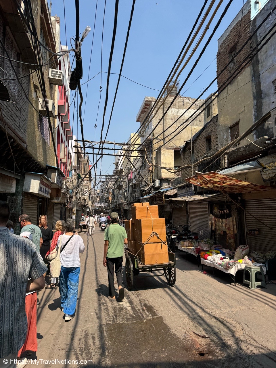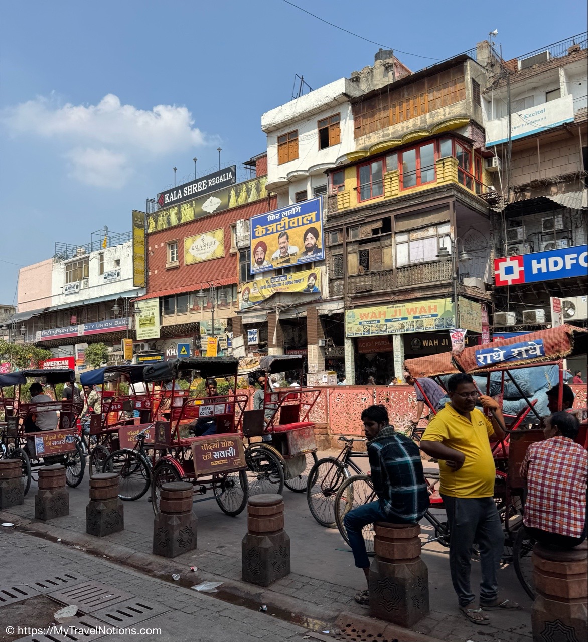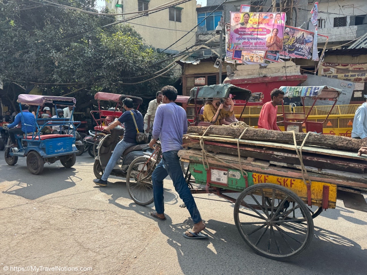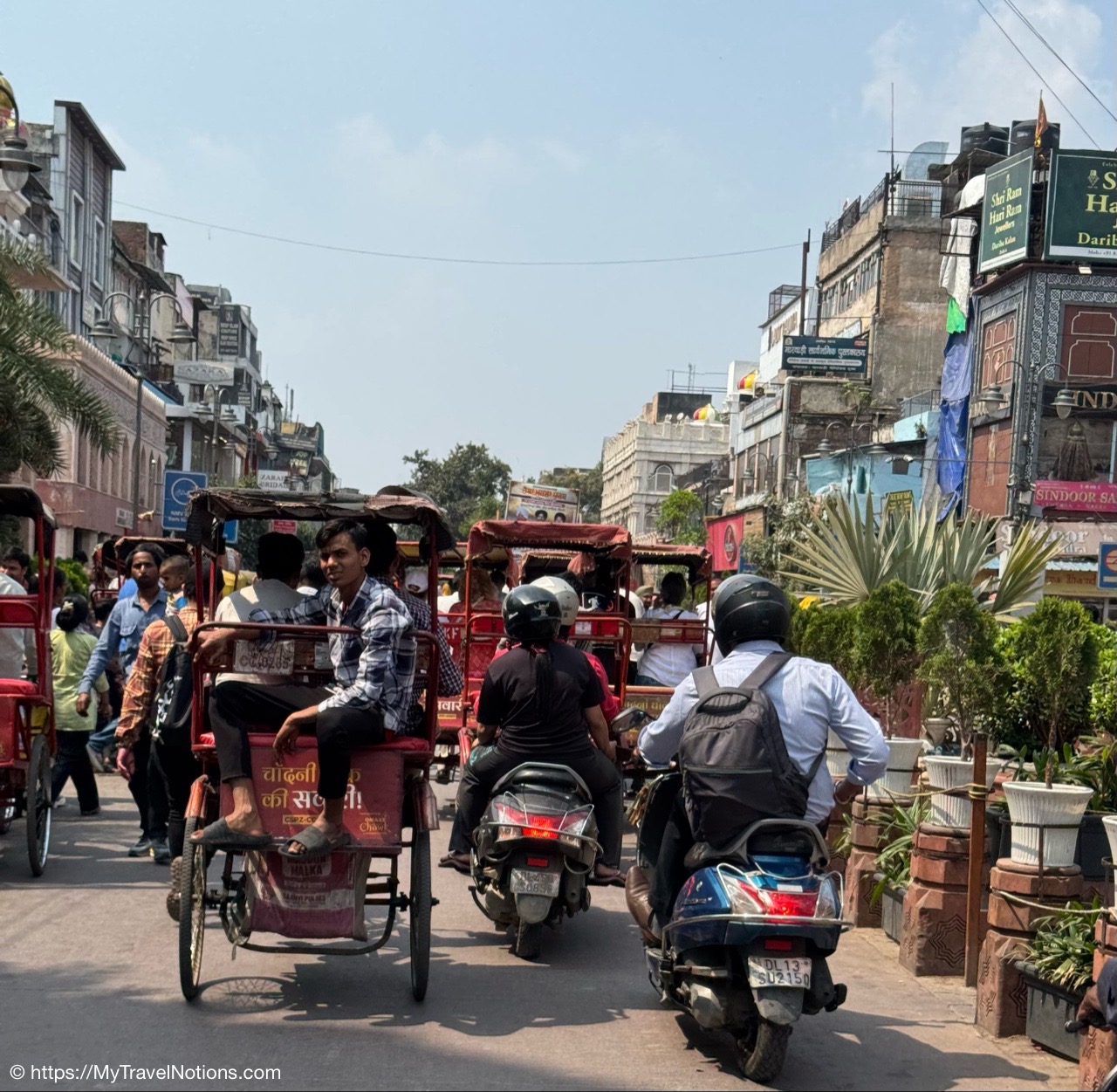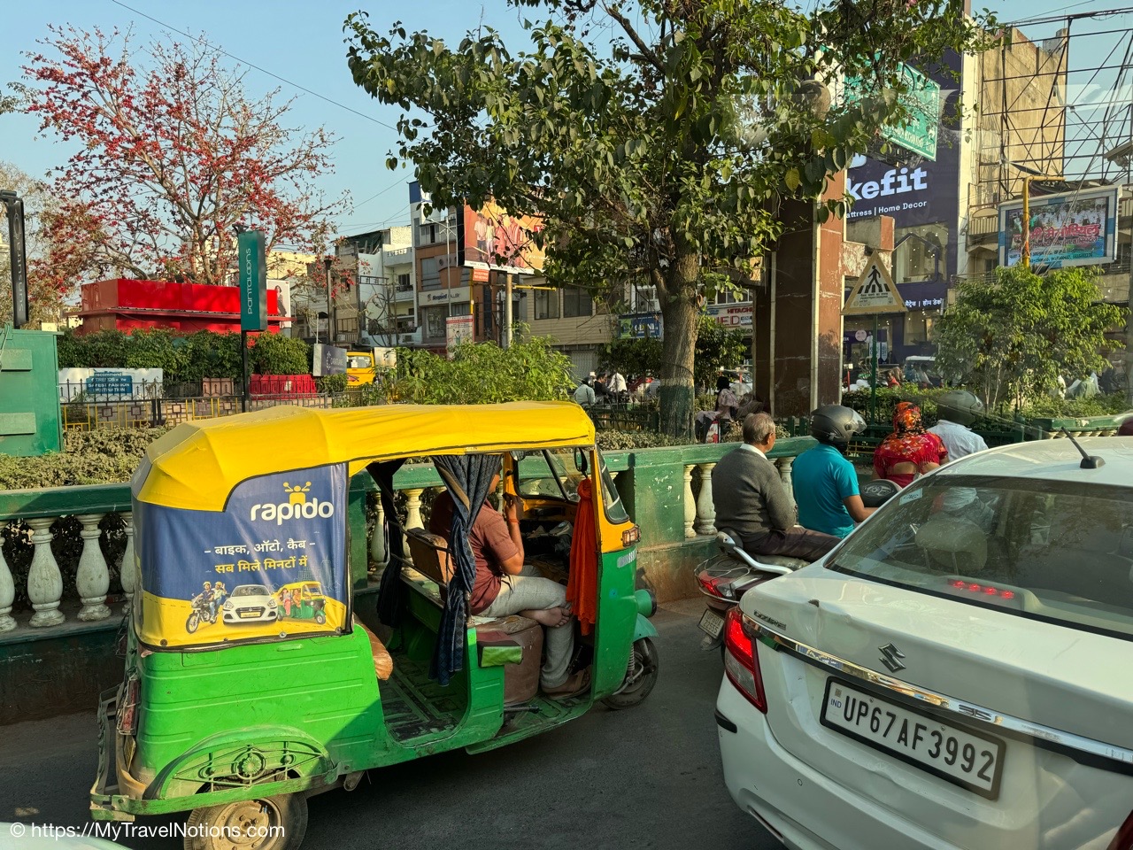 Riding in a cycle rickshaw along the Chandni Chowk a historic, bustling market area and road in Old Delhi. (March 17, 2025)