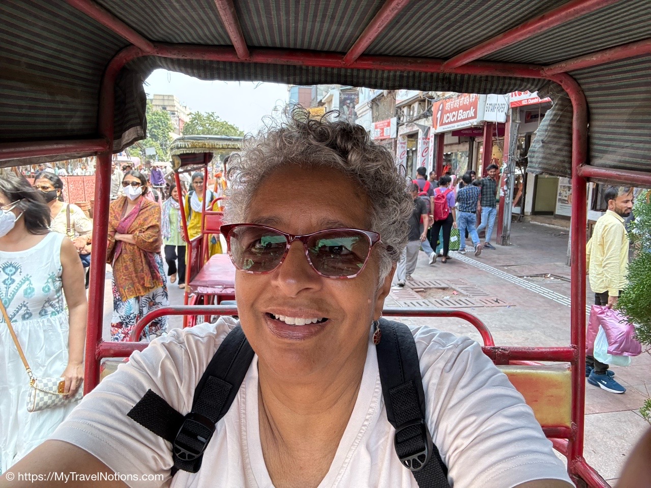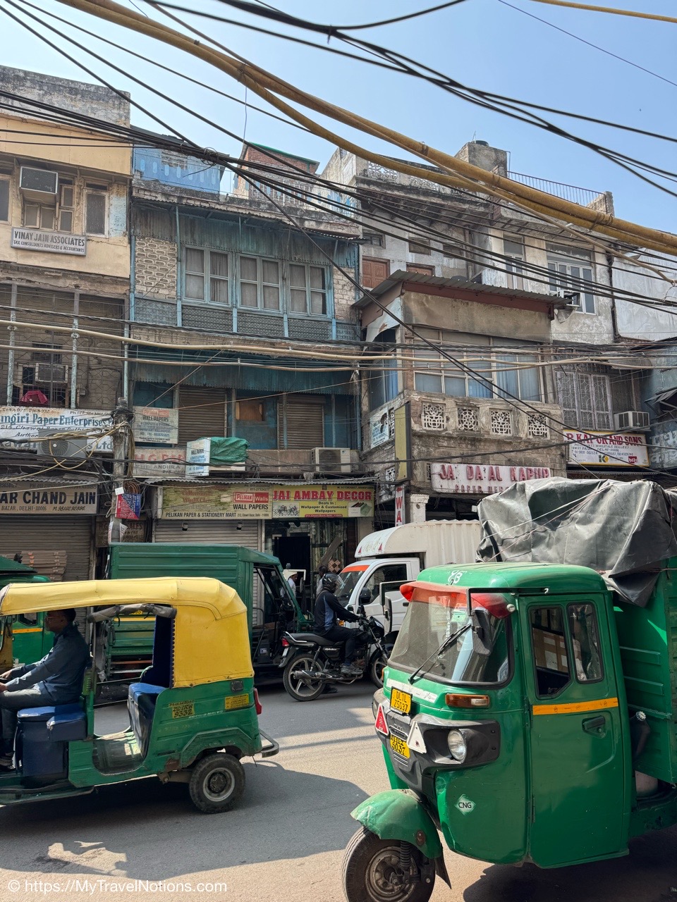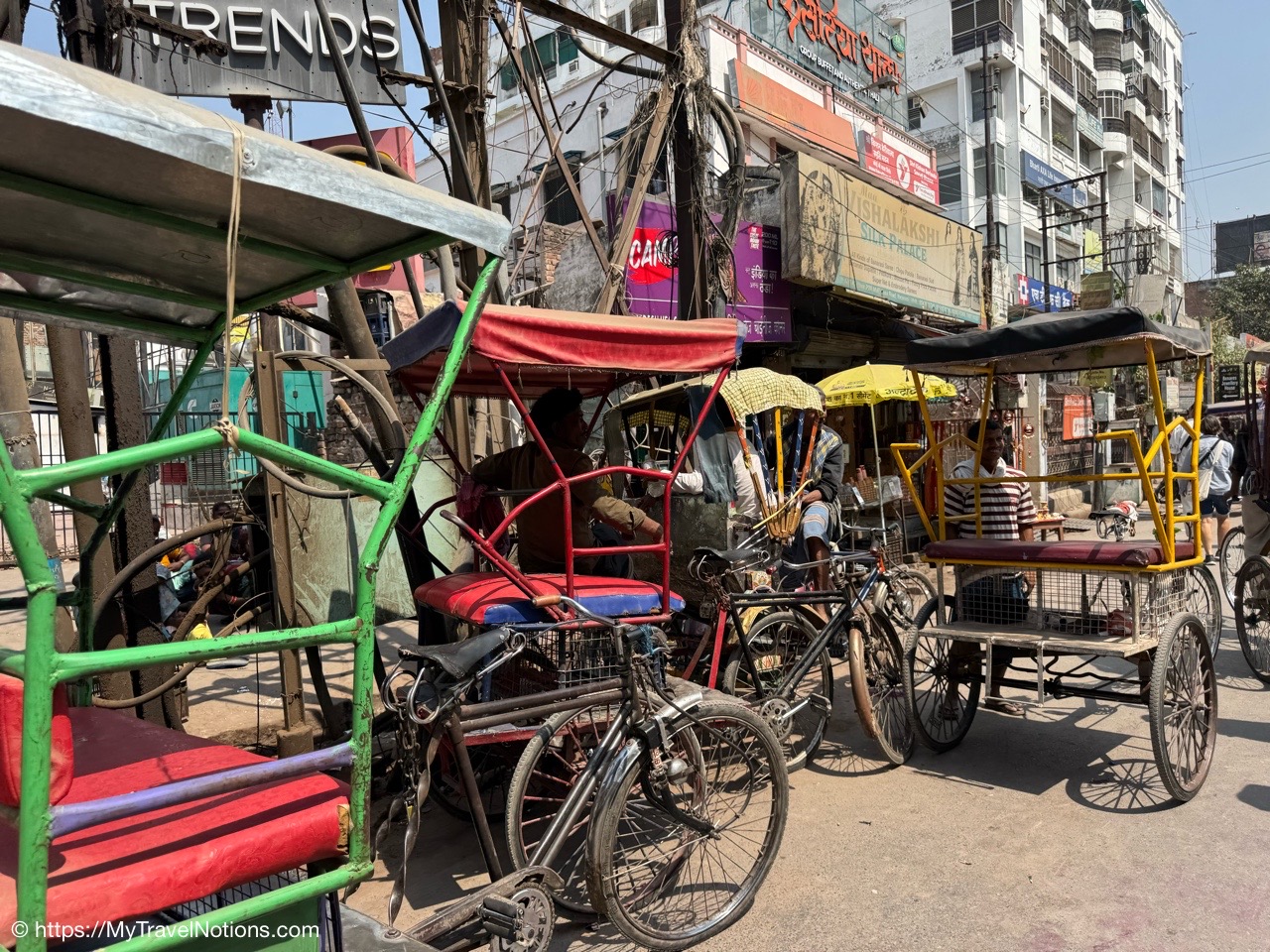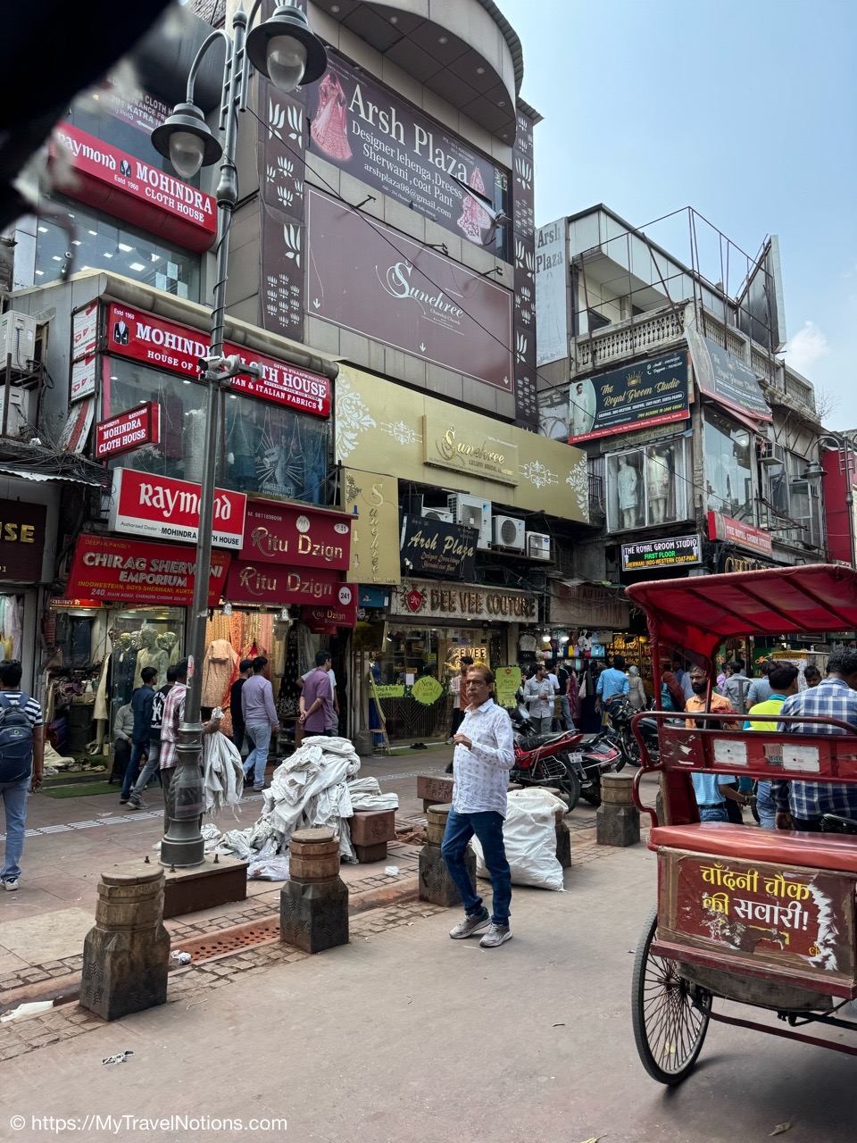 Riding in a cycle rickshaw along the Chandni Chowk a historic, bustling market area and road in Old Delhi. (March 17, 2025)