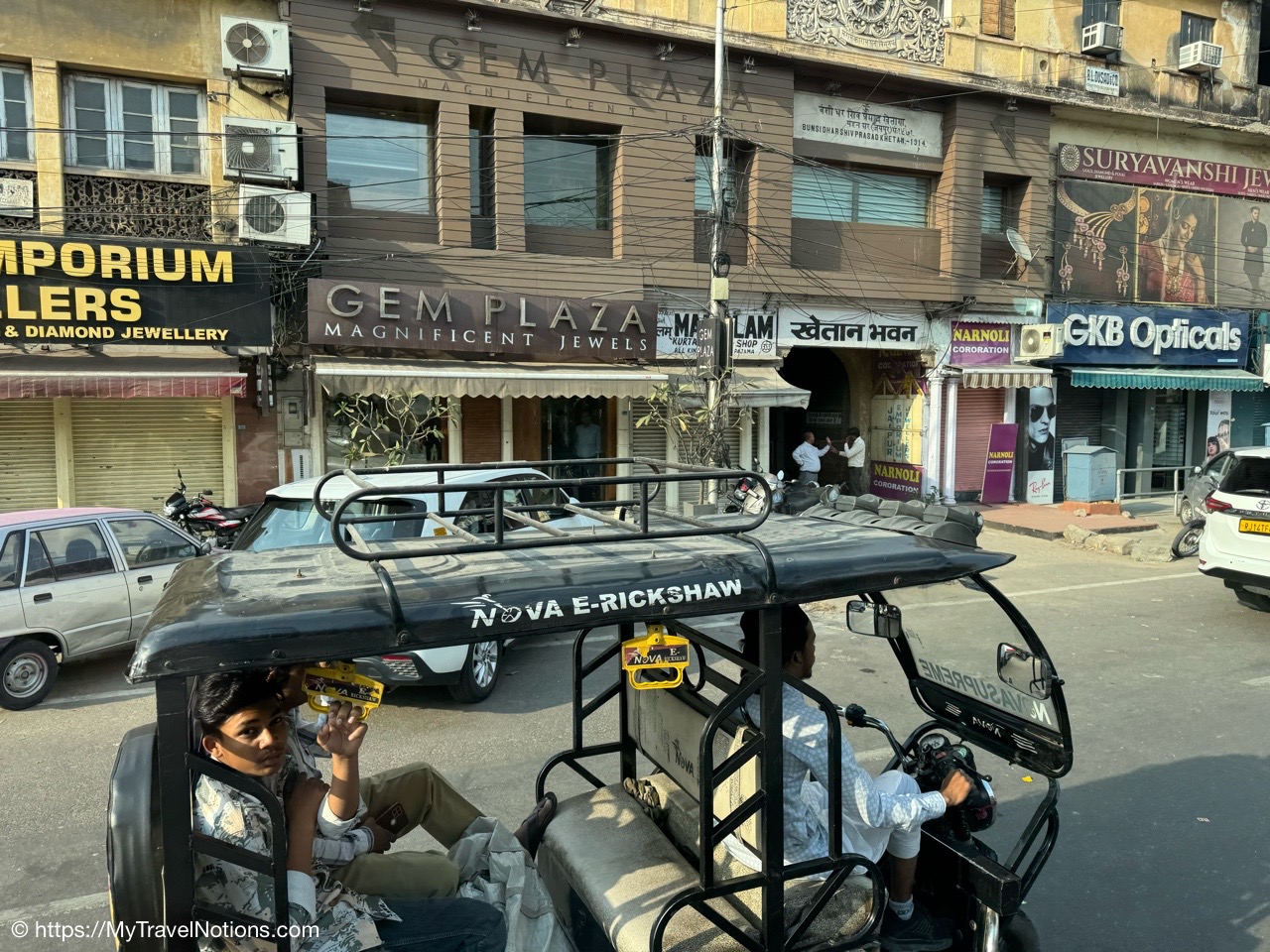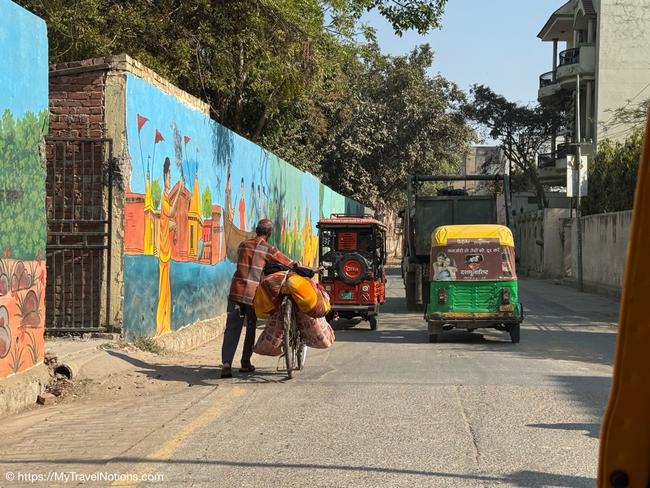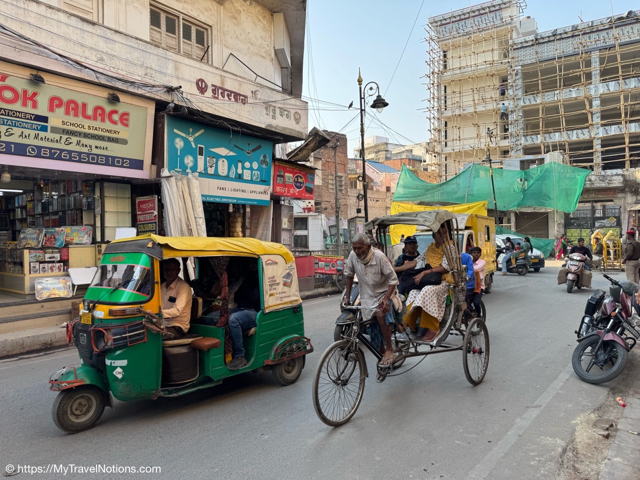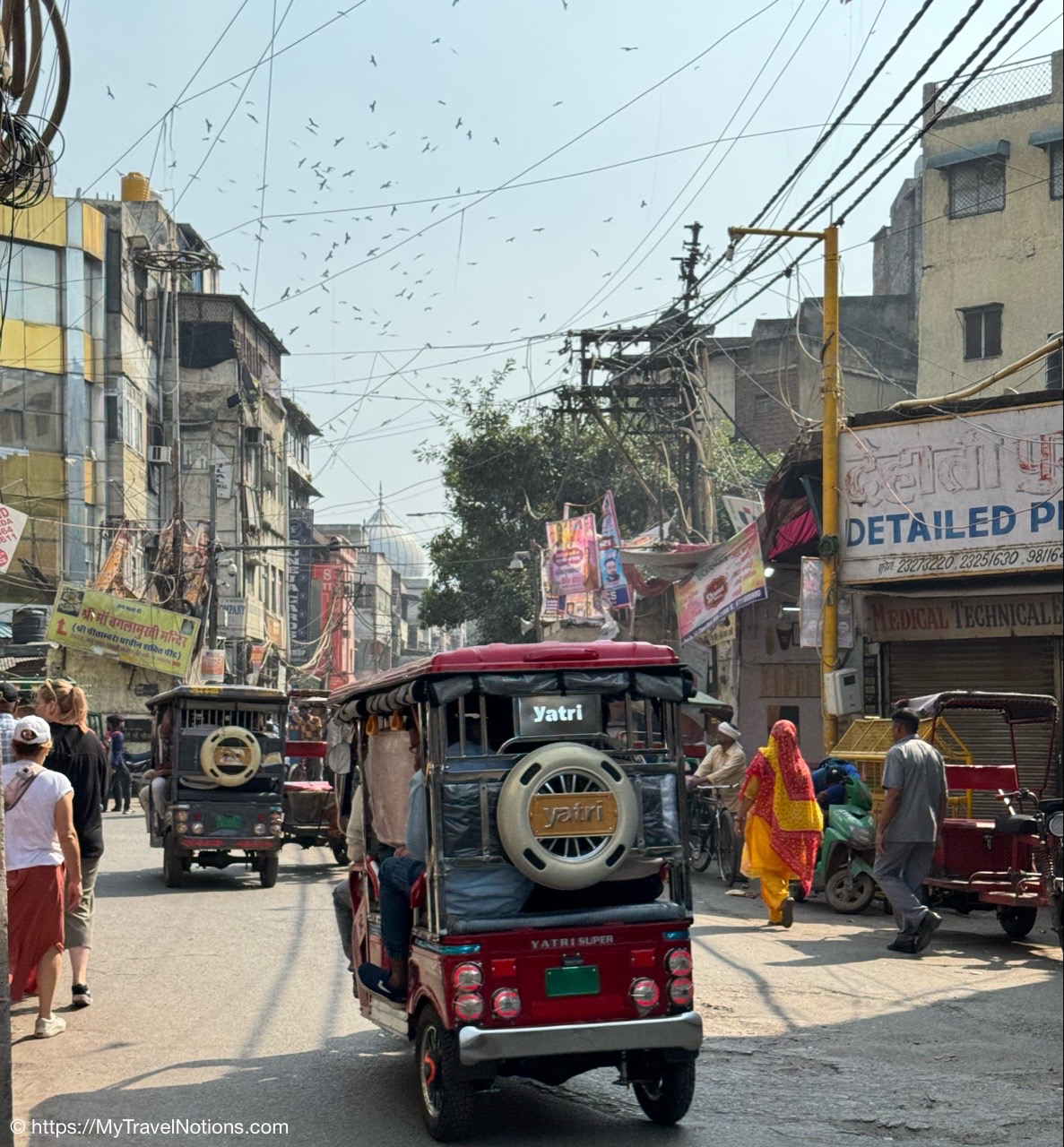 Riding in a cycle rickshaw along the Chandni Chowk a historic, bustling market area and road in Old Delhi. (March 17, 2025)