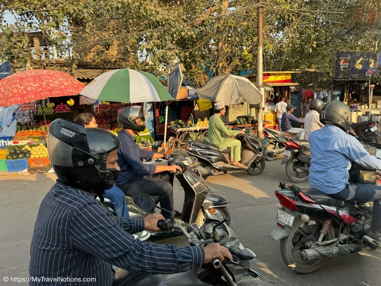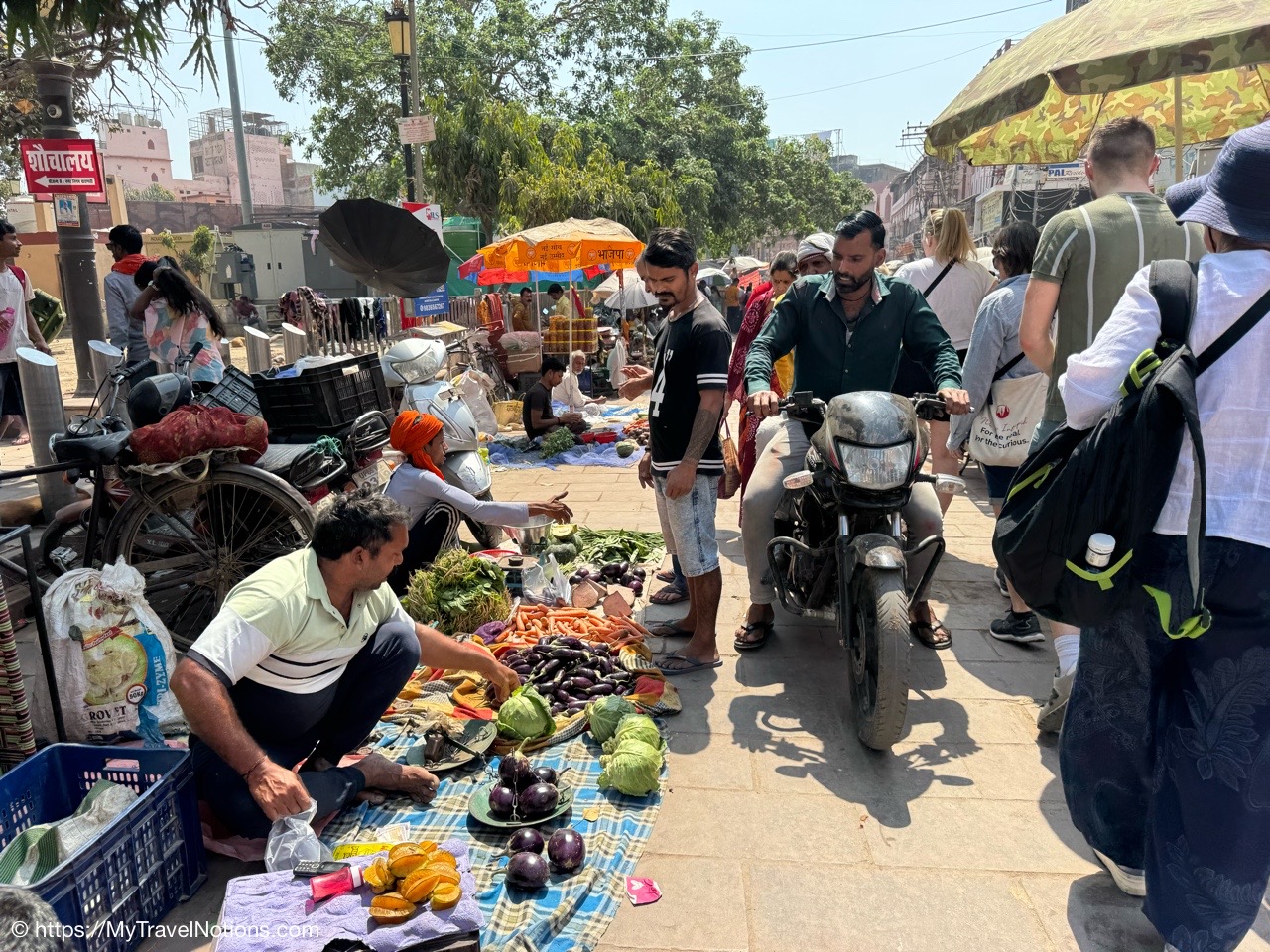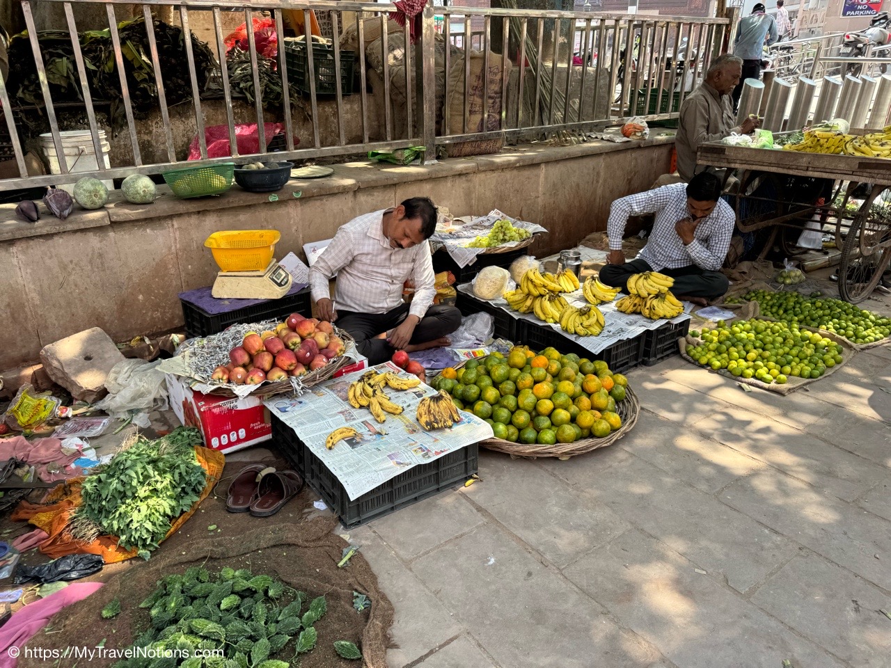 Fresh fruits and vegetables sold alongside the streets in Varanasi. (March 11, 2025)