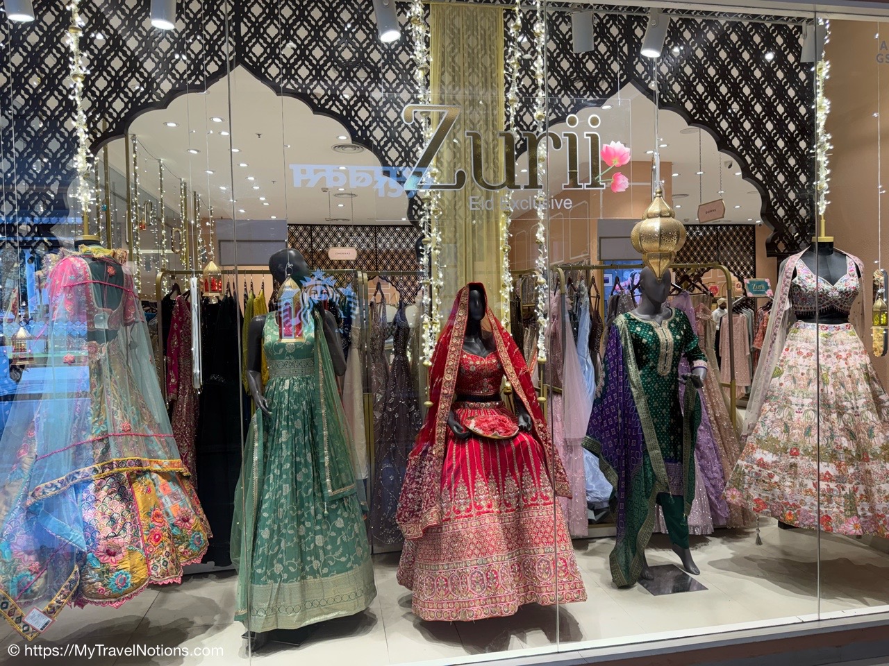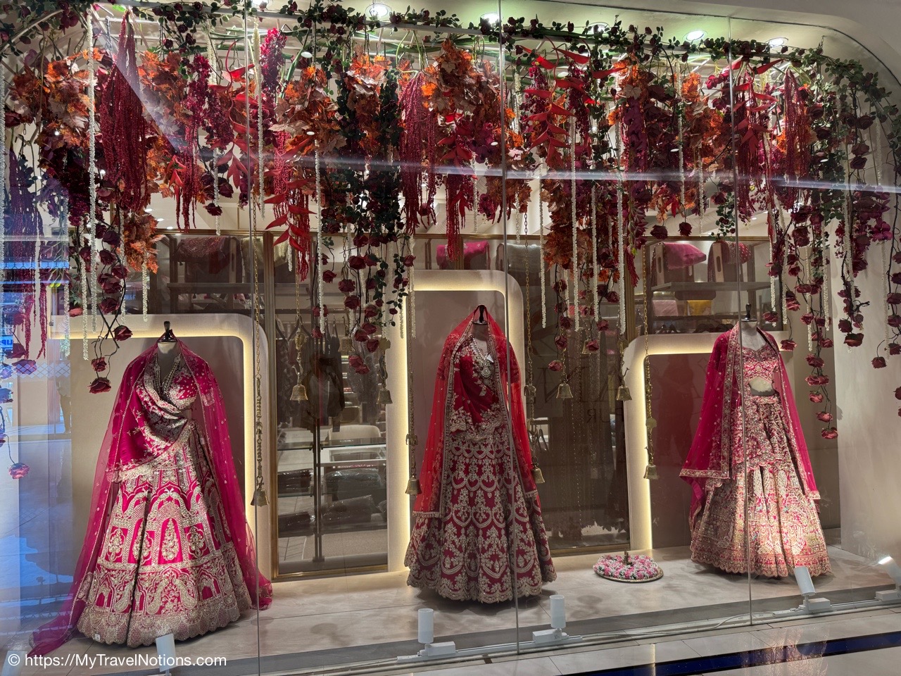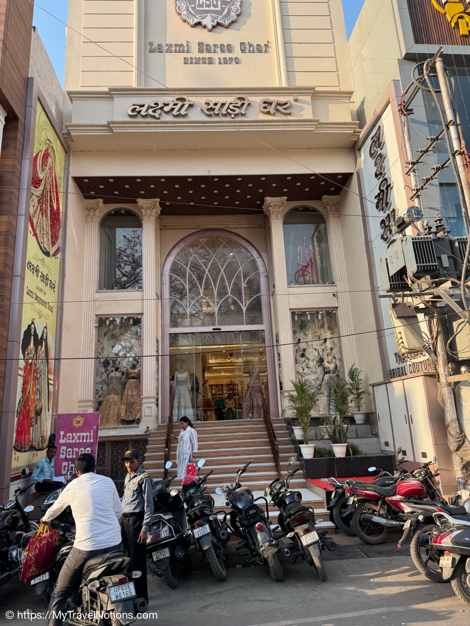 The beautiful ethnic clothing native Indian women wear on display at a store inside the Omaxe Mall in Chandni Chowk Old Delhi where we stopped for a group lunch at the food court. (March 17, 2025)