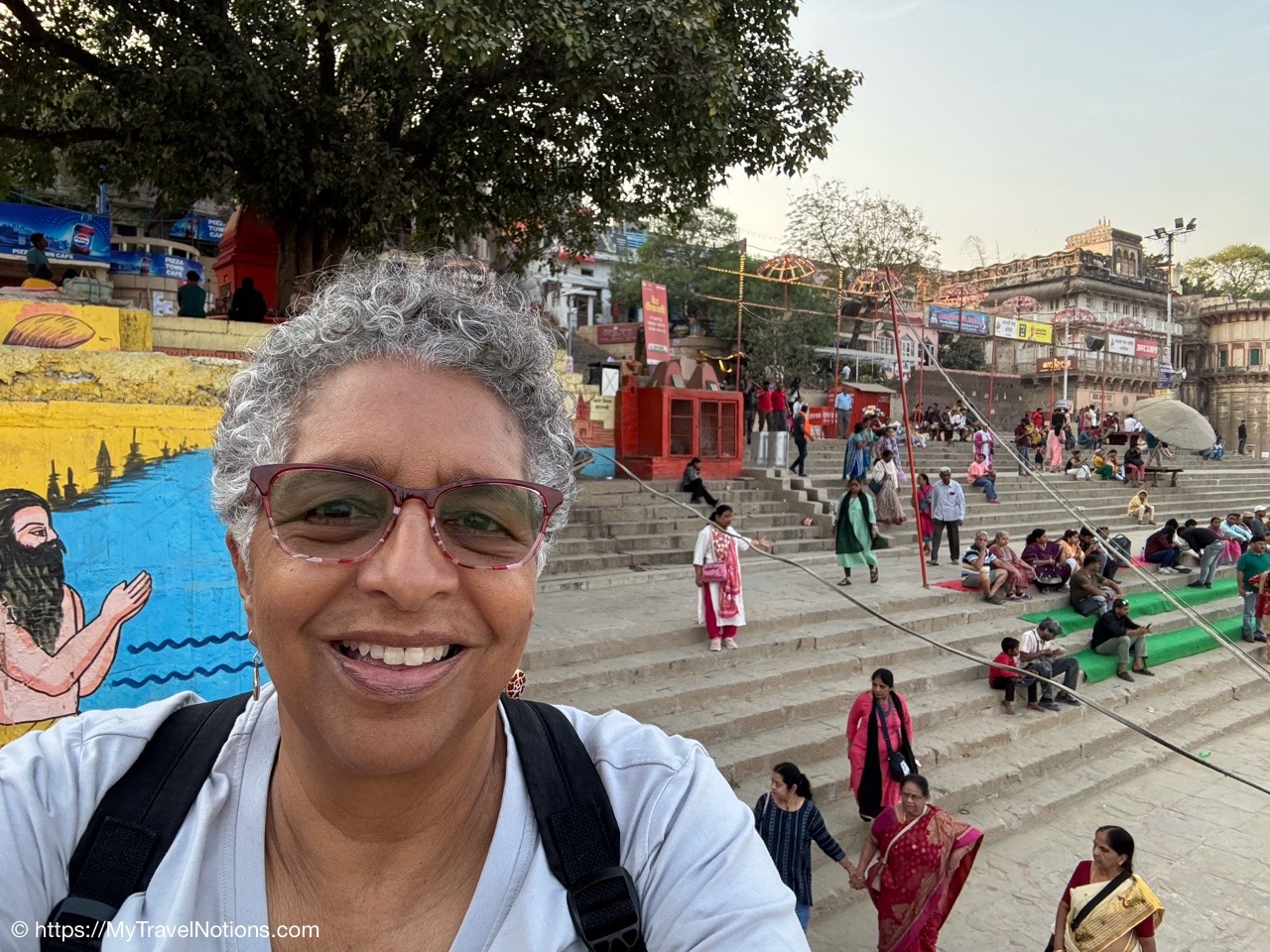 Me at the Dasaswamedh Ghat, a riverfront step leading to the Ganges in Varanasi. This is where the nightly Ganga Aarti ceremony is held after sunset. (March 10, 2025)