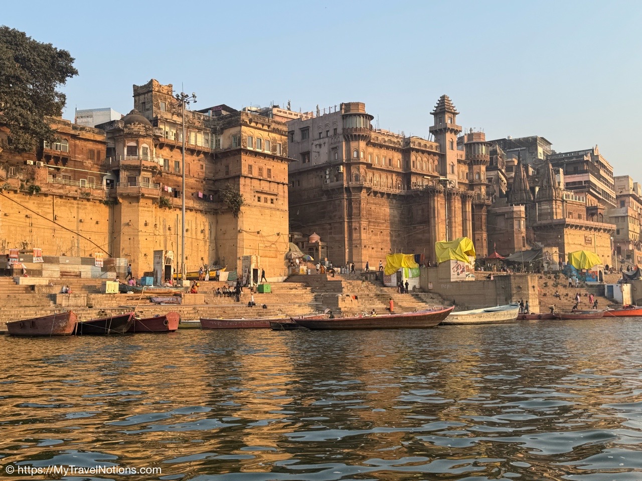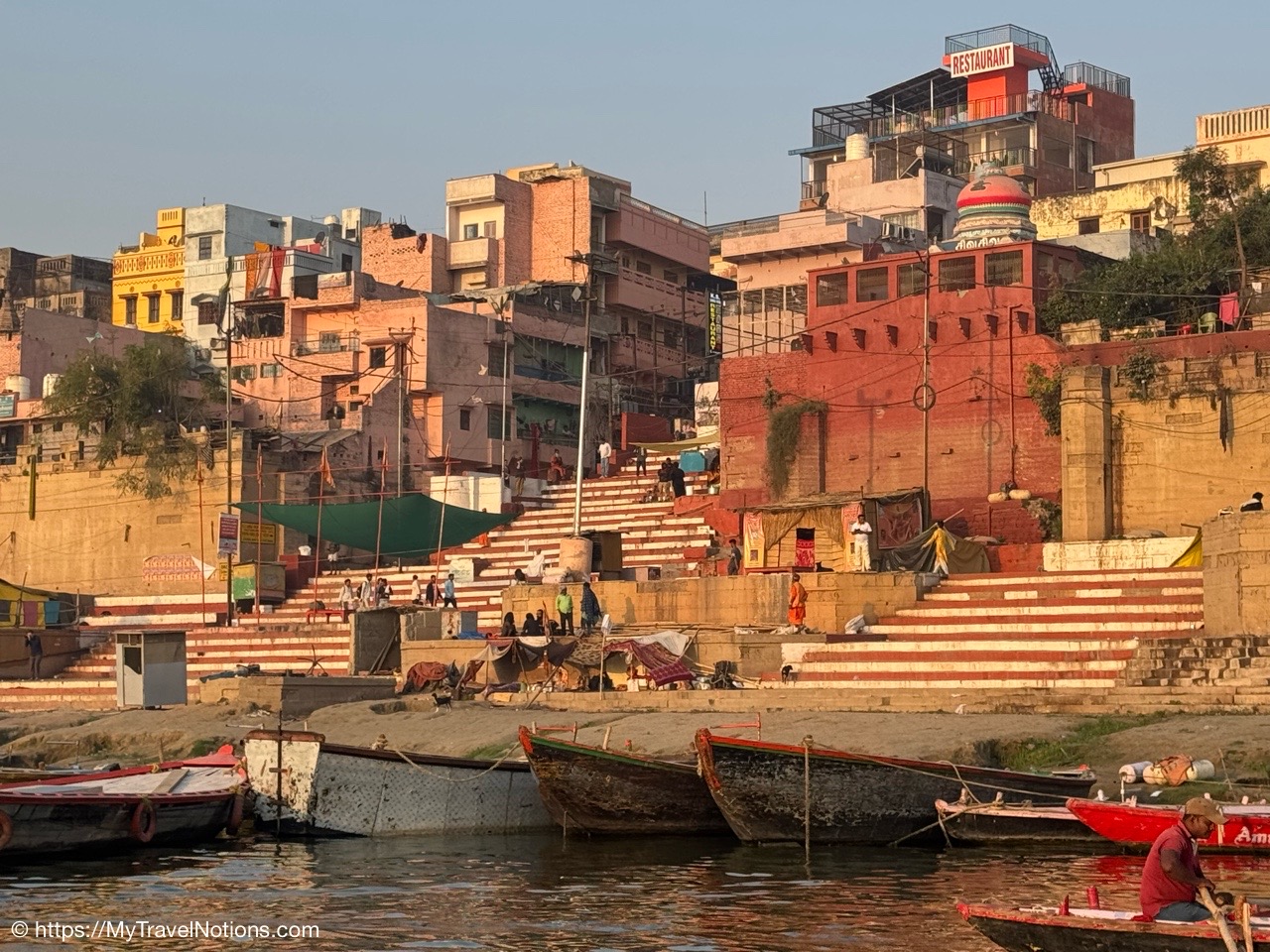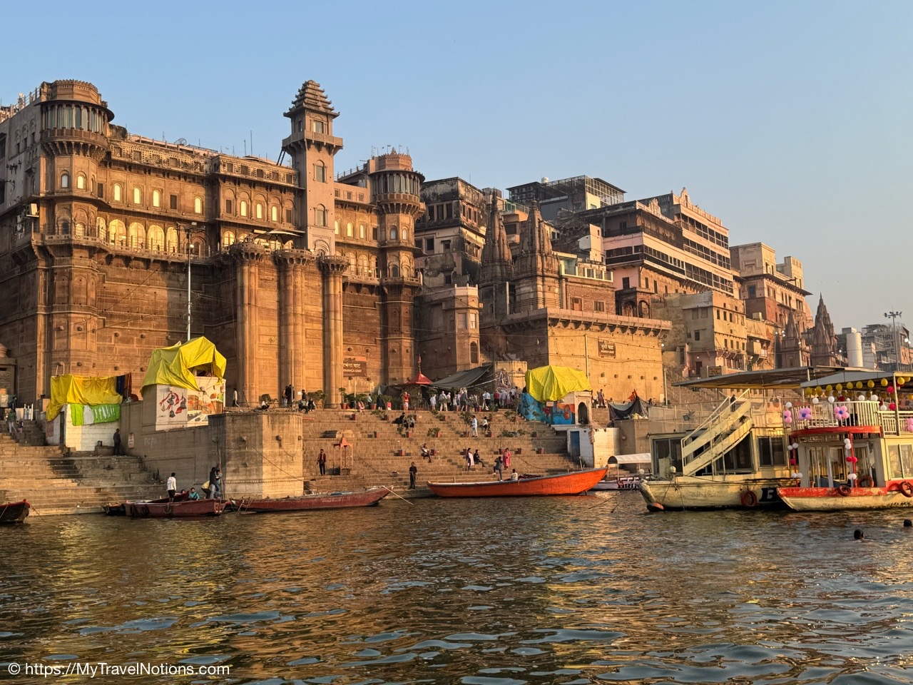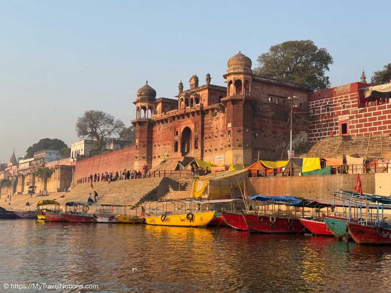 Sunrise boat ride over the Ganges river and the Darbhanga Ghat in Varanasi. (March 11, 2025)