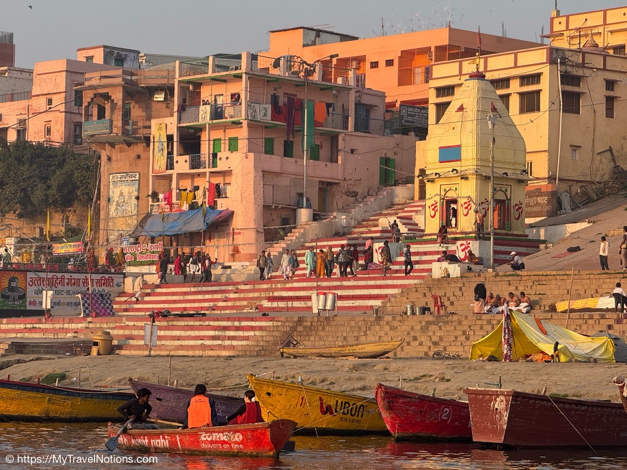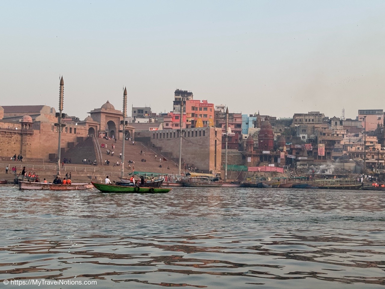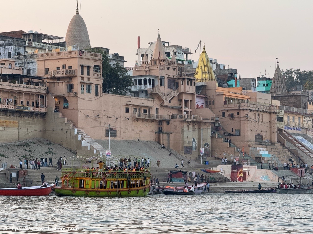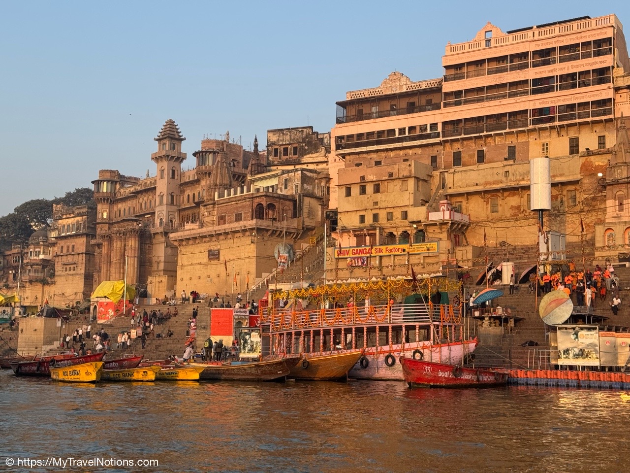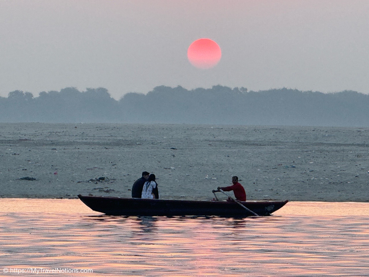 Sunrise boat ride over the Ganges river and the Darbhanga Ghat in Varanasi. (March 11, 2025)