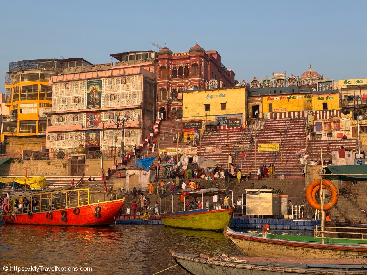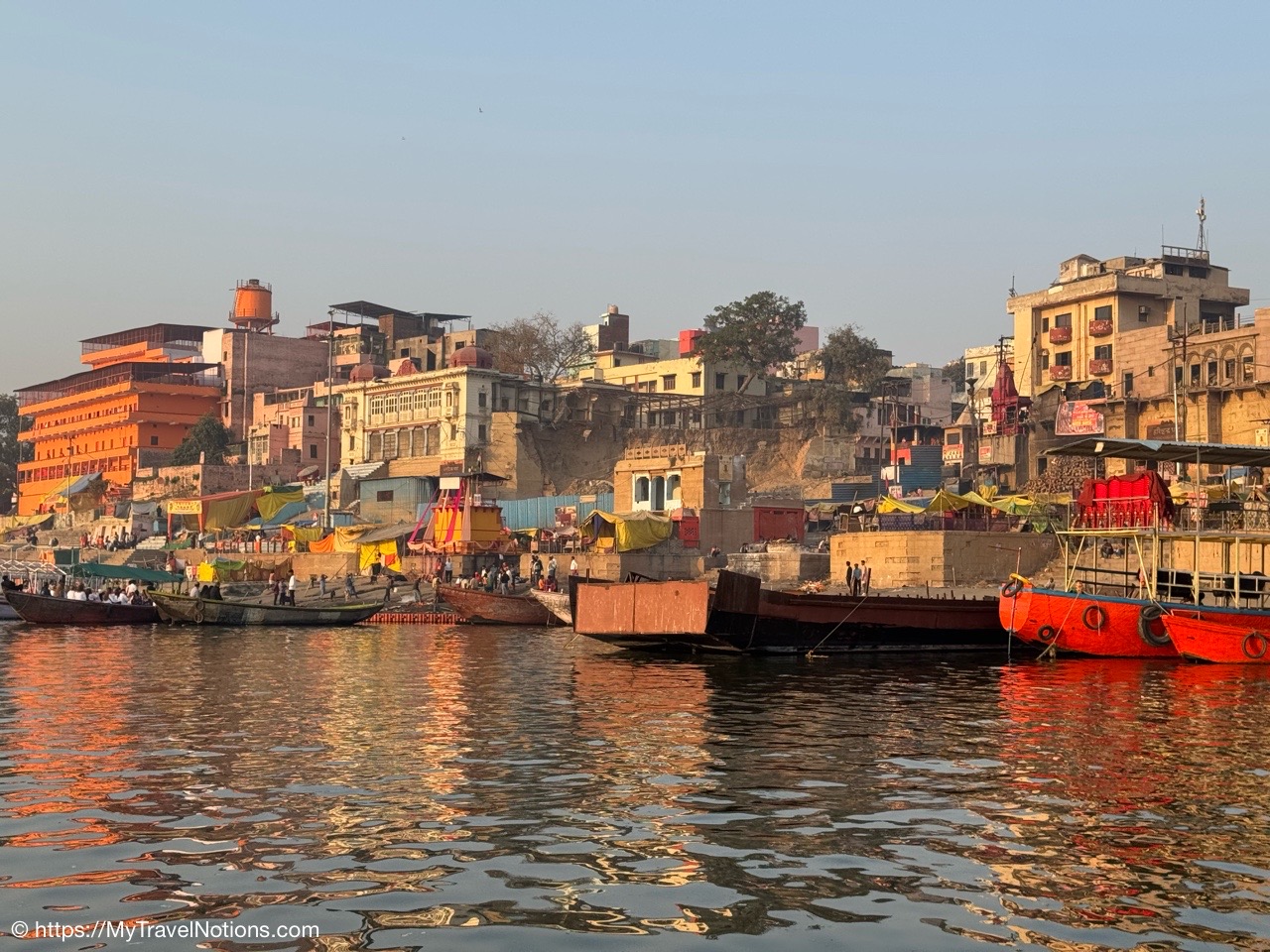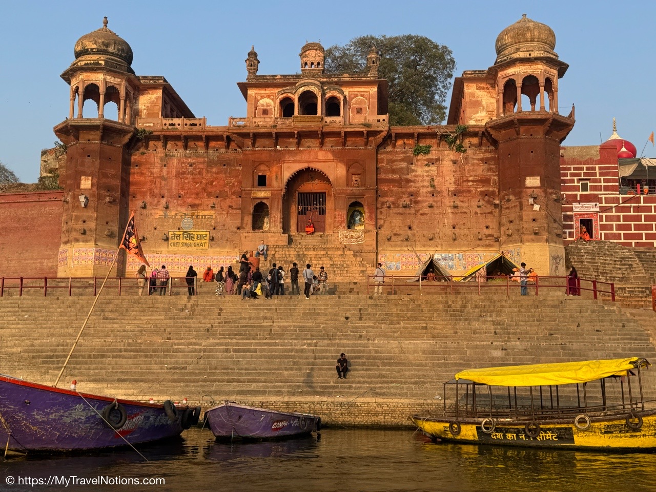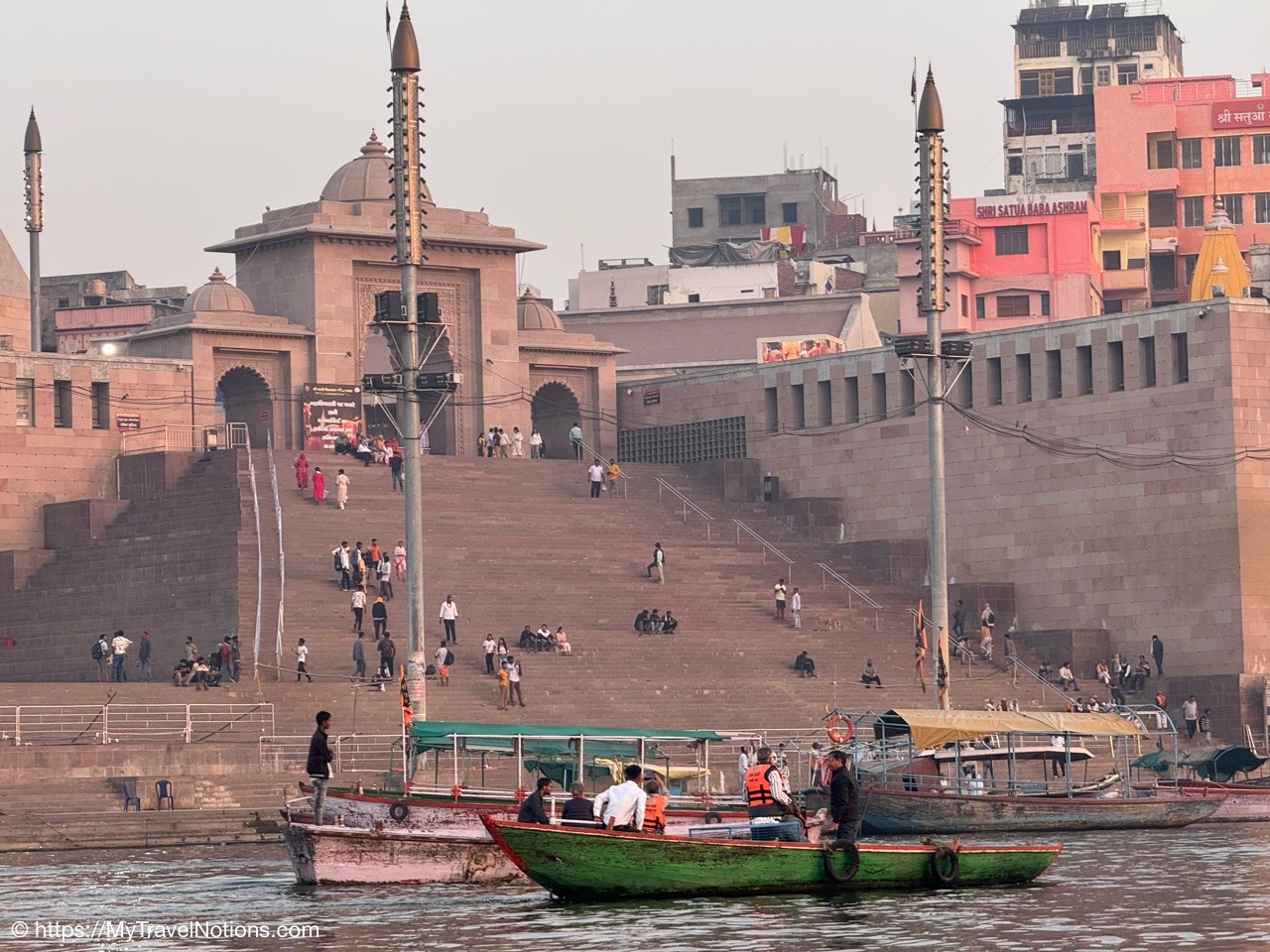 Sunrise boat ride over the Ganges river and the Darbhanga Ghat in Varanasi. (March 11, 2025)