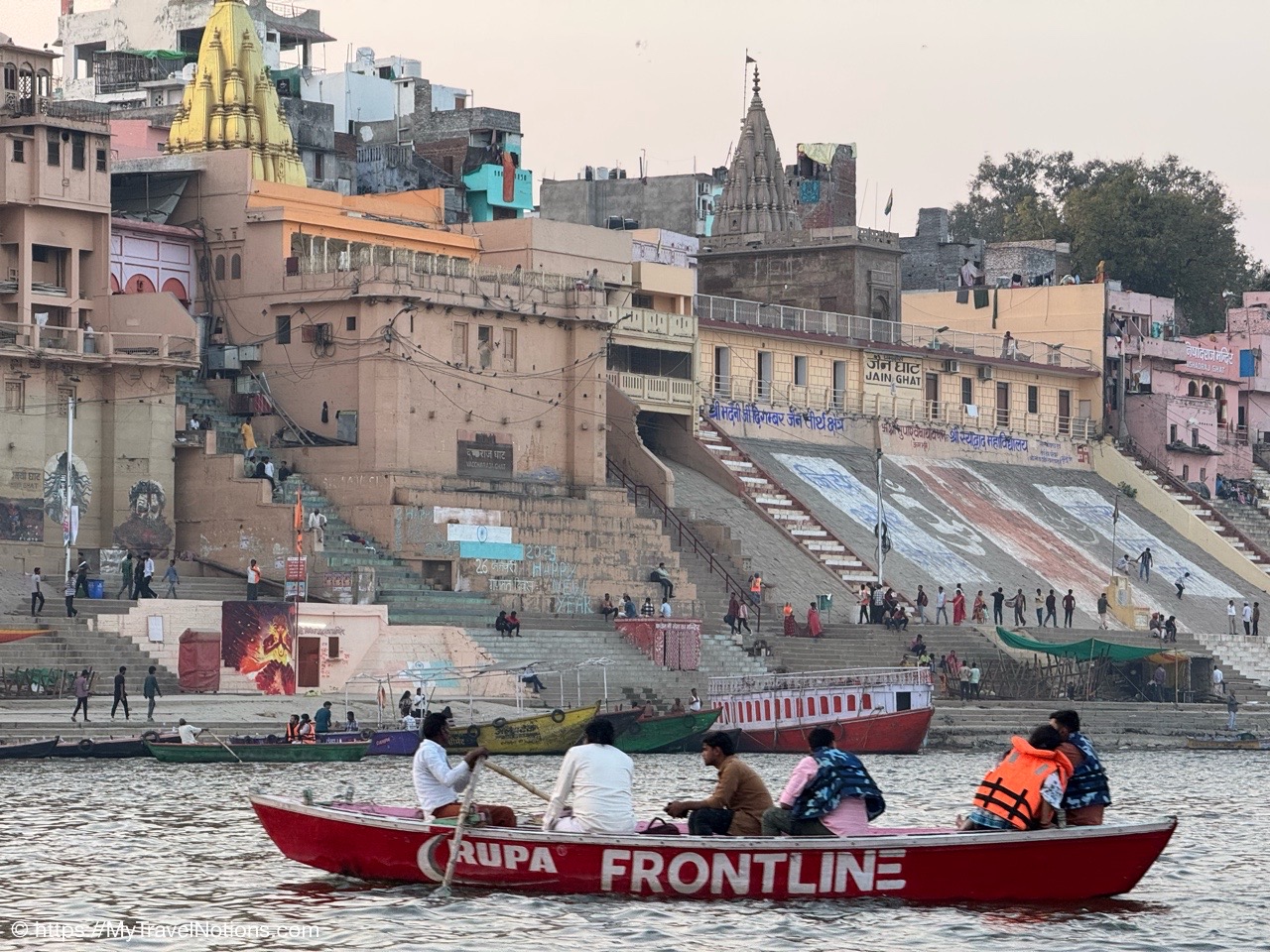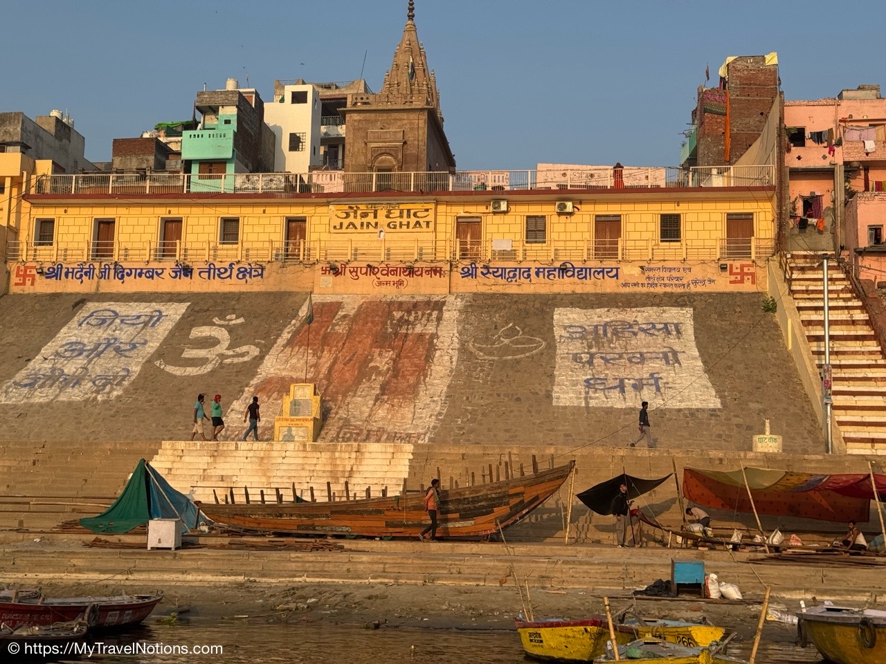 The Jain Ghat/Bachraj Ghat during our sunrise boat ride over the Ganges river in Varanasi. (March 11, 2025)