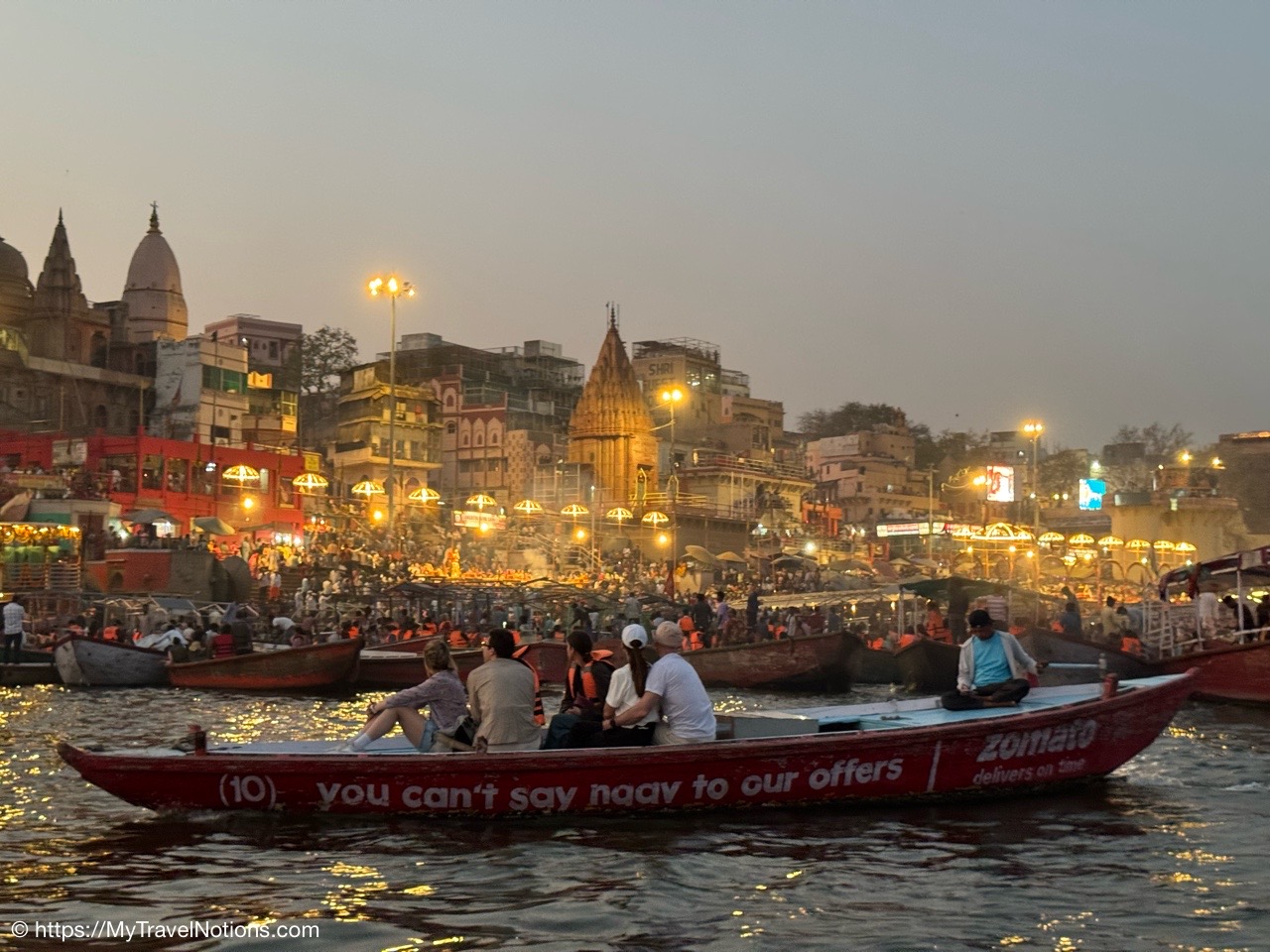 On our evening boat ride along the Ganges river in Varanasi. (March 10, 2025)