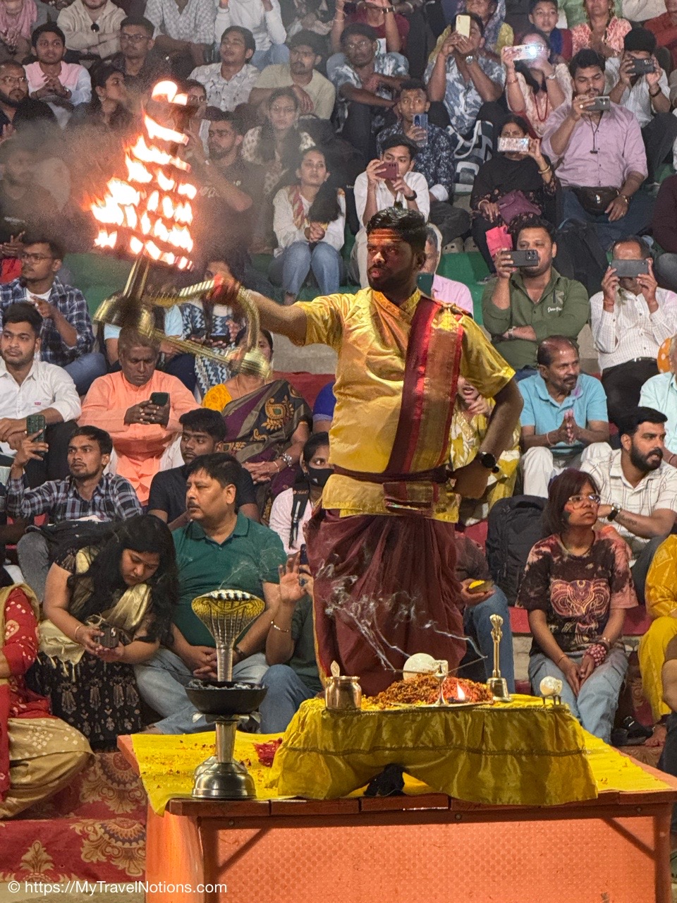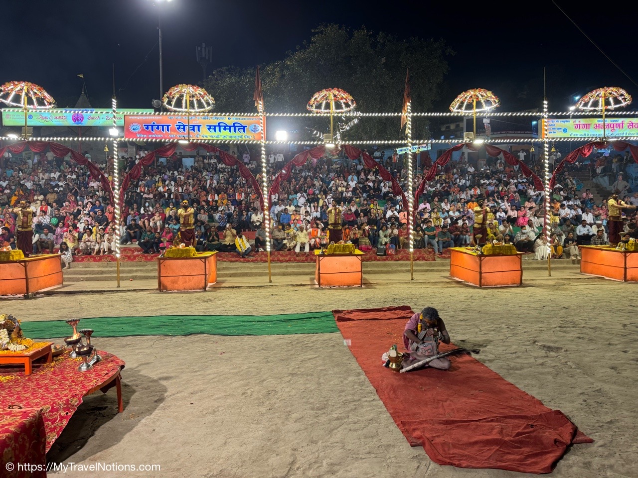 Back at the Dasaswamedh Ghat in Varanasi where the nightly ceremony of the Ganga Aarti was underway. (March 10, 2025)