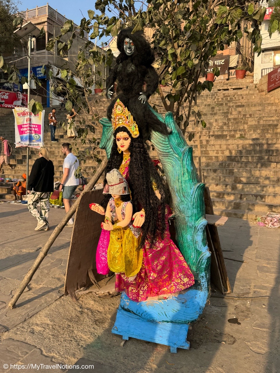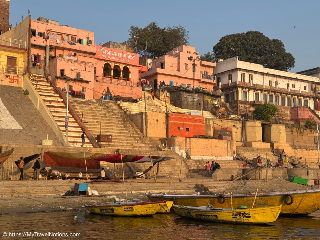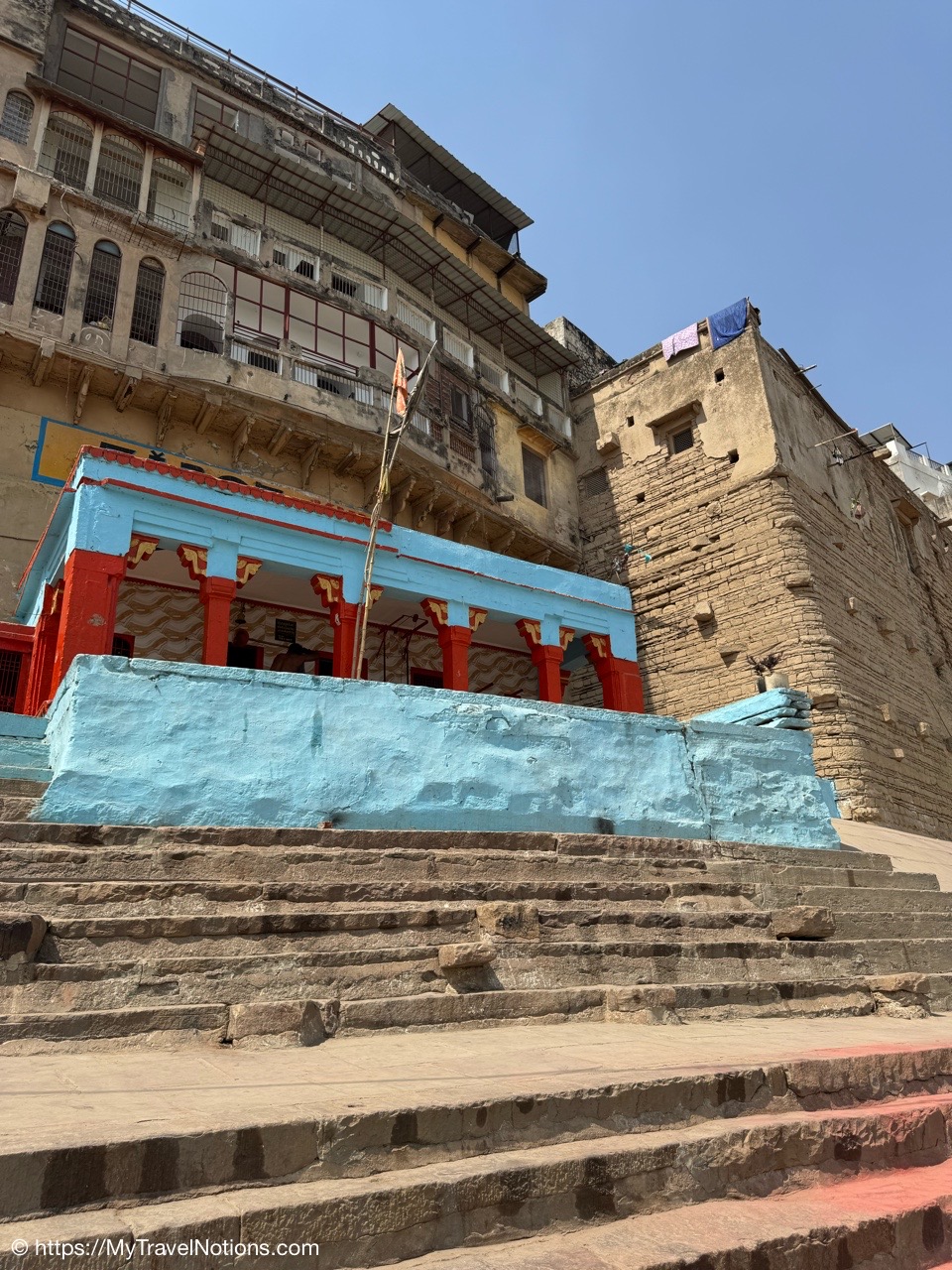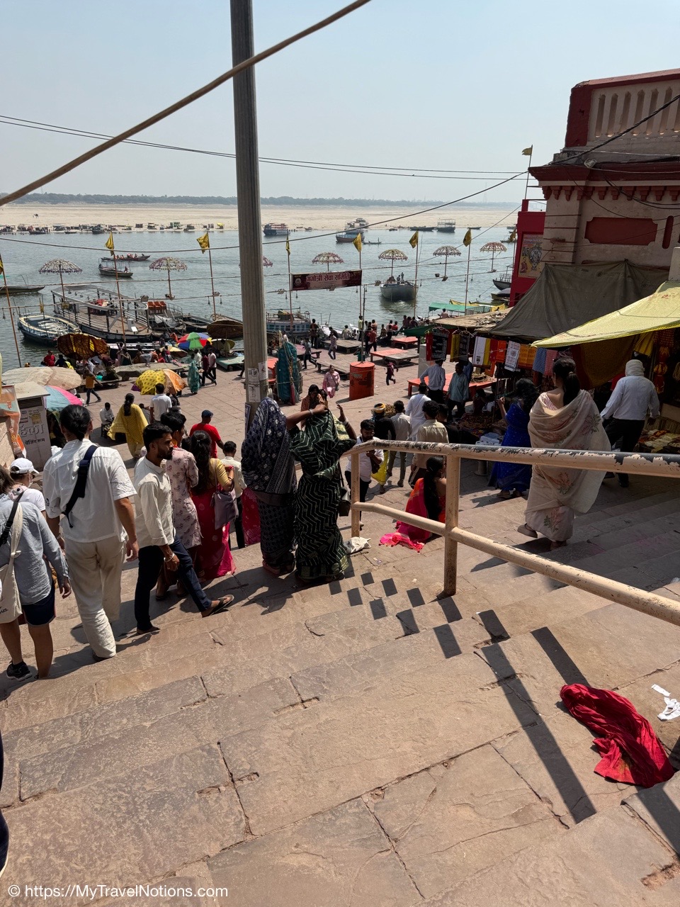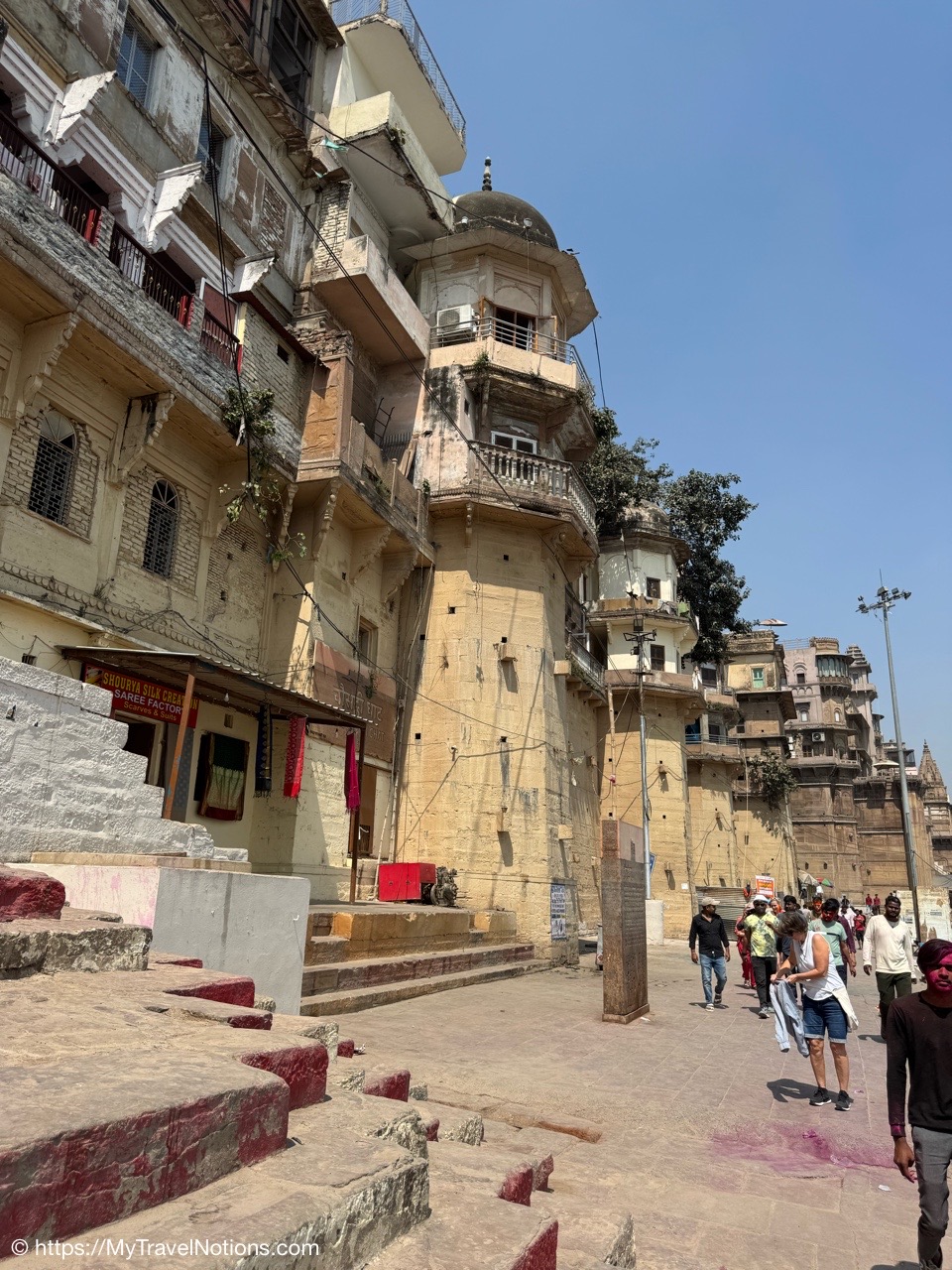 Walking along the terraces of the ghats along the Ganges river in Varanasi. (March 11, 2025)
