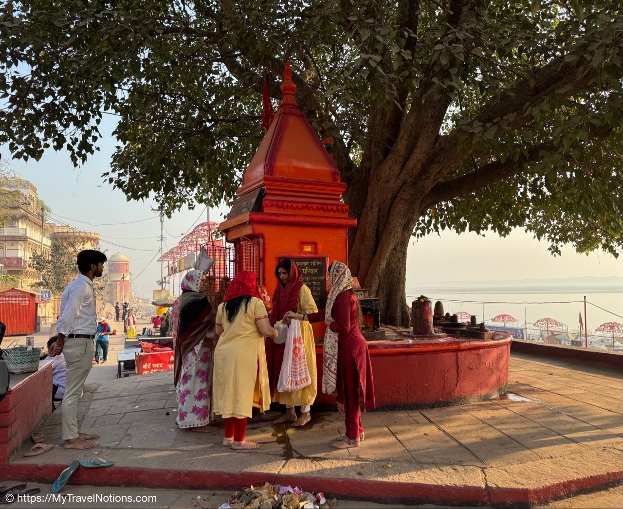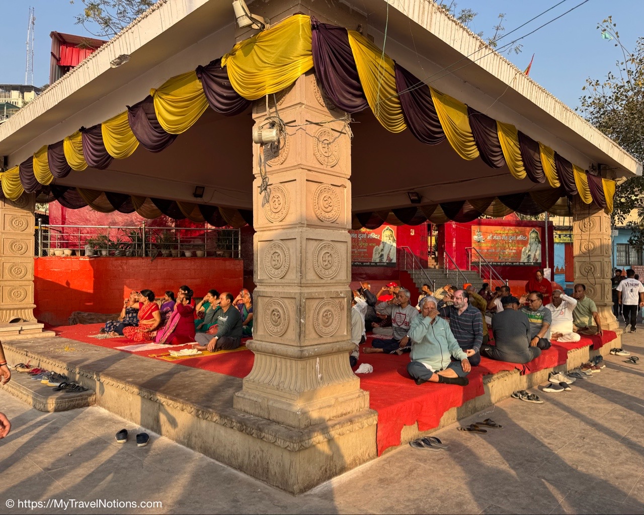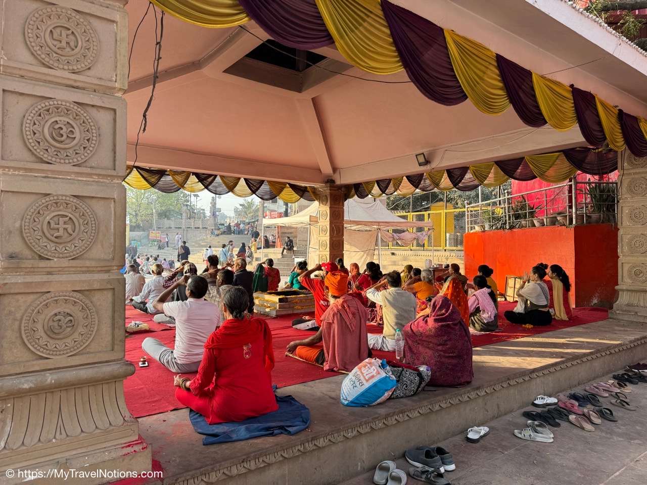 The morning prayers on the terrace after our sunrise boat ride over the Ganges river in Varanasi. (March 11, 2025)
