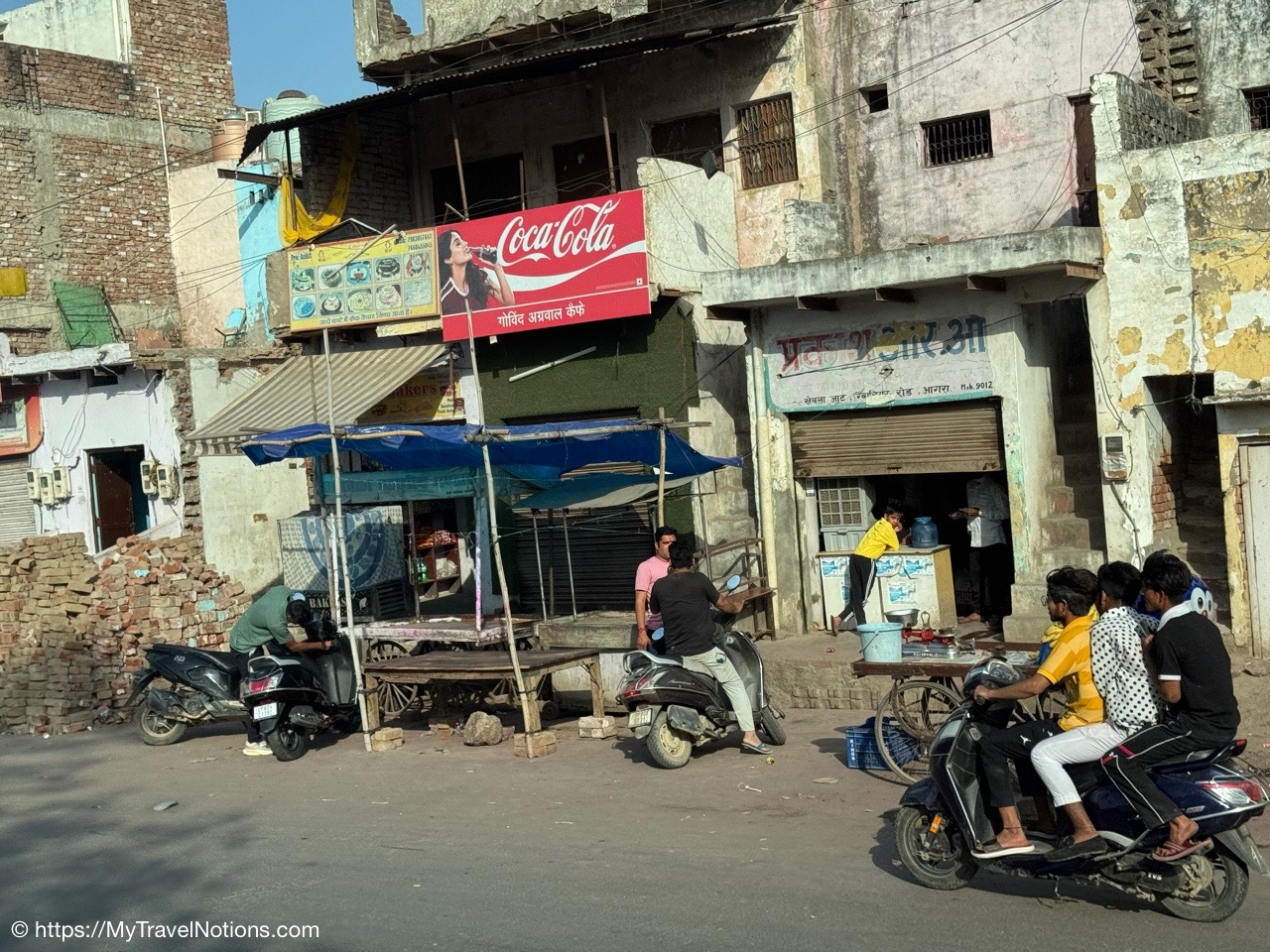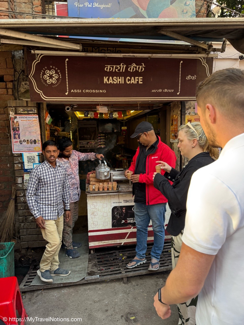 Stopping at Kashi Cafe for a Masala tea in Varanasi. That’s our tour leader, Kush, purchasing the masala tea that’s served in copper cups. (March 11, 2025)